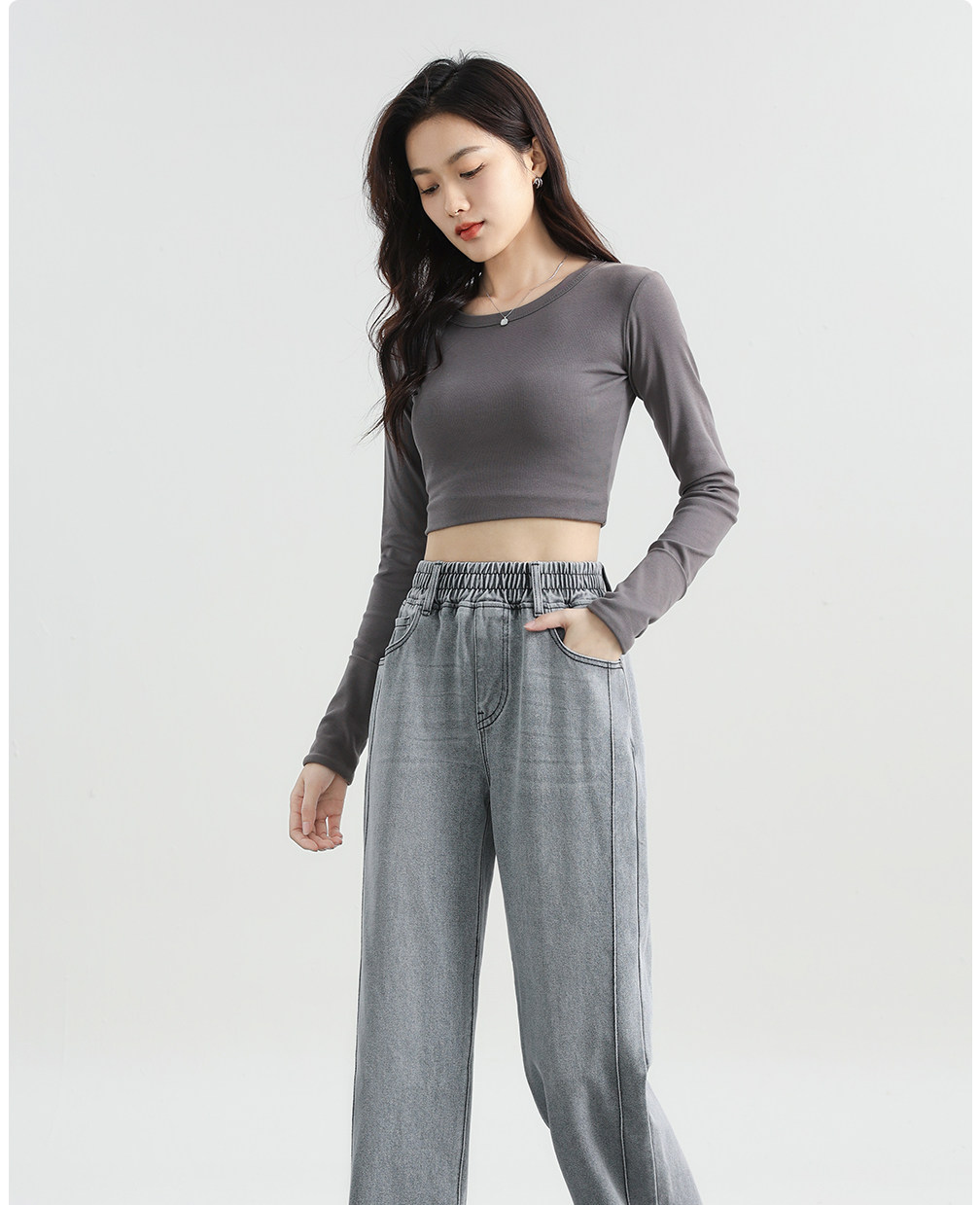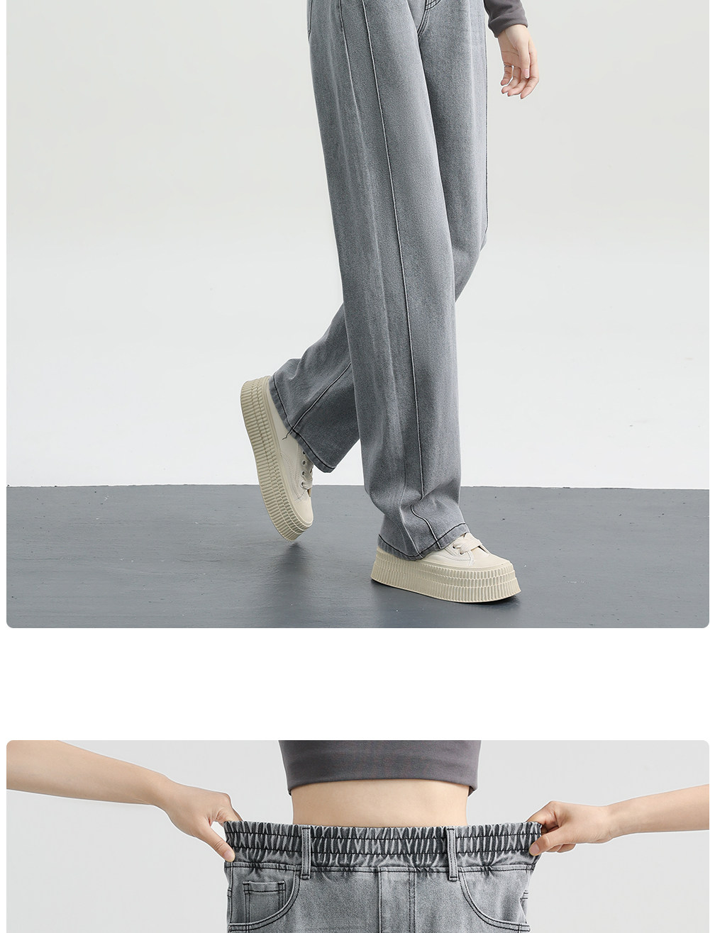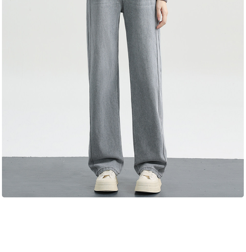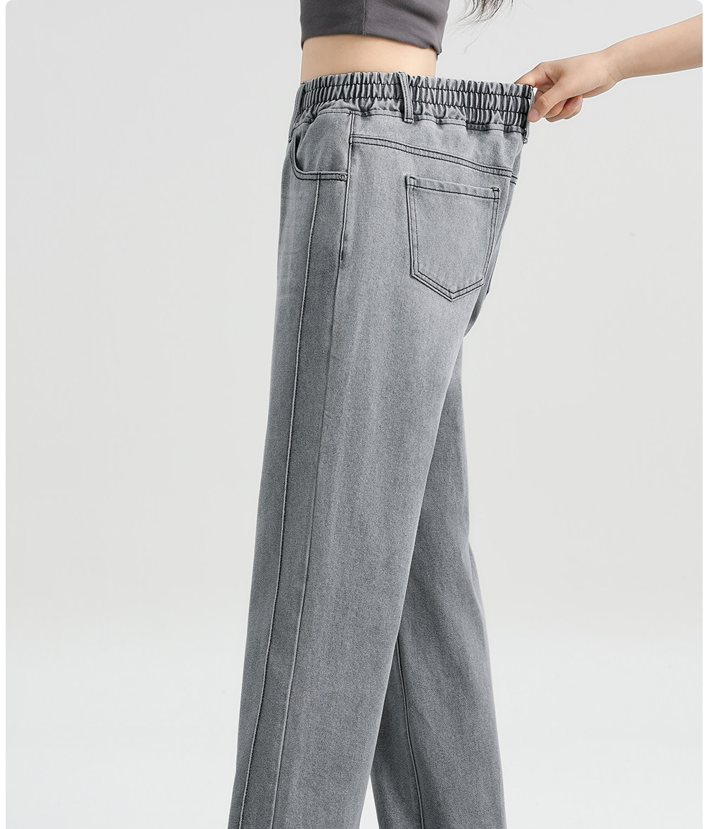 Elastic Waist Narrow Wide-Leg Jeans for Women, Plus Size, Autumn and Winter Style, Loose Straight-Leg, Elastic High-Waisted Fleece-Lined Pants for Plus-Size Women