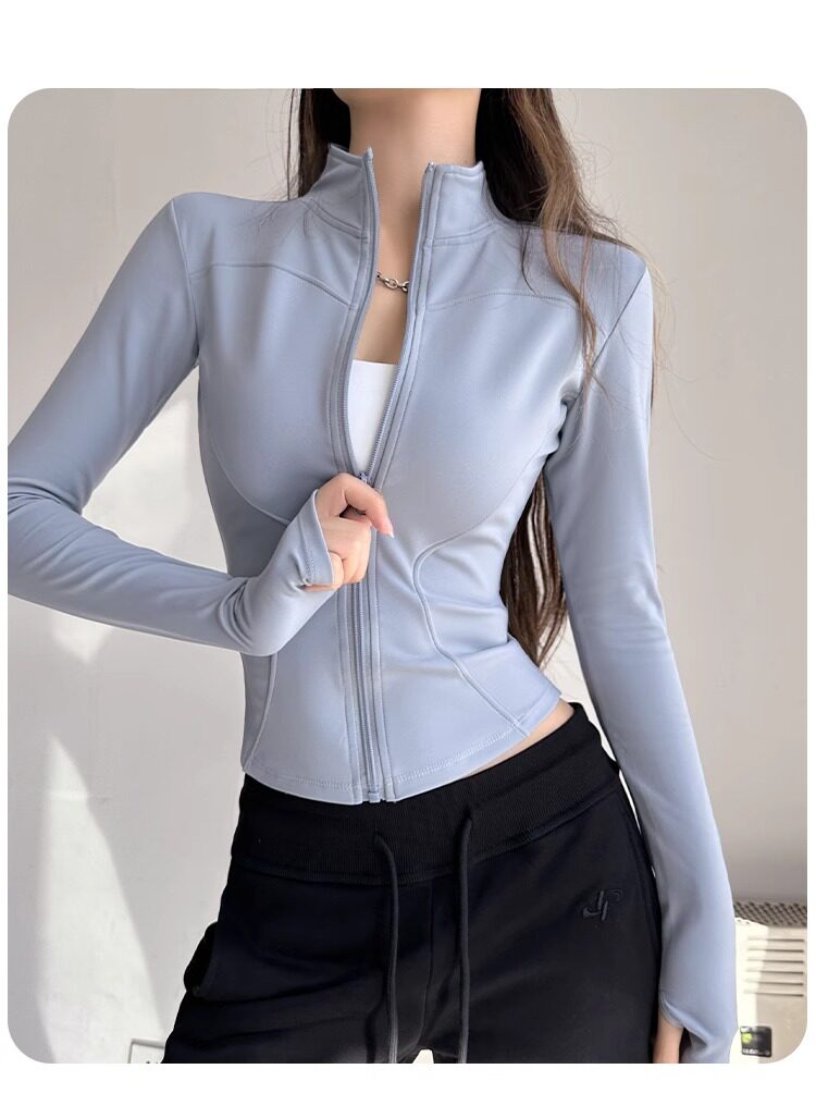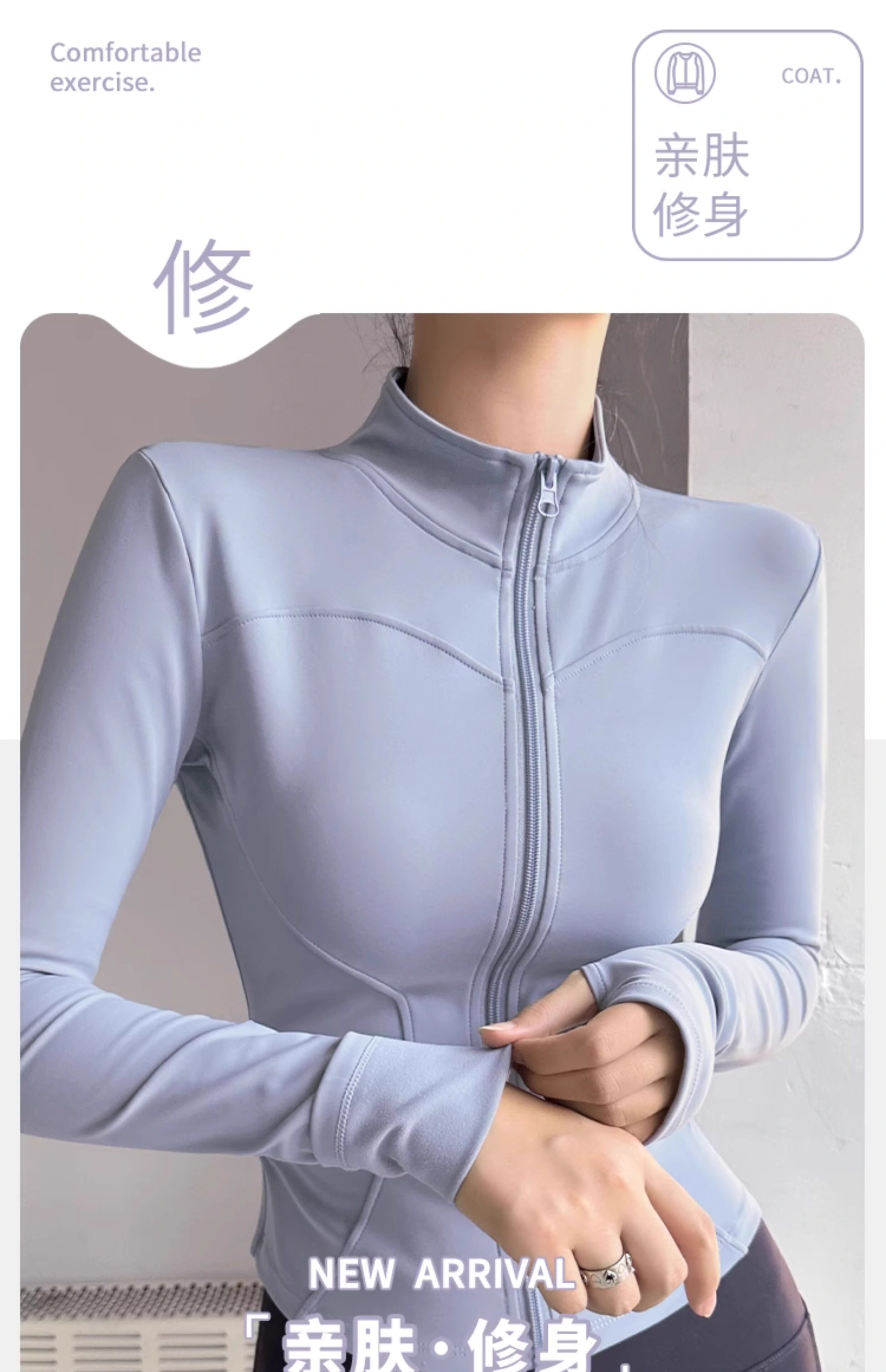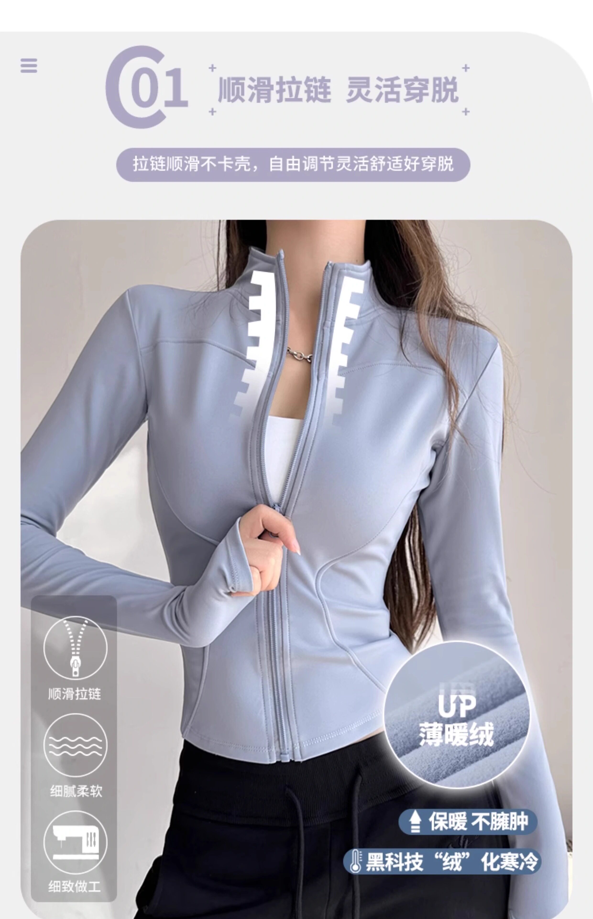 Fleece-Lined Yoga Jacket for Women, Sports Top with Zipper, Slim Fit, Stand Collar, Windproof Running Jacket, Winter Fitness Wear