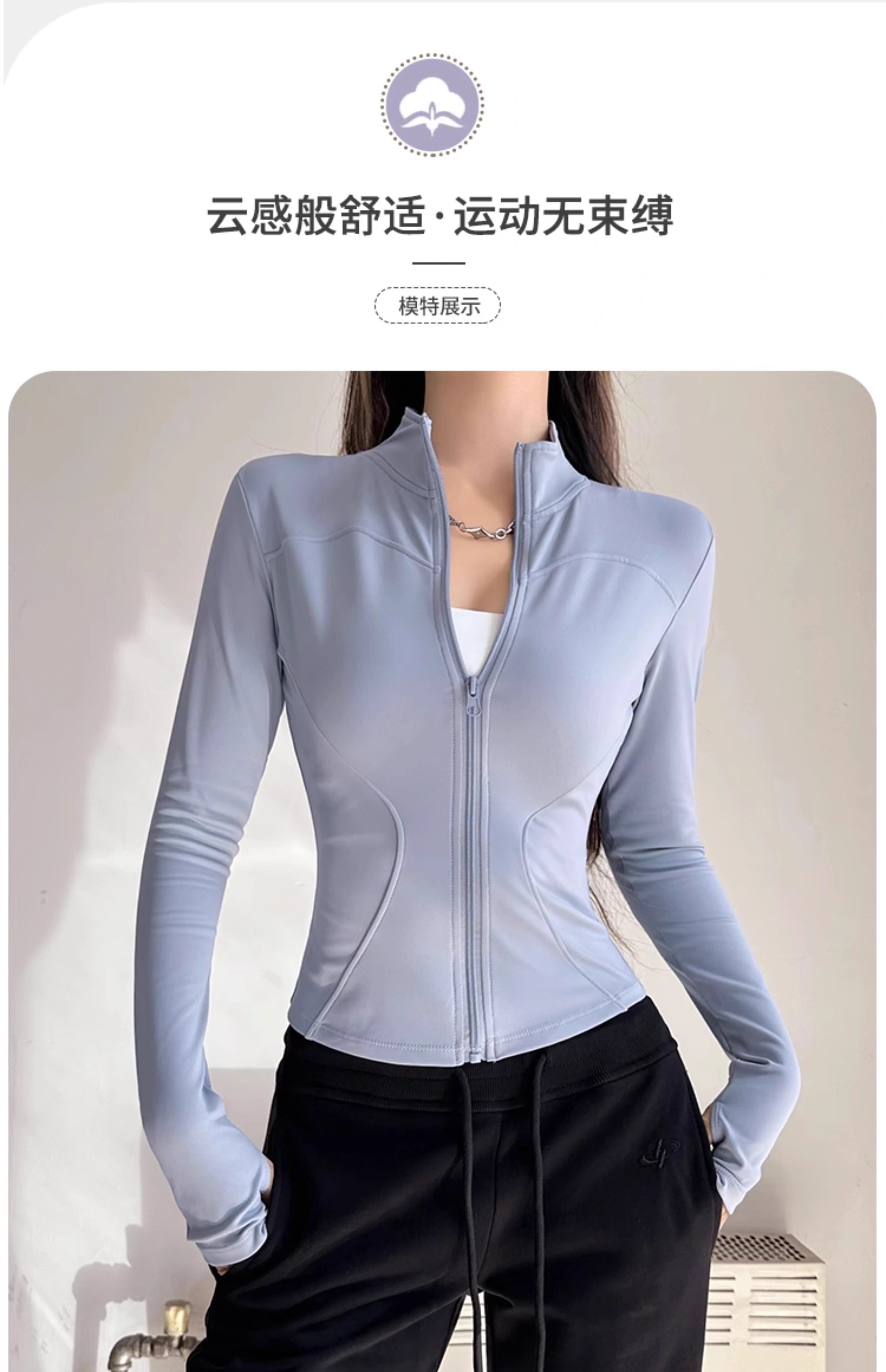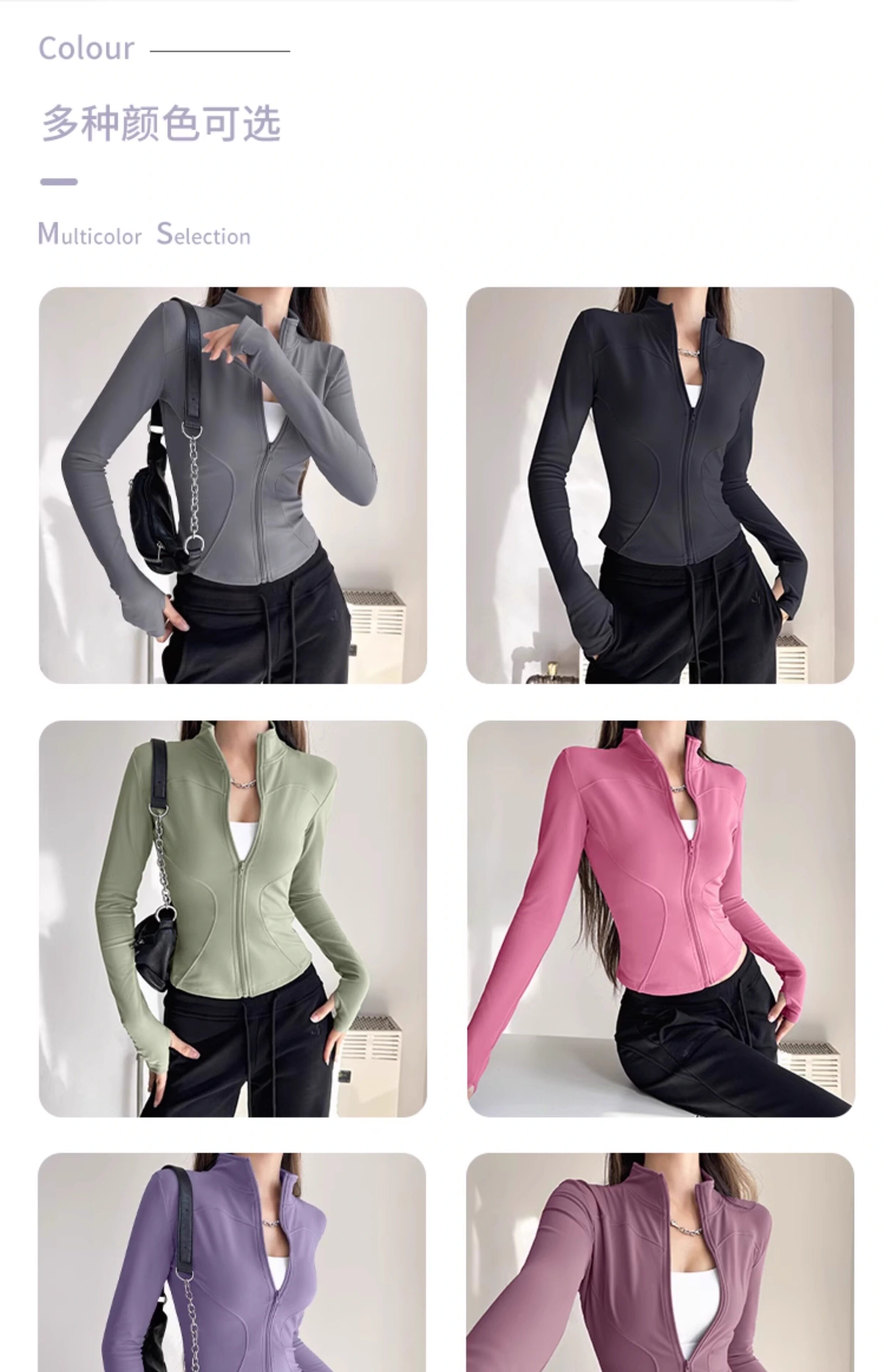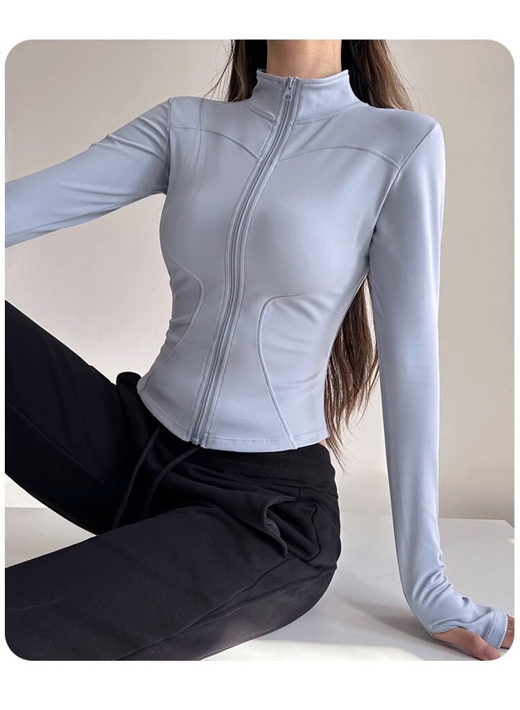 Fleece-Lined Yoga Jacket for Women, Sports Top with Zipper, Slim Fit, Stand Collar, Windproof Running Jacket, Winter Fitness Wear