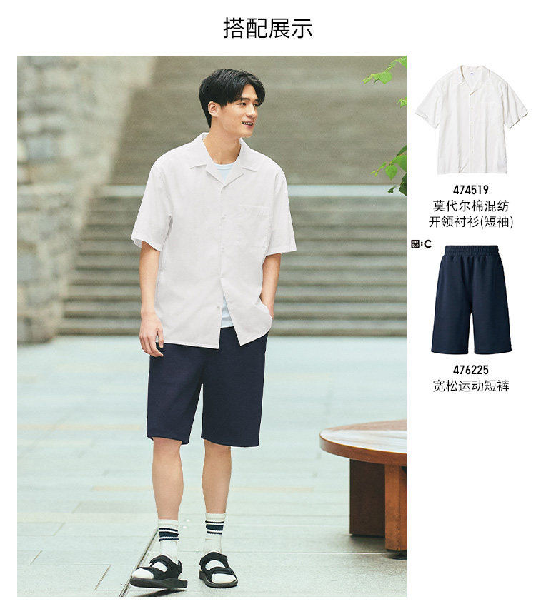 Uniqlo Men's and Women's Modal Cotton Blend Open-Collar Shirt/Short-Sleeve Cuban Collar Vacation Style 474519