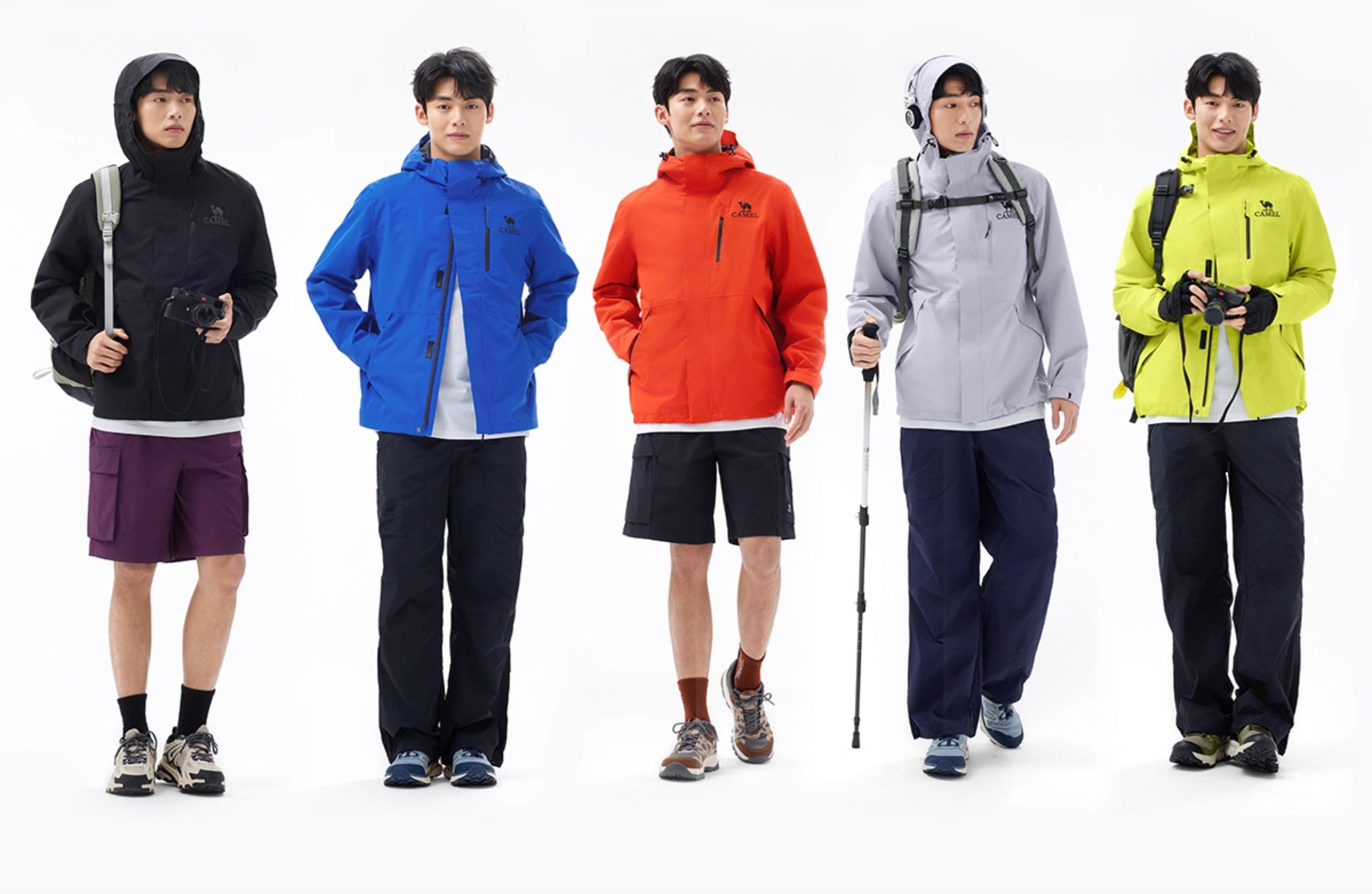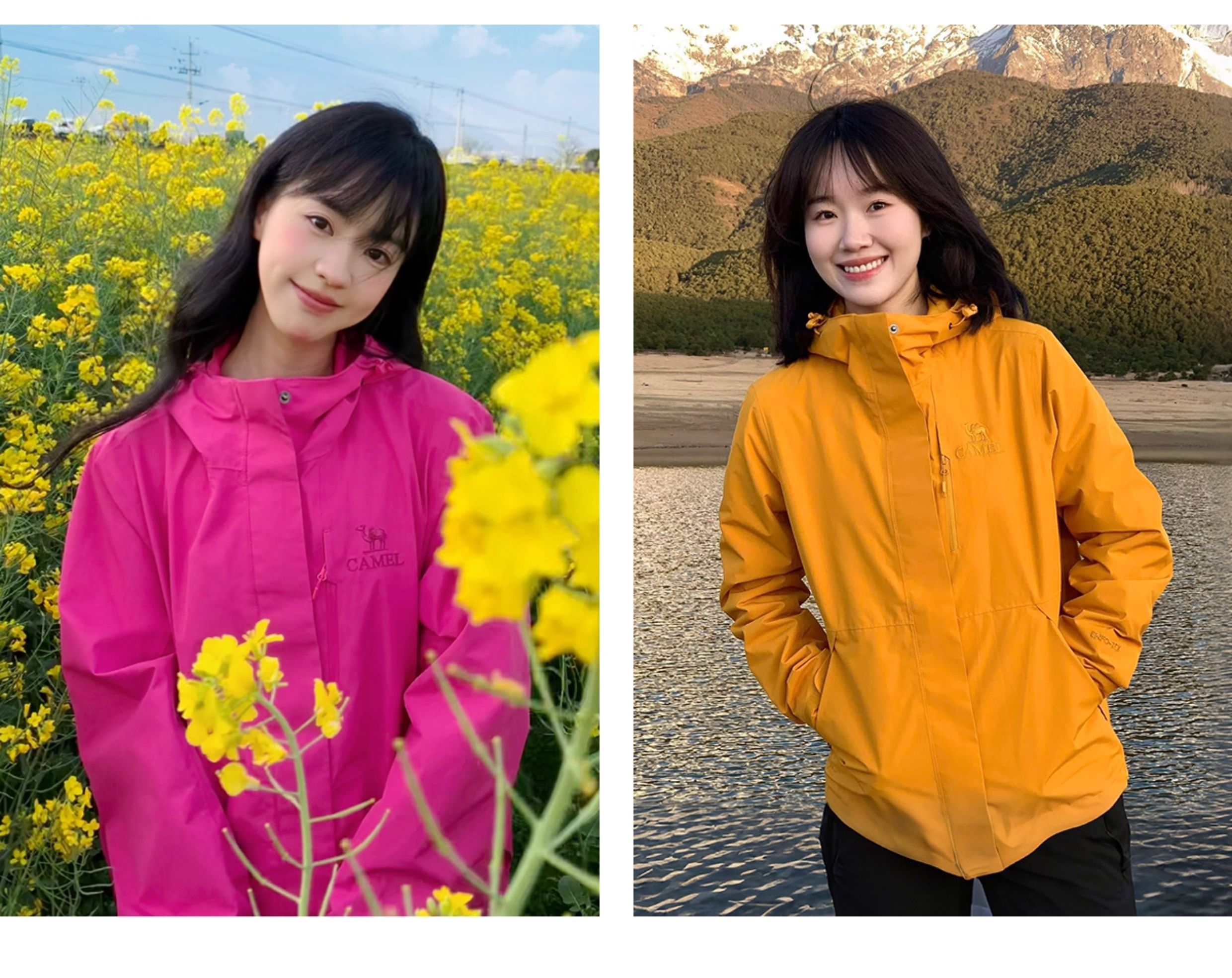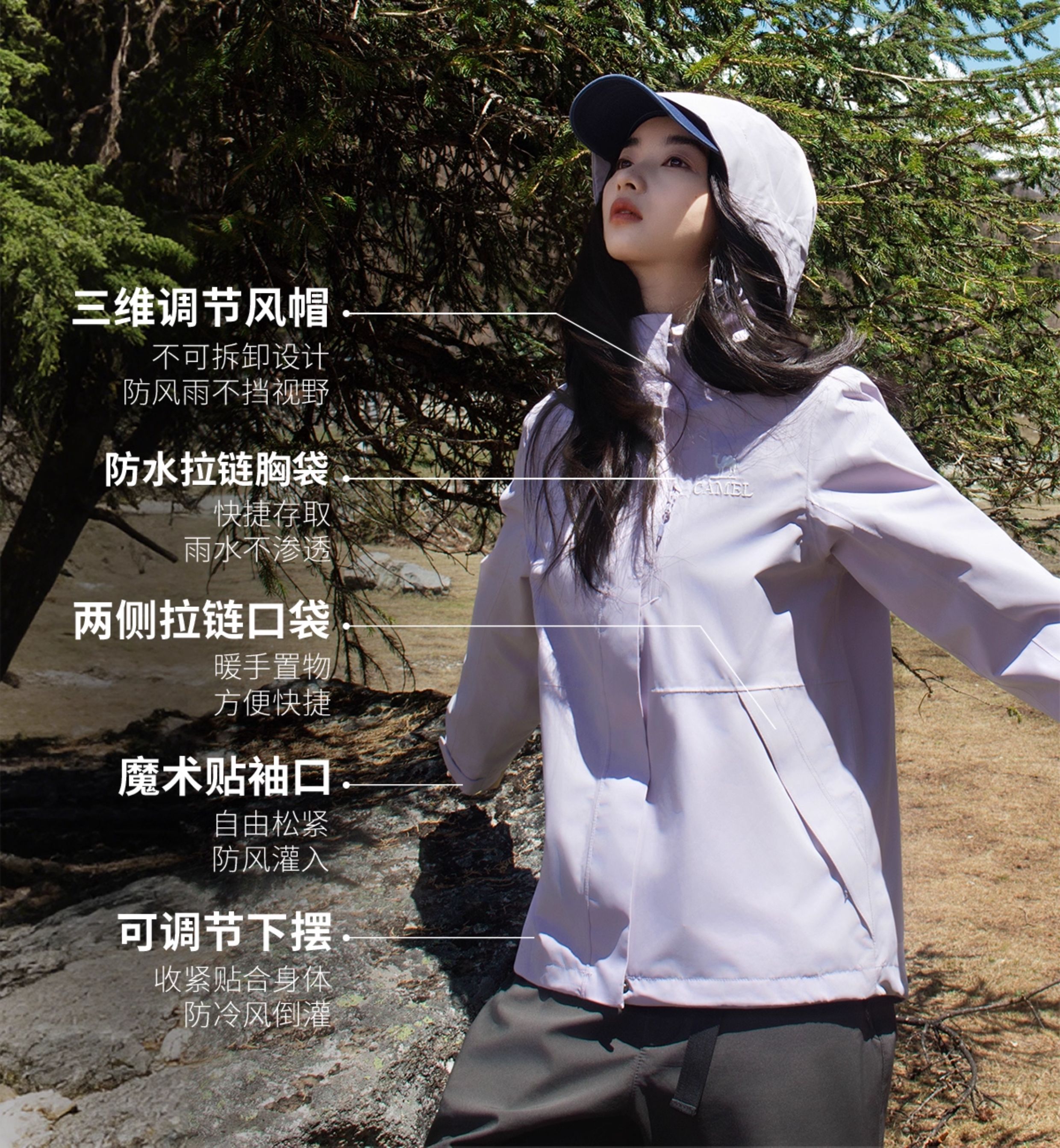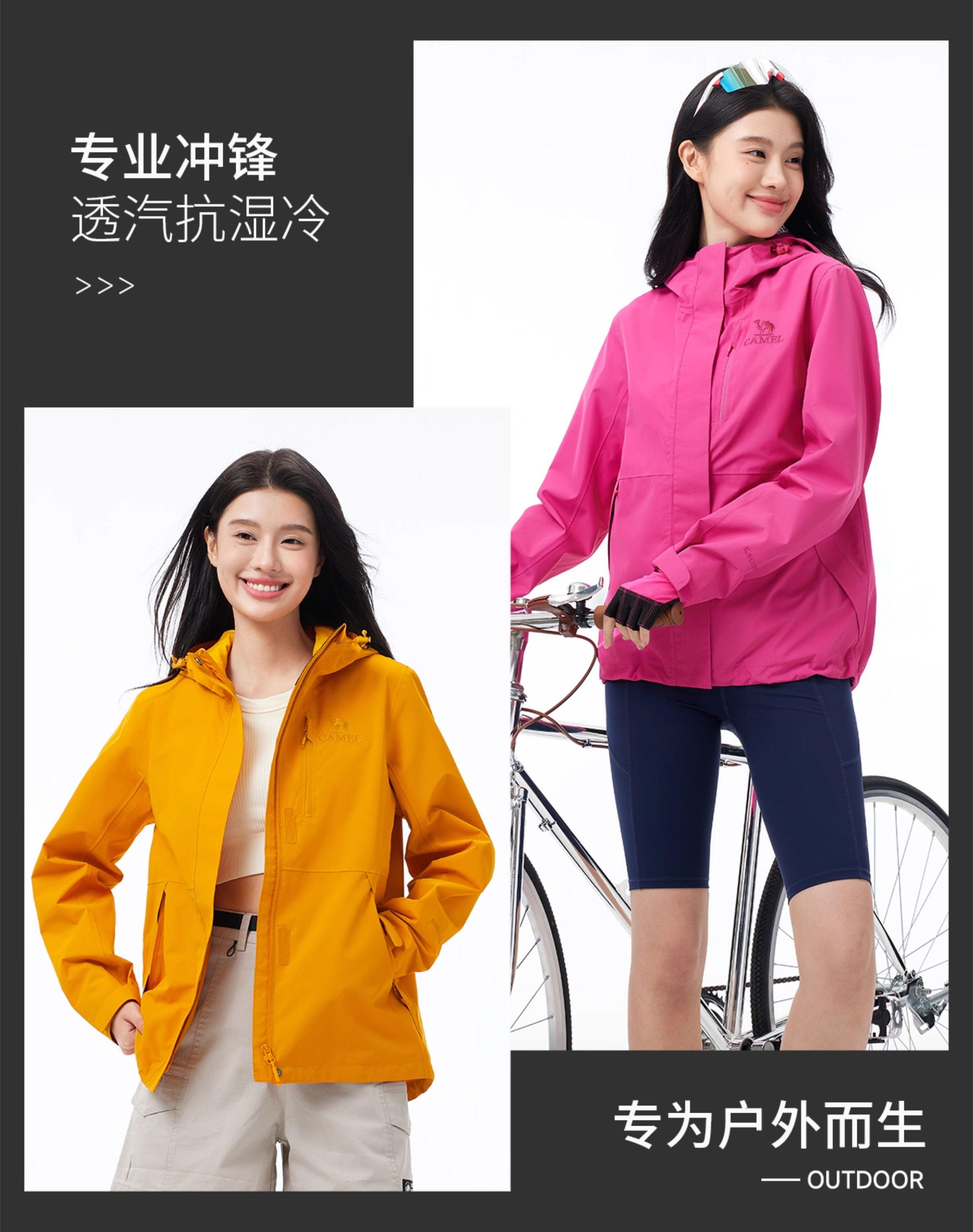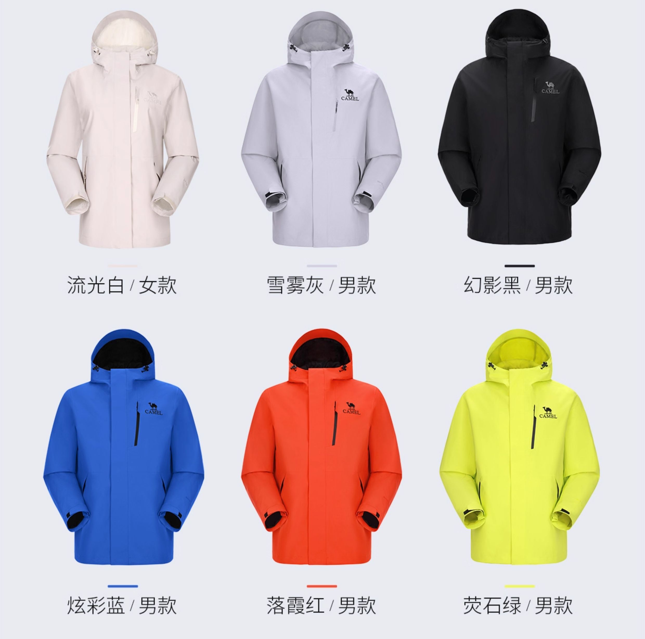 [Same Style as Wang Junkai] Camel Outdoor Hardshell Klein Blue Jacket for Women 2025 Single Layer Waterproof Jacket for Men