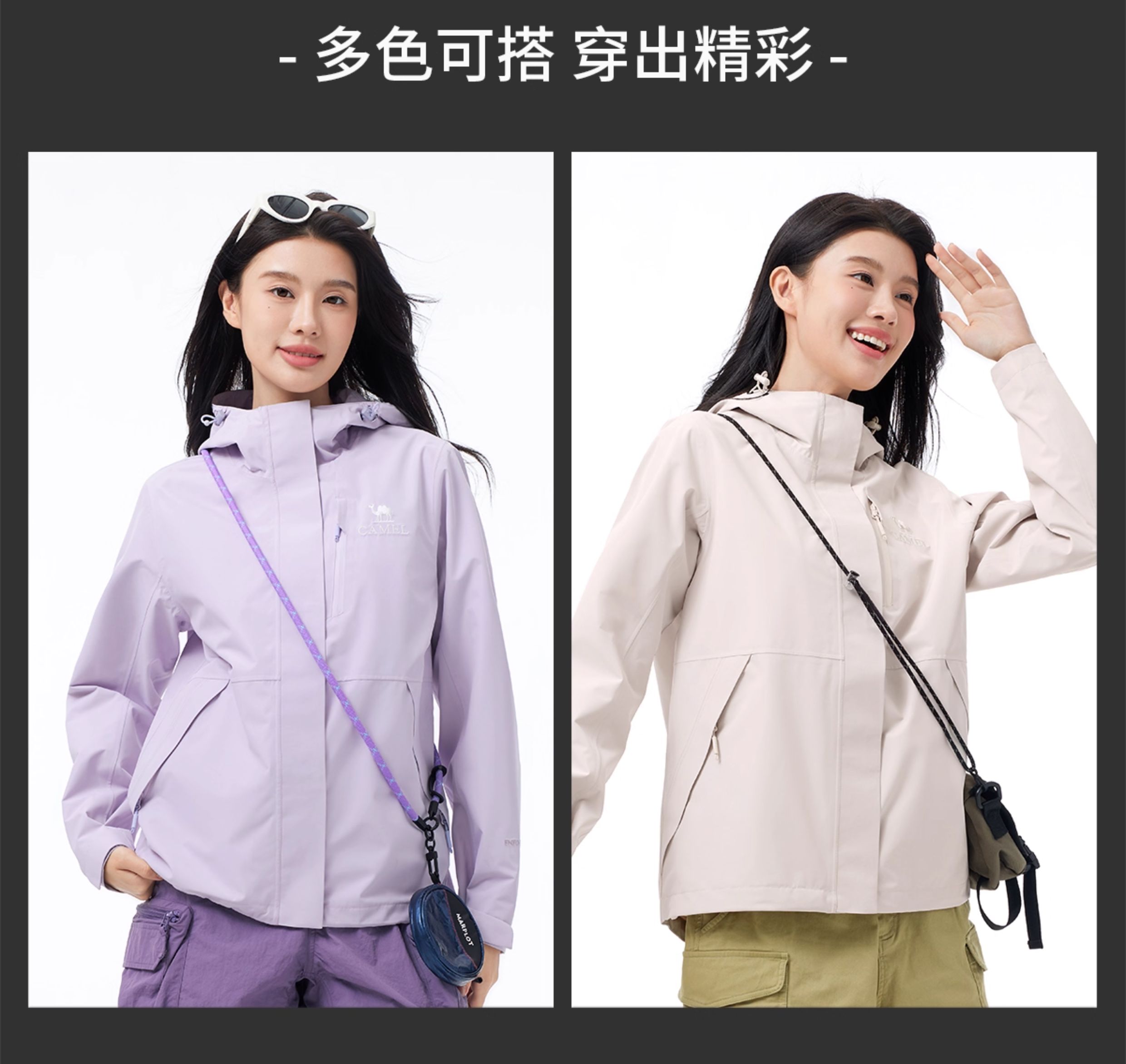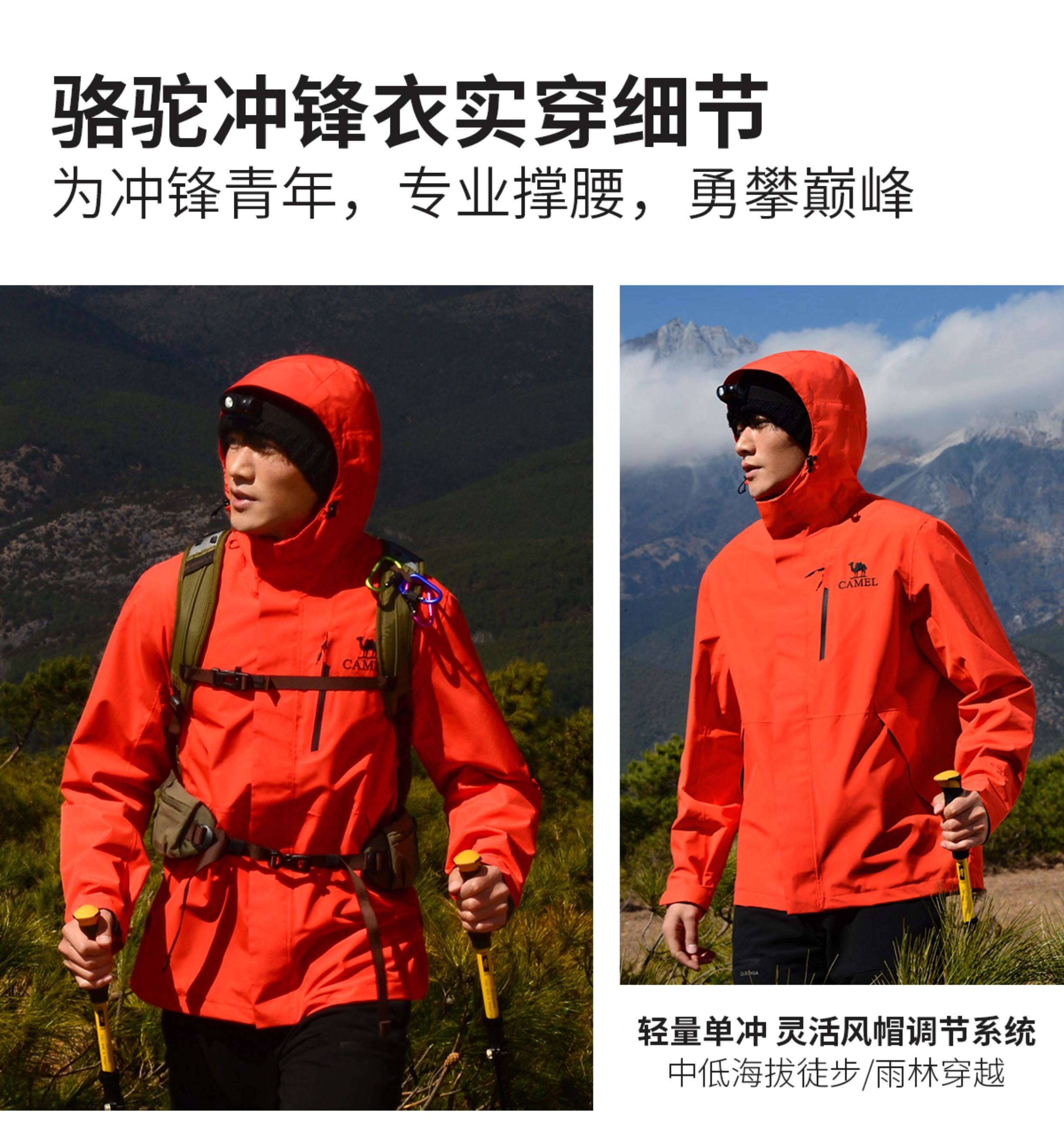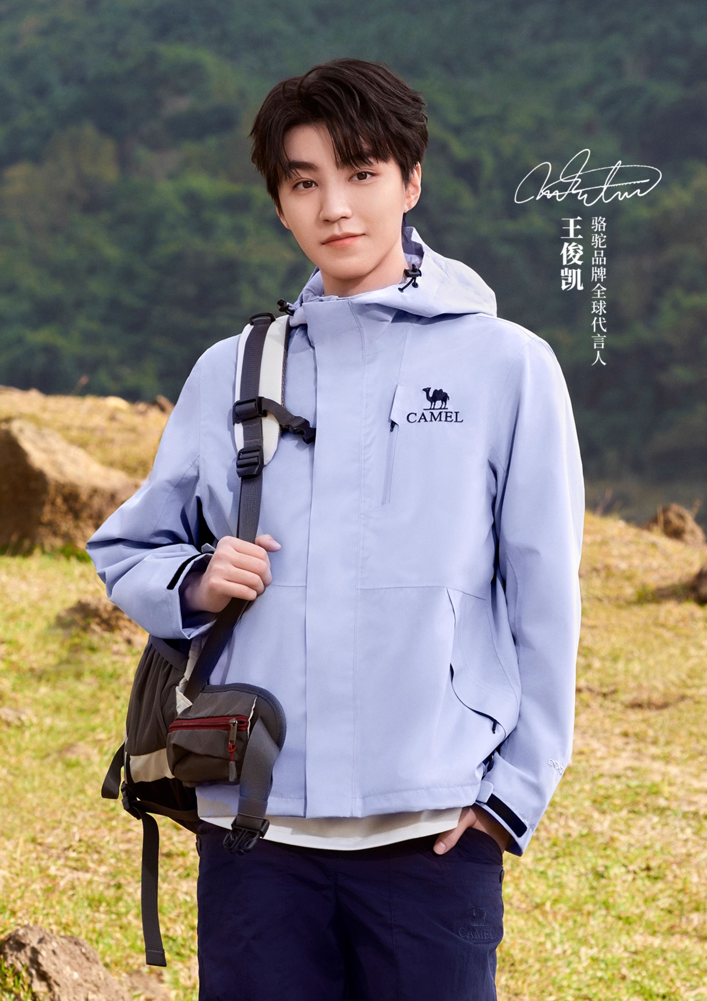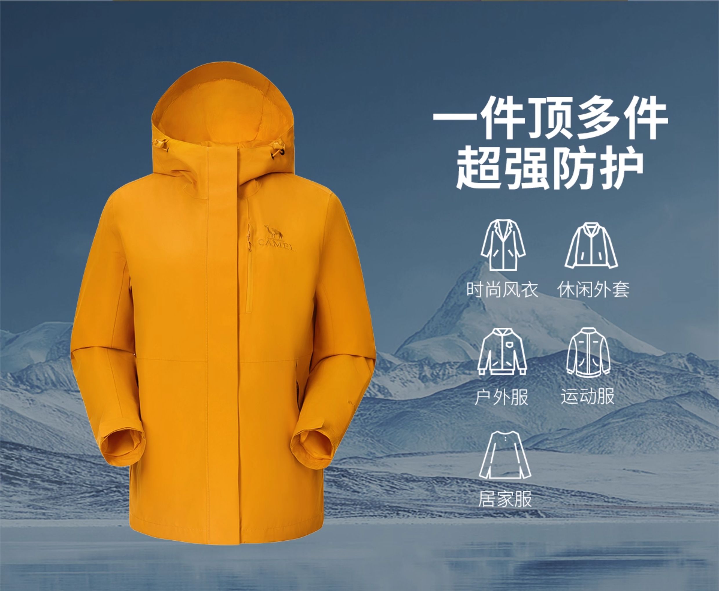 [Same Style as Wang Junkai] Camel Outdoor Hardshell Klein Blue Jacket for Women 2025 Single Layer Waterproof Jacket for Men