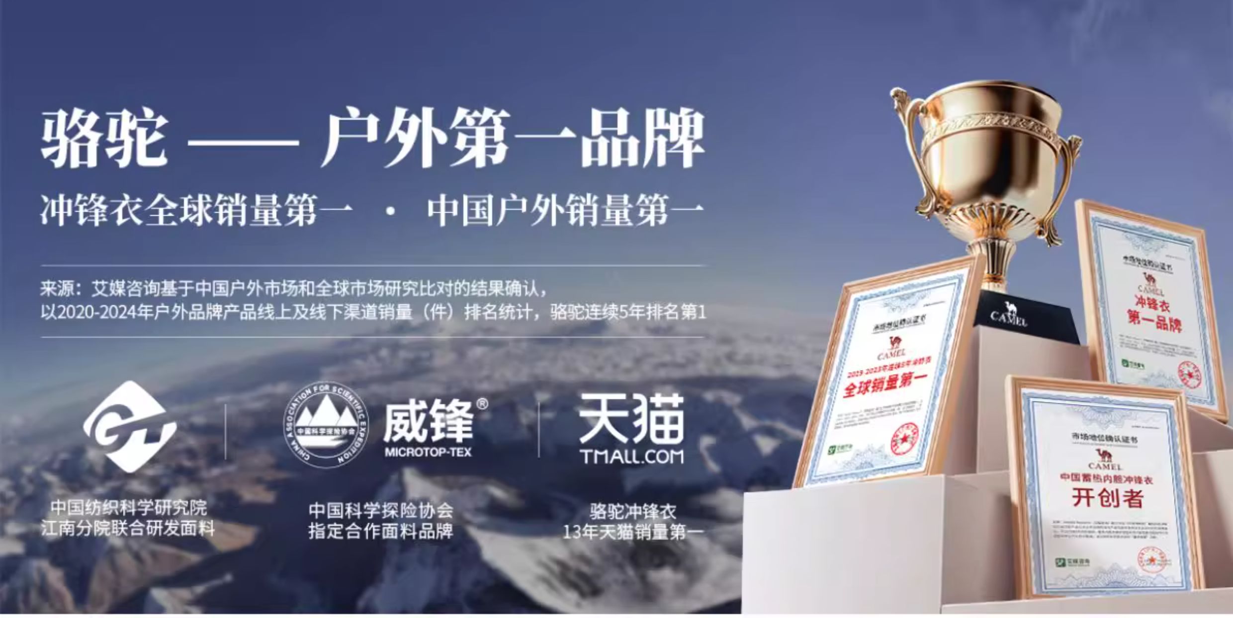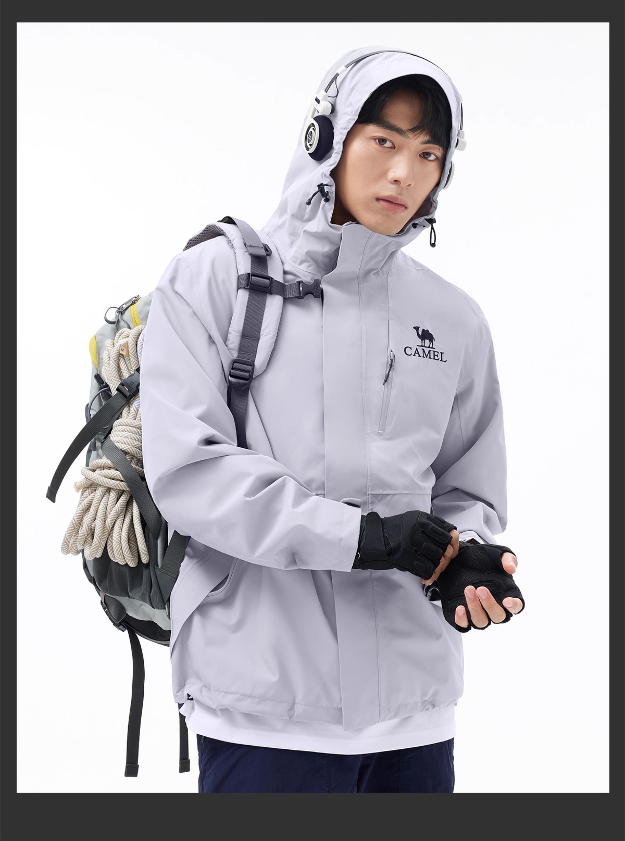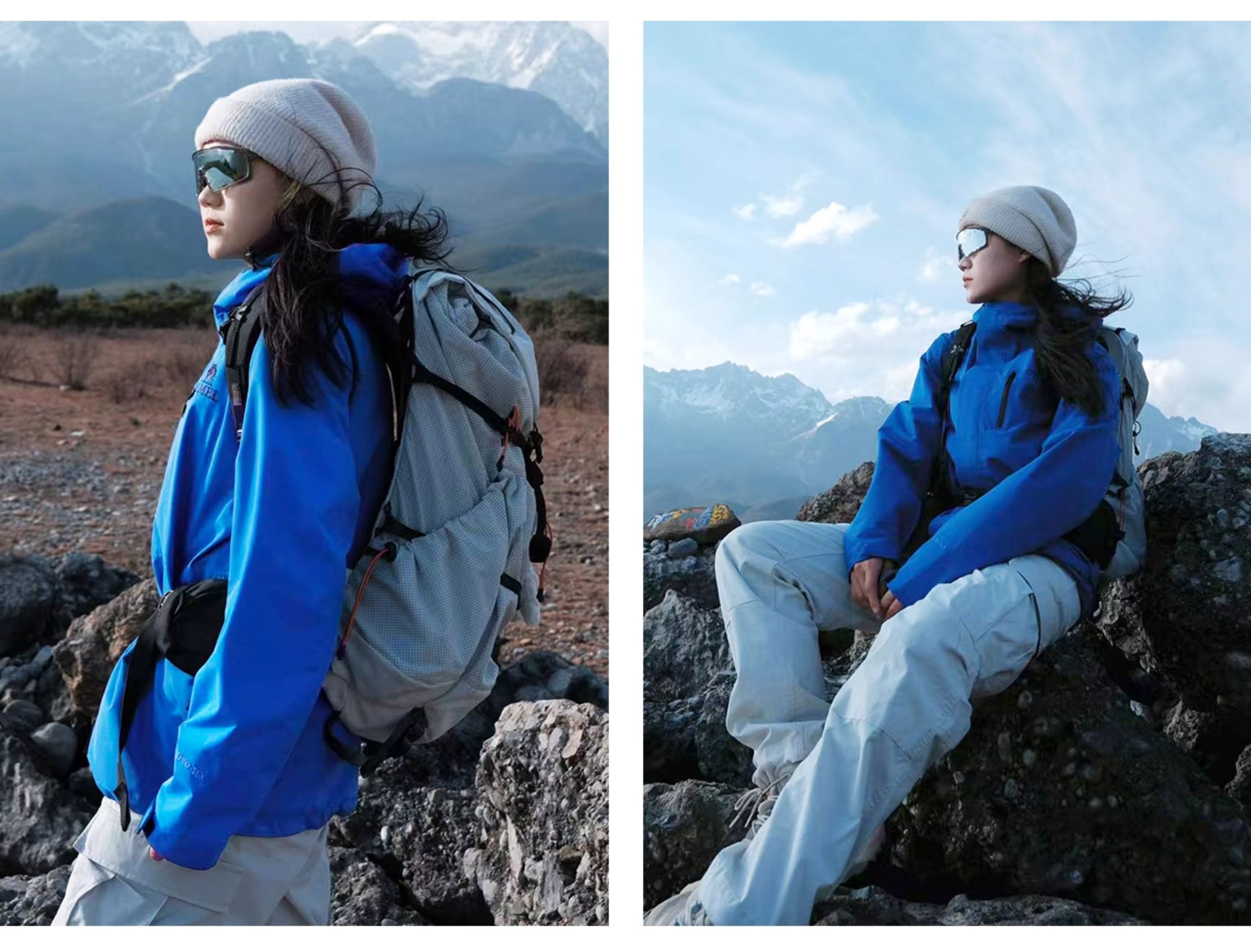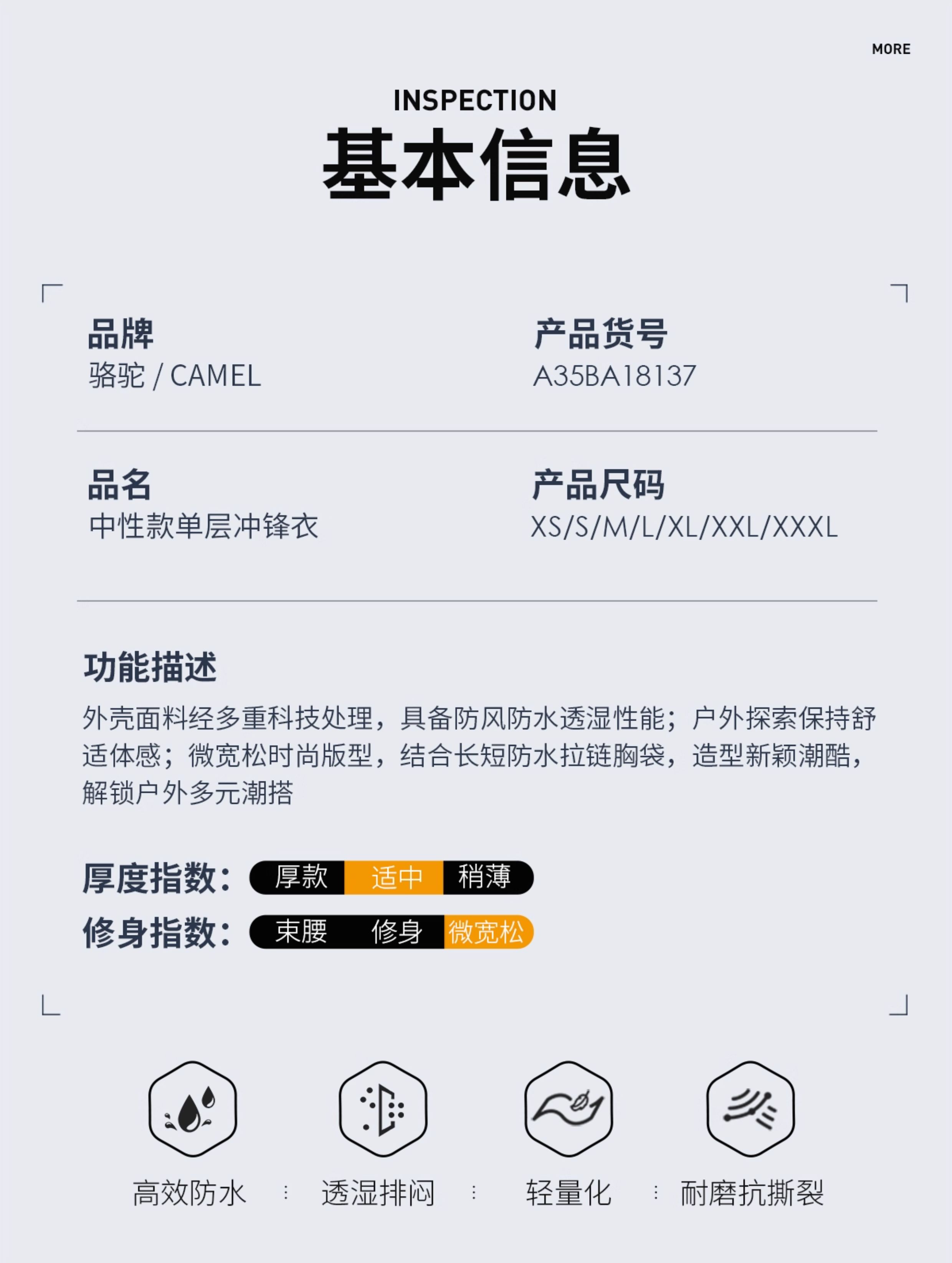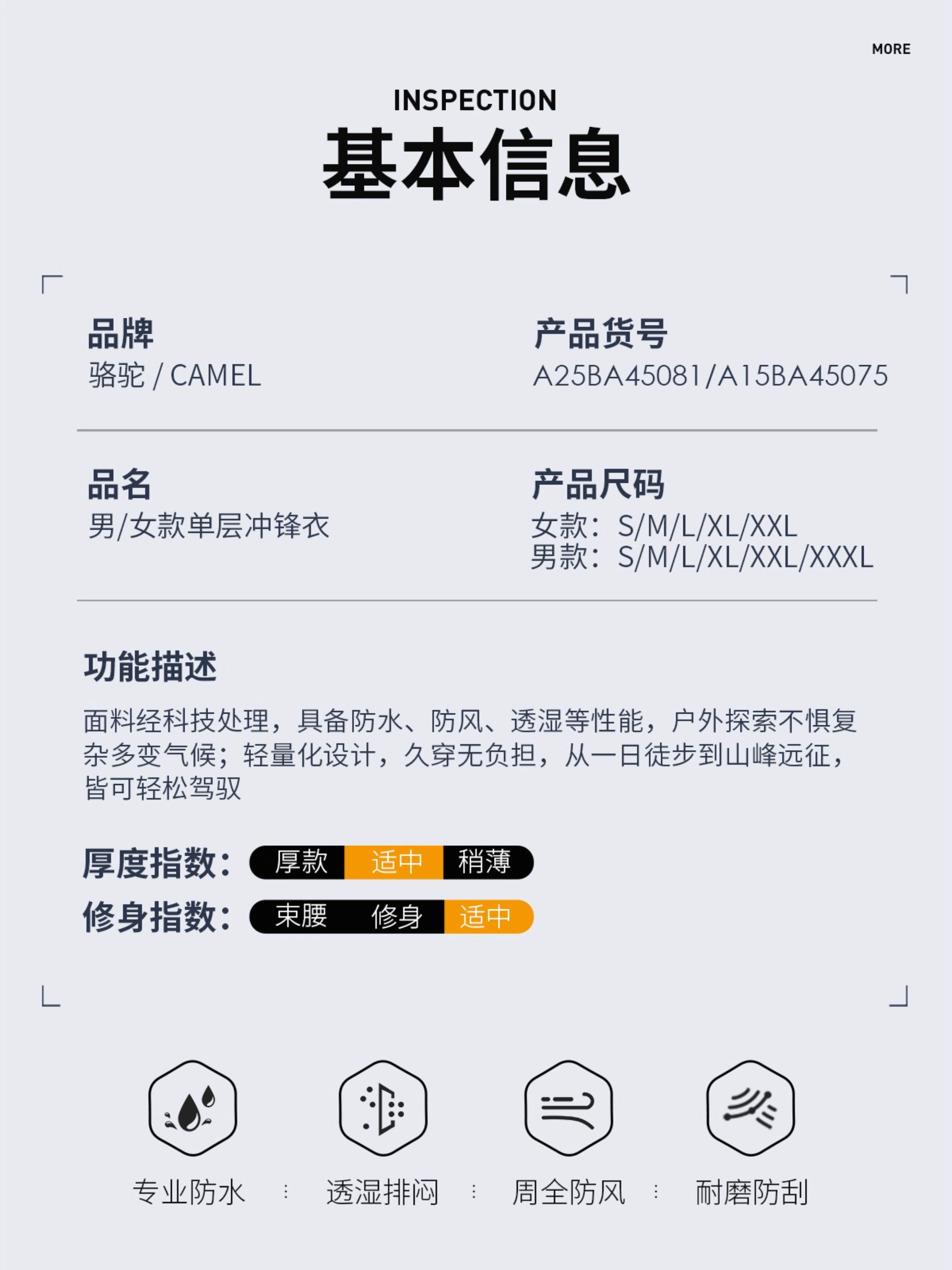 [Same Style as Wang Junkai] Camel Outdoor Hardshell Klein Blue Jacket for Women 2025 Single Layer Waterproof Jacket for Men