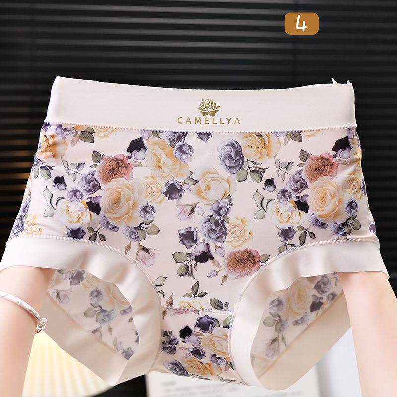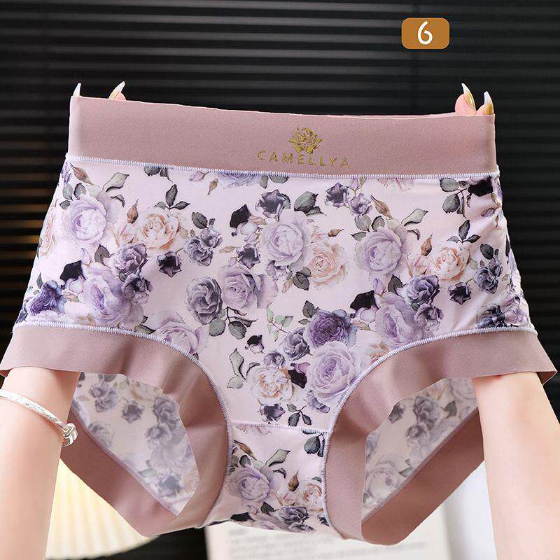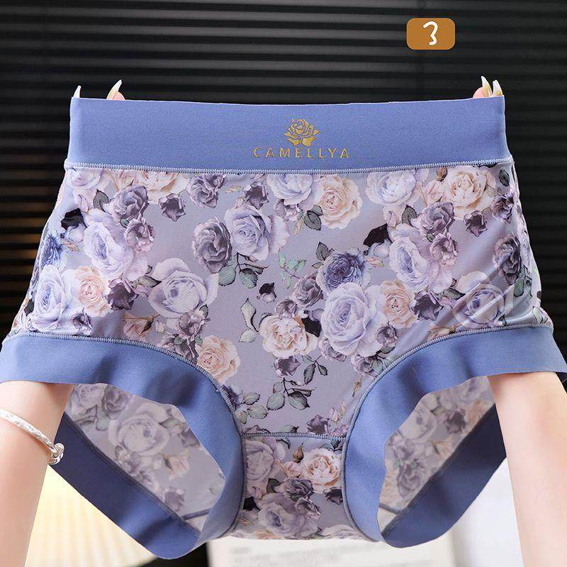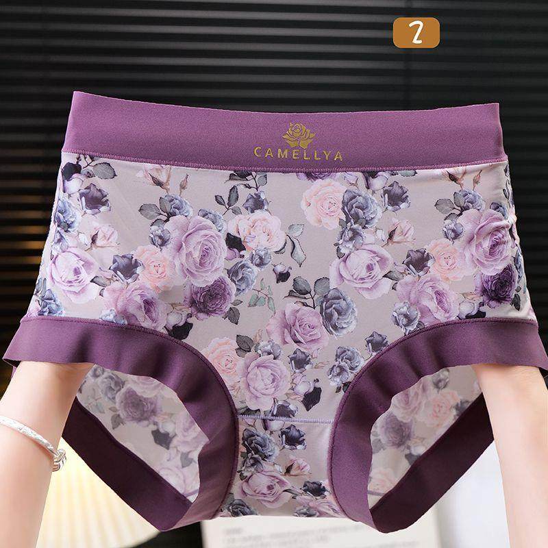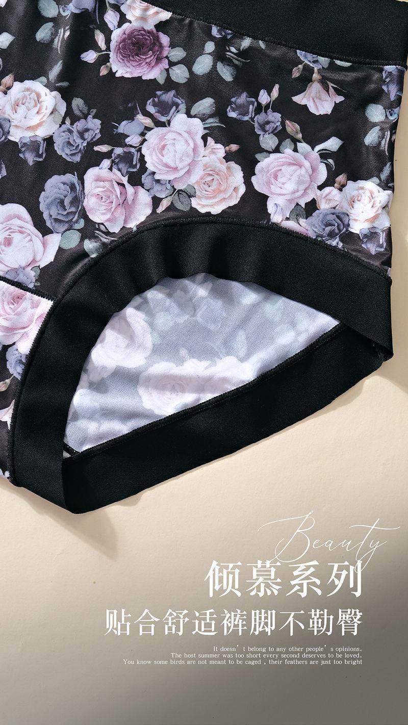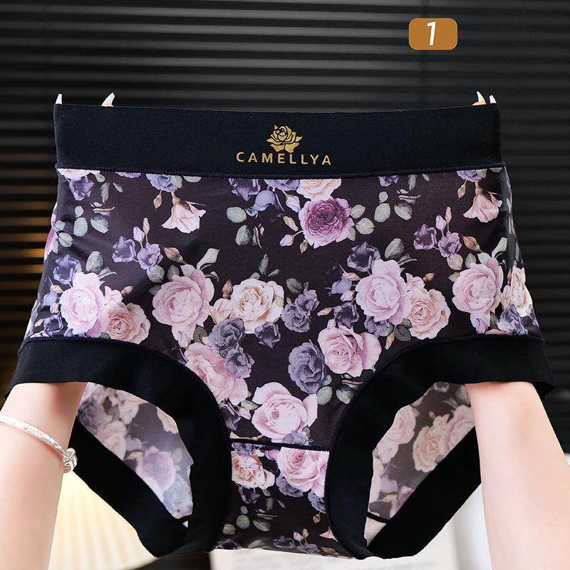 High-Quality Ice Silk Fabric Printed Mid-High Waist Plus-Size Women's Panties, Hip-Hugging, Comfortable Cotton Crotch, Seamless Briefs