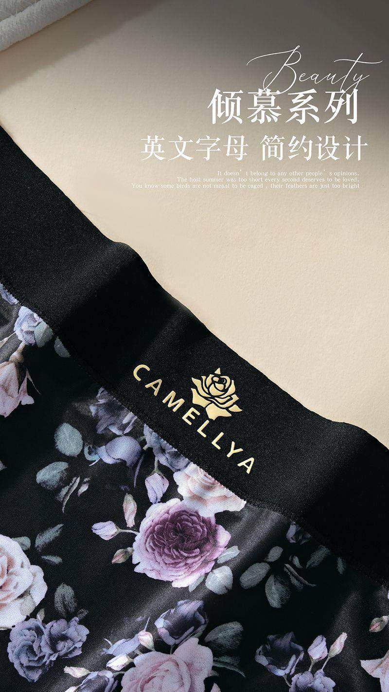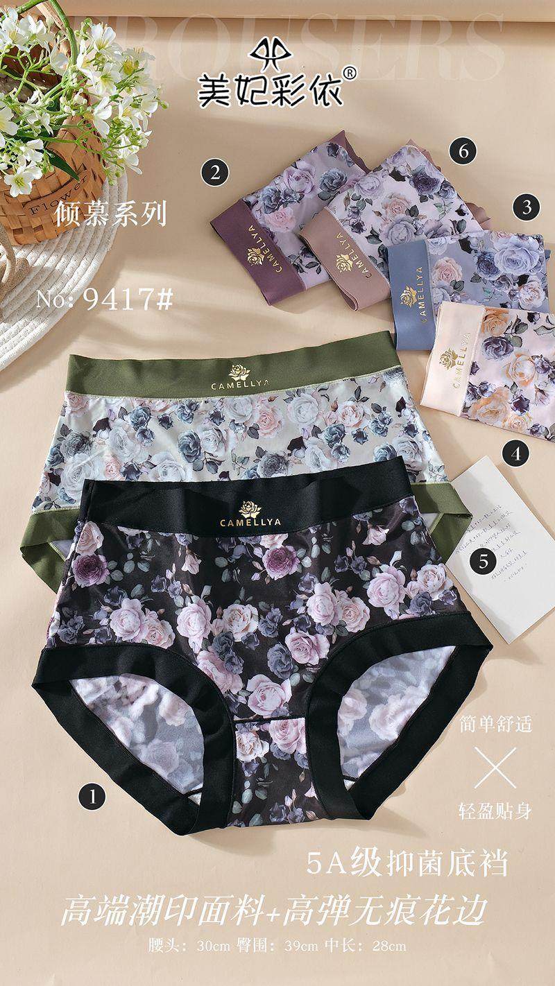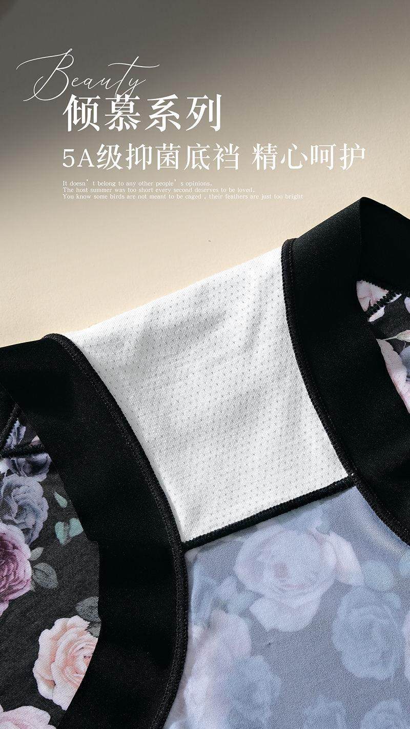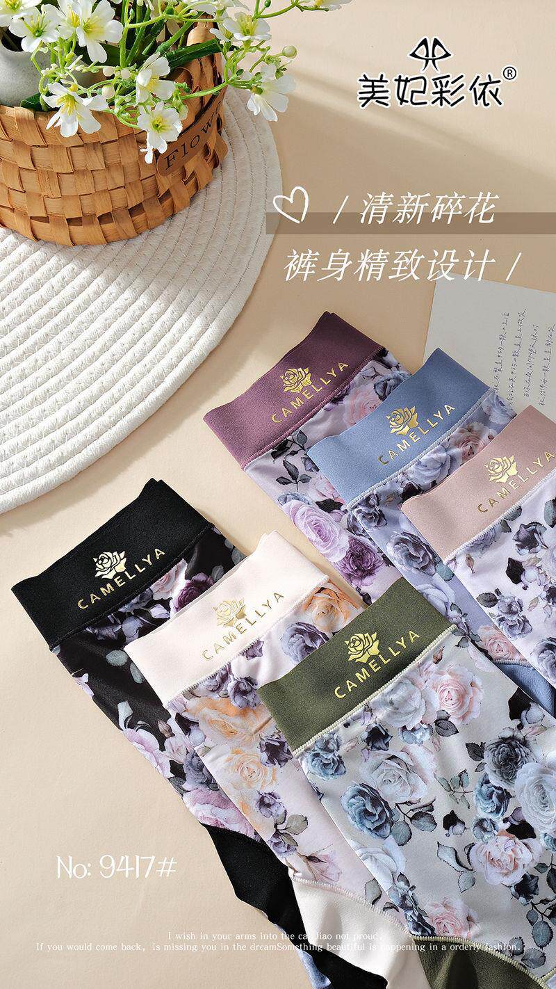 High-Quality Ice Silk Fabric Printed Mid-High Waist Plus-Size Women's Panties, Hip-Hugging, Comfortable Cotton Crotch, Seamless Briefs