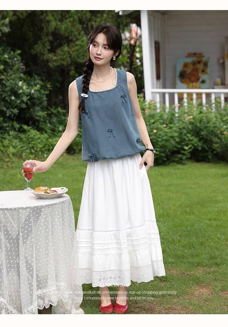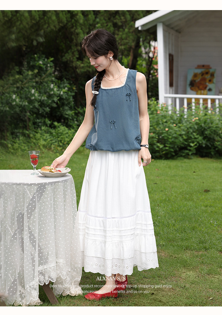 Lu Xiangnan's "Lazy Time" White Long Cake Skirt for Women, Early Spring Petite A-Line Skirt