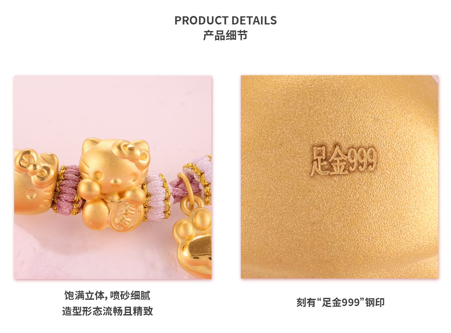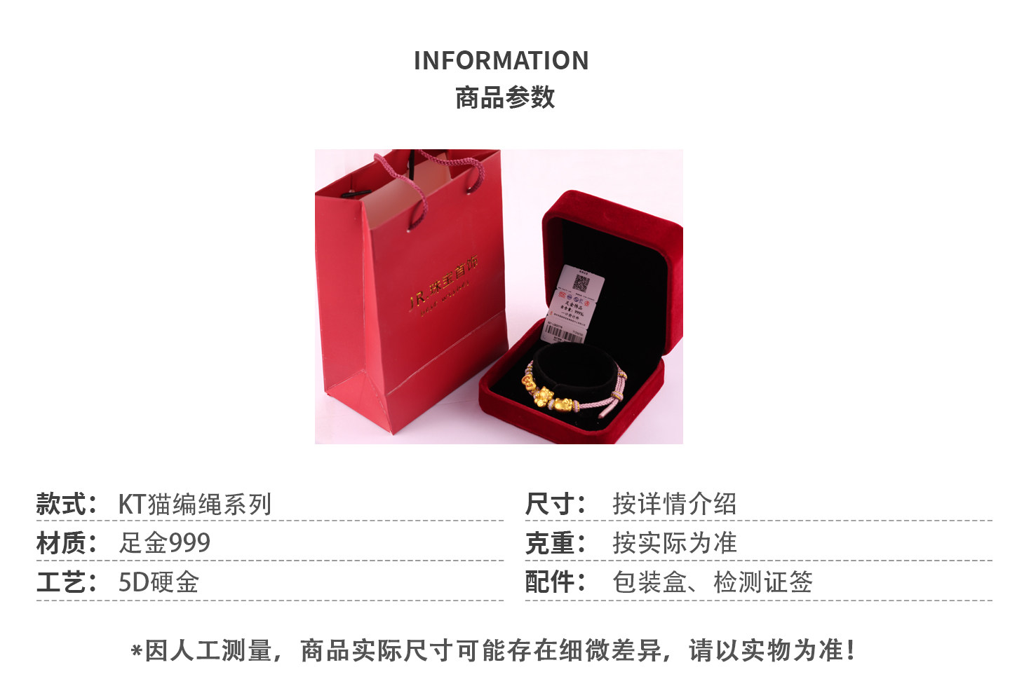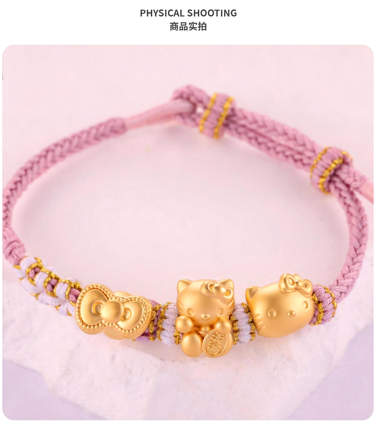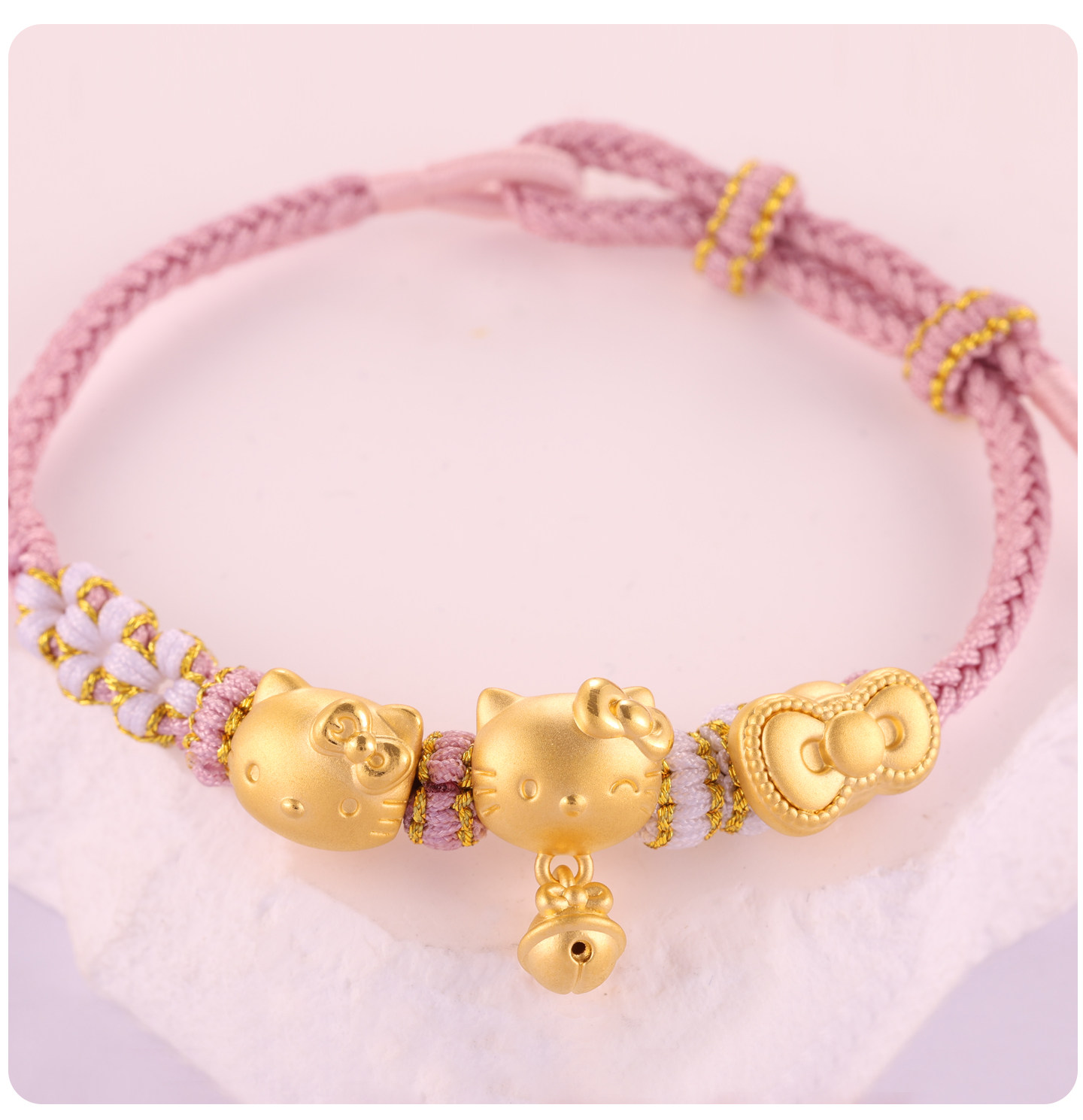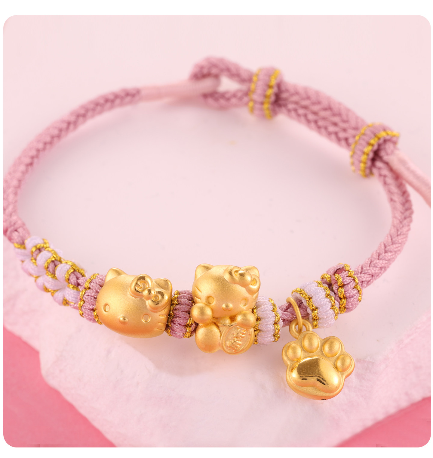 Pure Gold 999Kt Cat Gold Braided Rope Bracelet with Pure Gold Bow 0kg Kitty Cat Lucky Bead Gift for Girlfriend