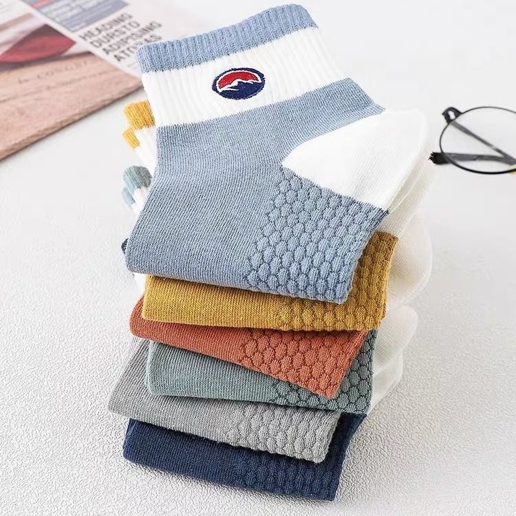 Men's Summer Mid-Calf Socks, Sweat-Absorbent and Breathable Basketball Sports Socks, Trendy Boys' Boat Socks, Comfortable