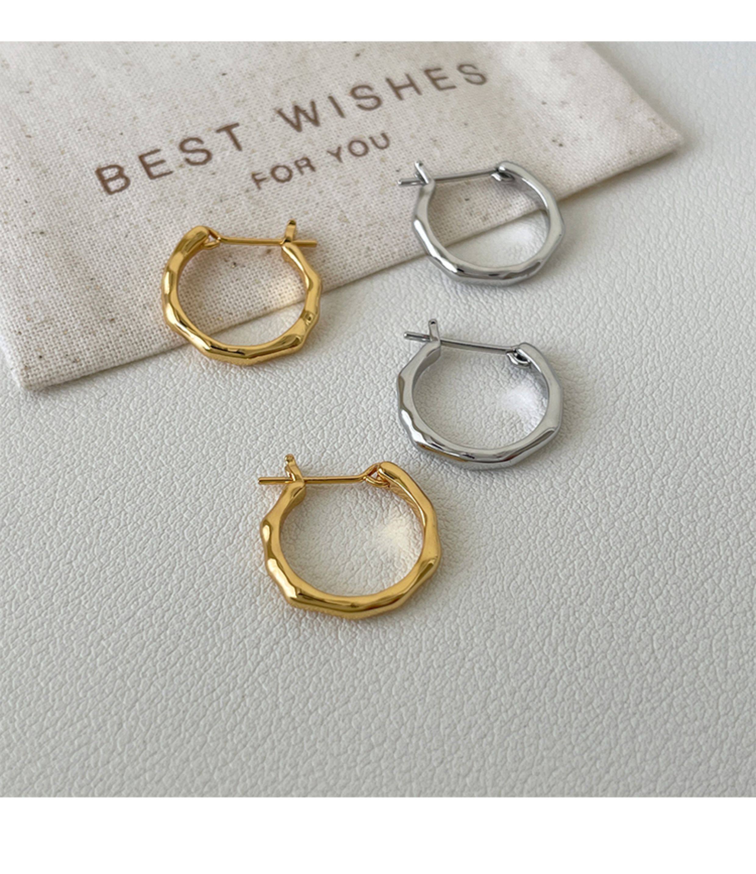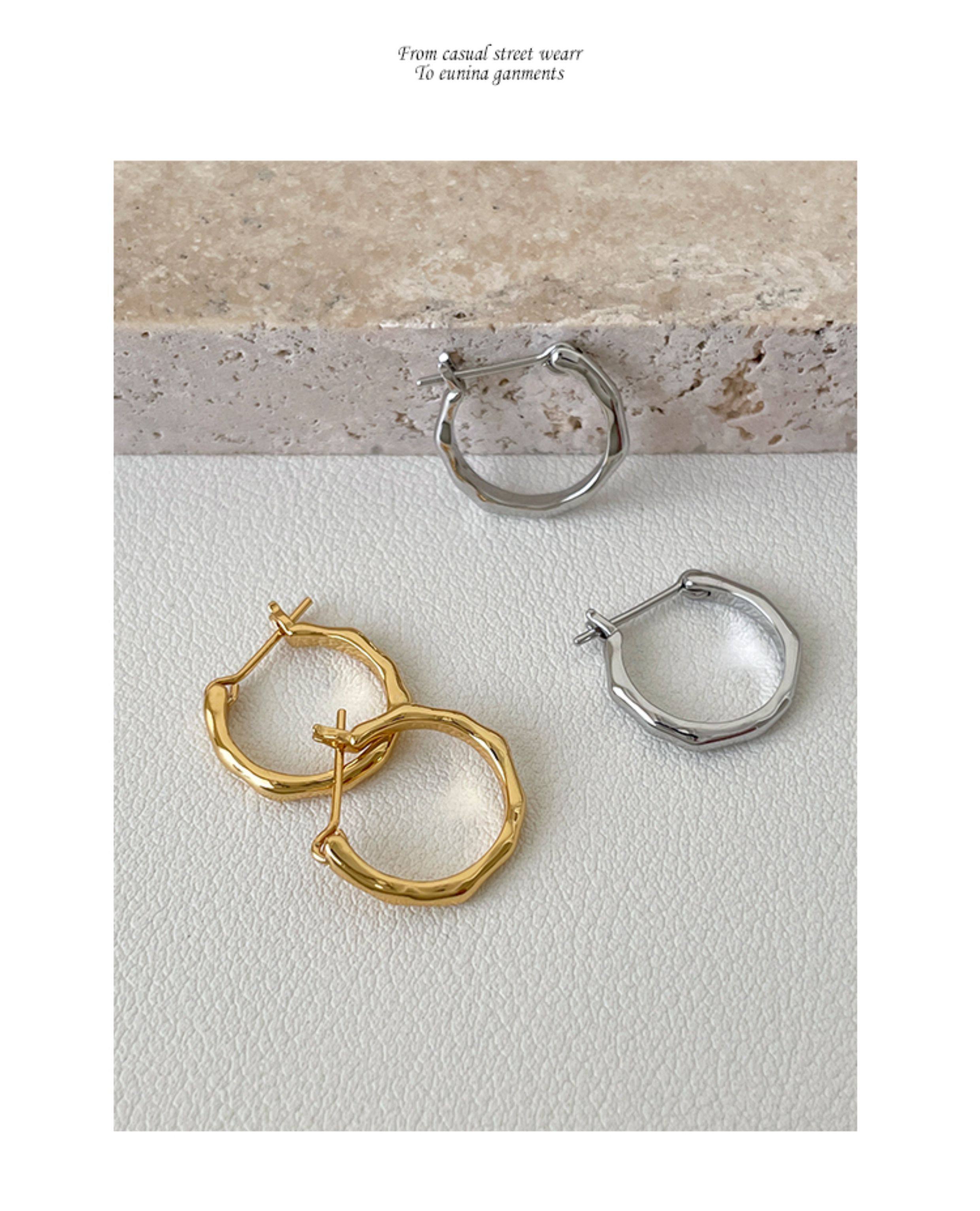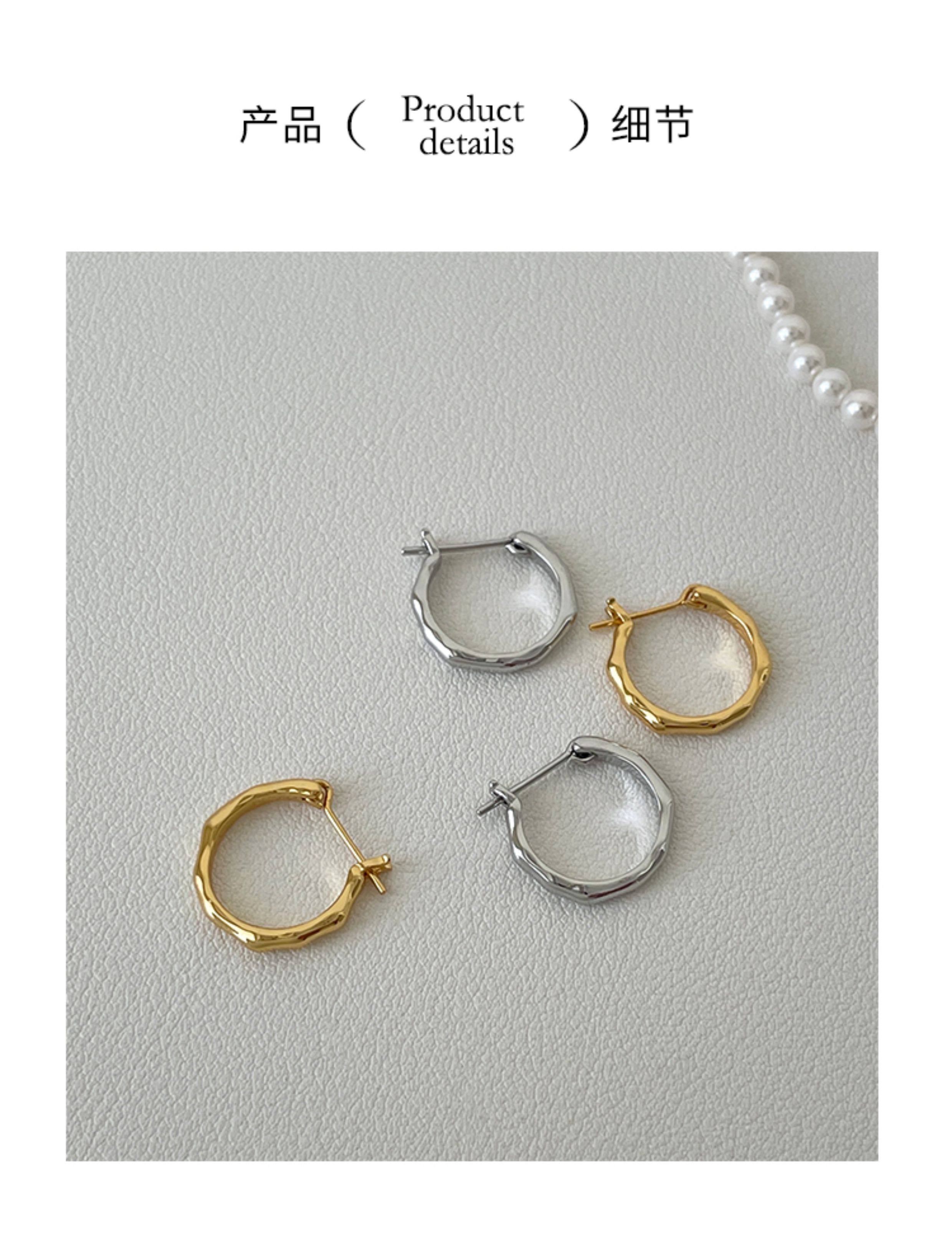 925 Sterling Silver Irregular Plain Hoop Earrings Straight Pin Ear Hoops Ear Clasps Niche Design High-End Earrings for Women