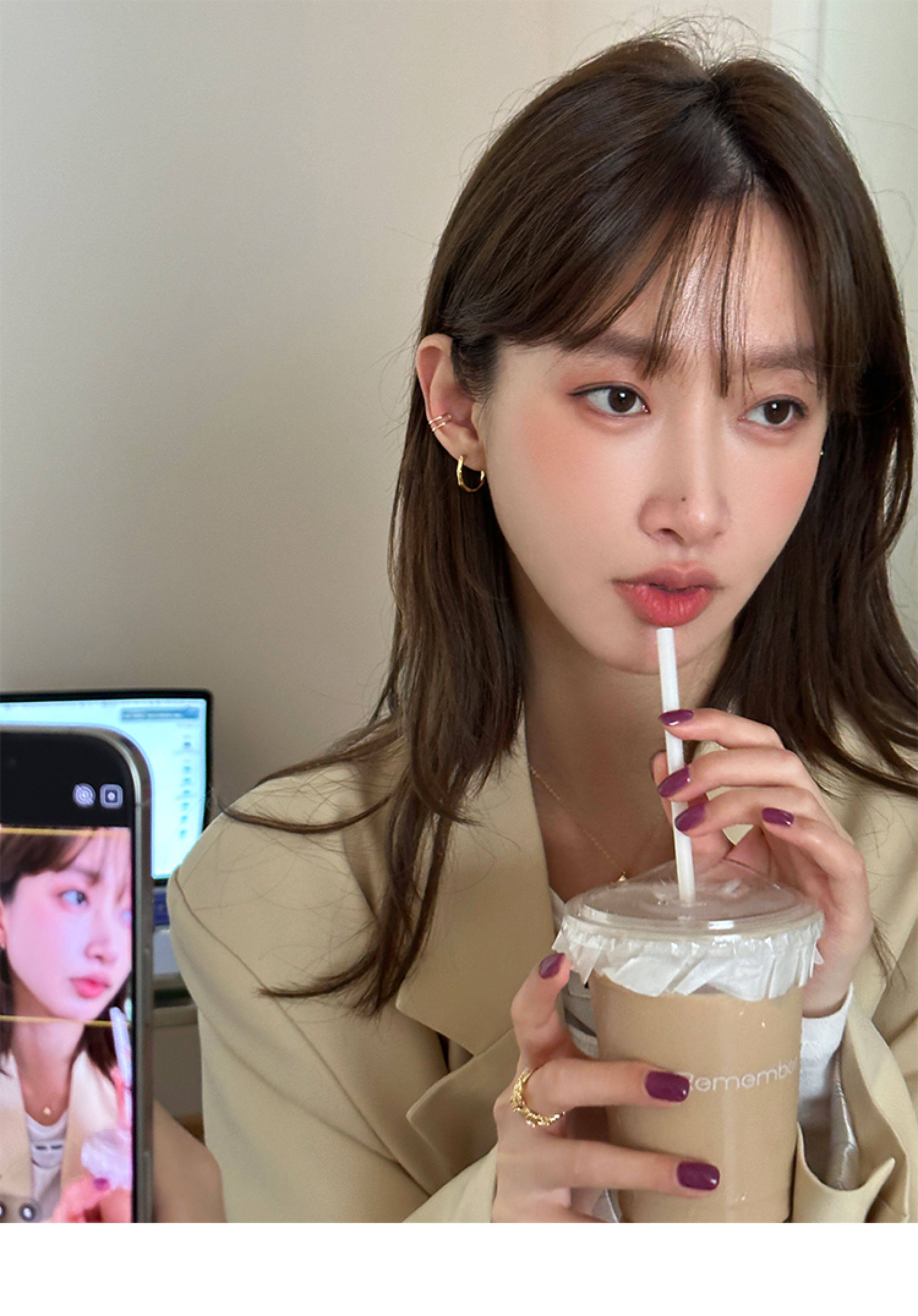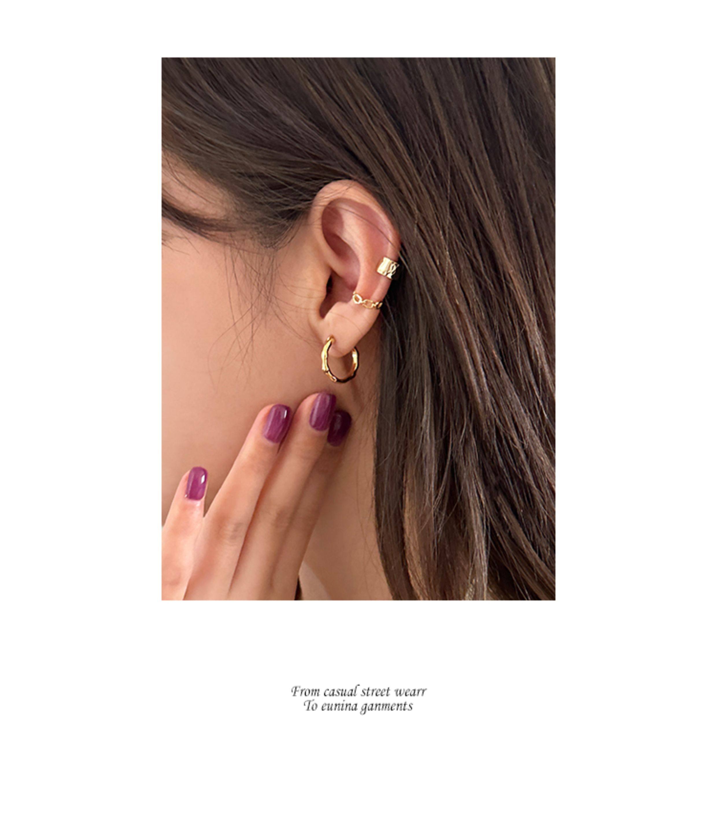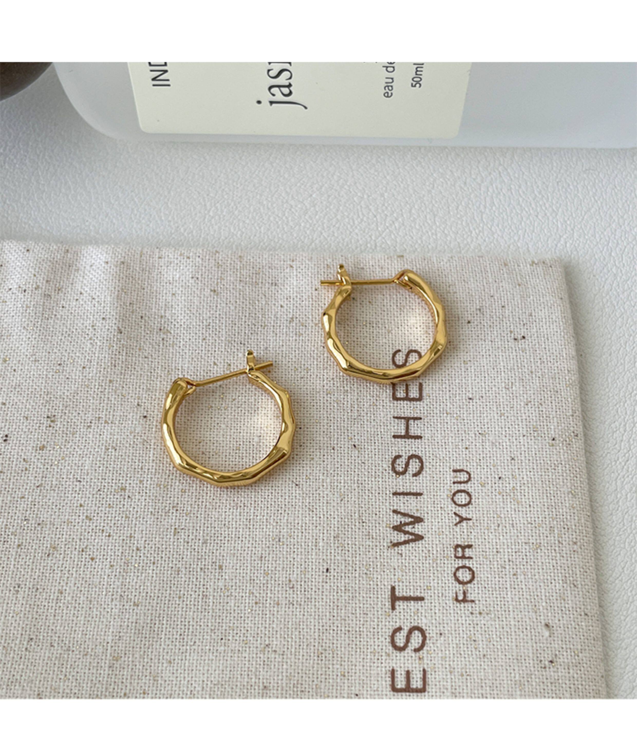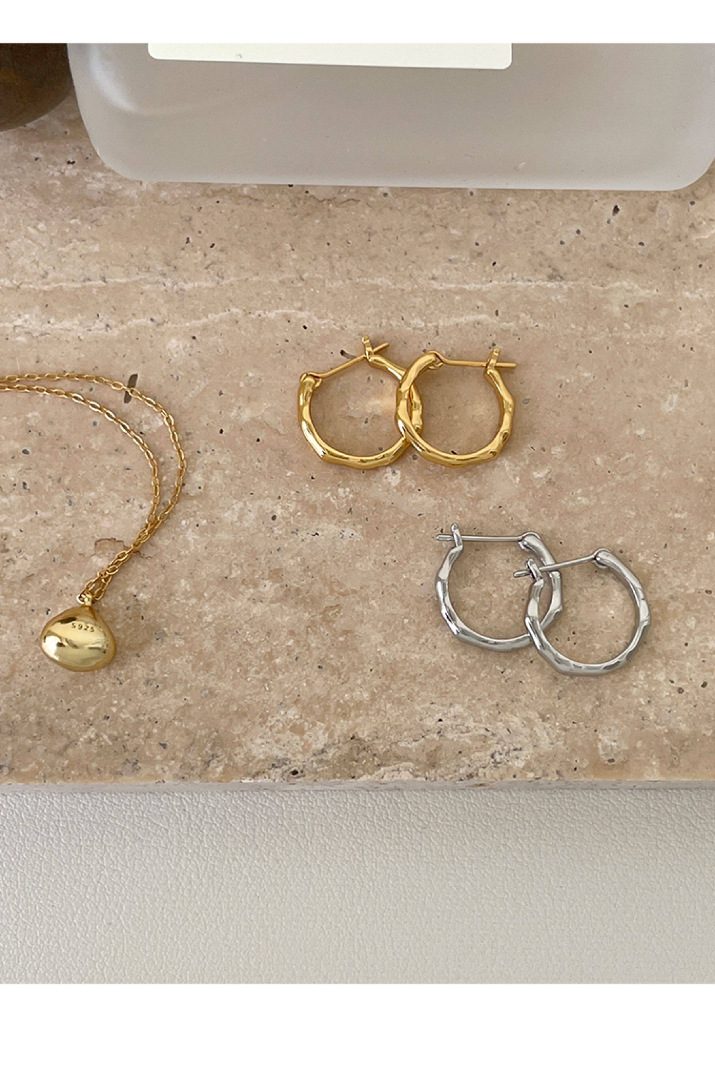 925 Sterling Silver Irregular Plain Hoop Earrings Straight Pin Ear Hoops Ear Clasps Niche Design High-End Earrings for Women