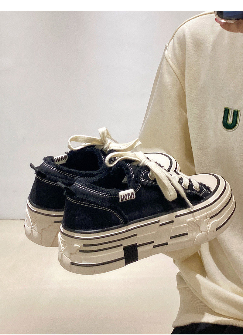 Hong Kong Thick-Soled Height-Increasing Color-Blocked Frayed Canvas Shoes for Women 2026 Spring and Autumn New Korean Style Casual Versatile Platform Shoes