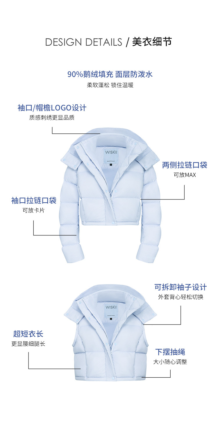Wiskii Autumn and Winter Cold-Proof Goose down Warm Jacket, Versatile down Jacket for Outdoor Wear, Fitness Sports Top, Hooded Jacket