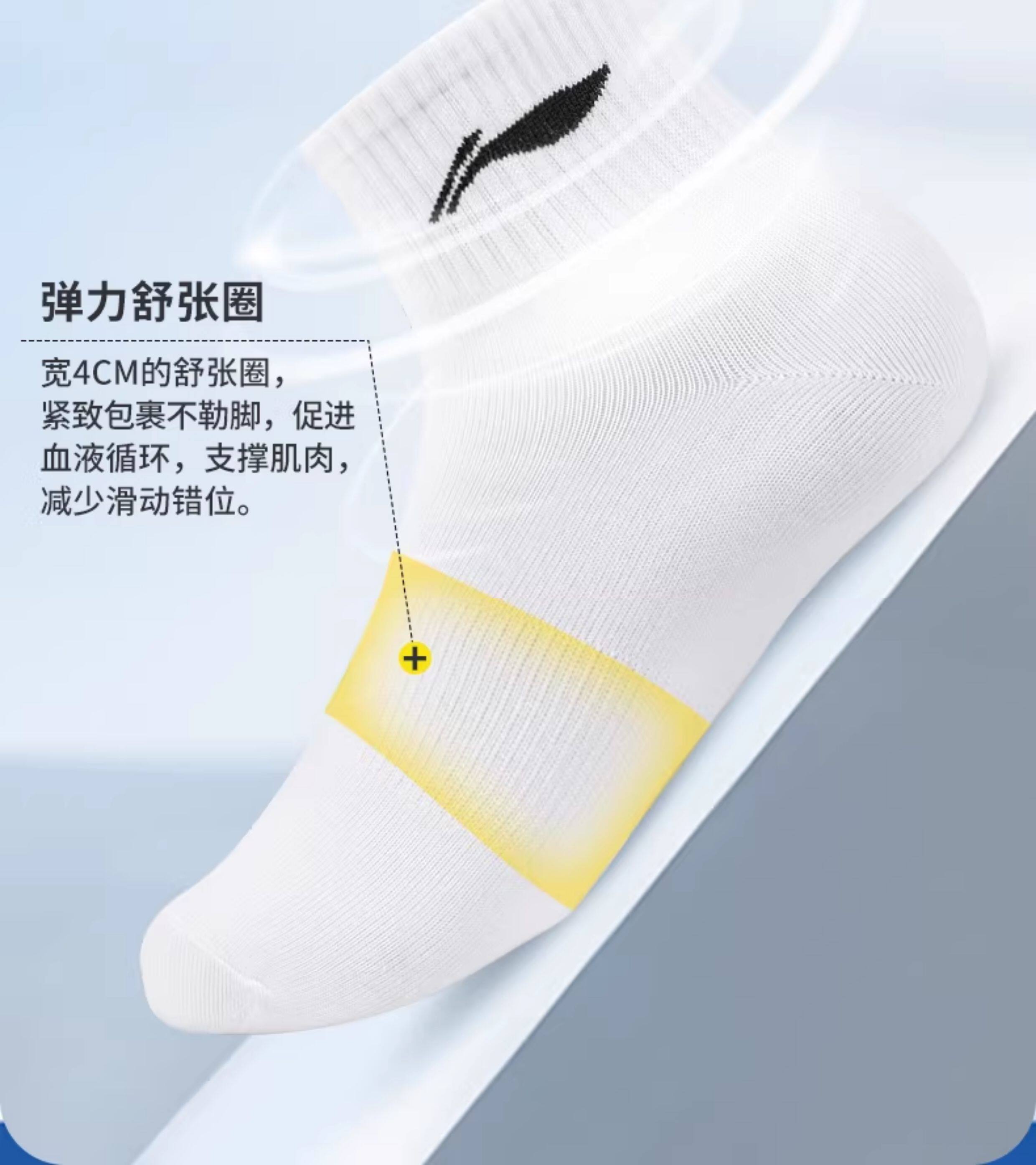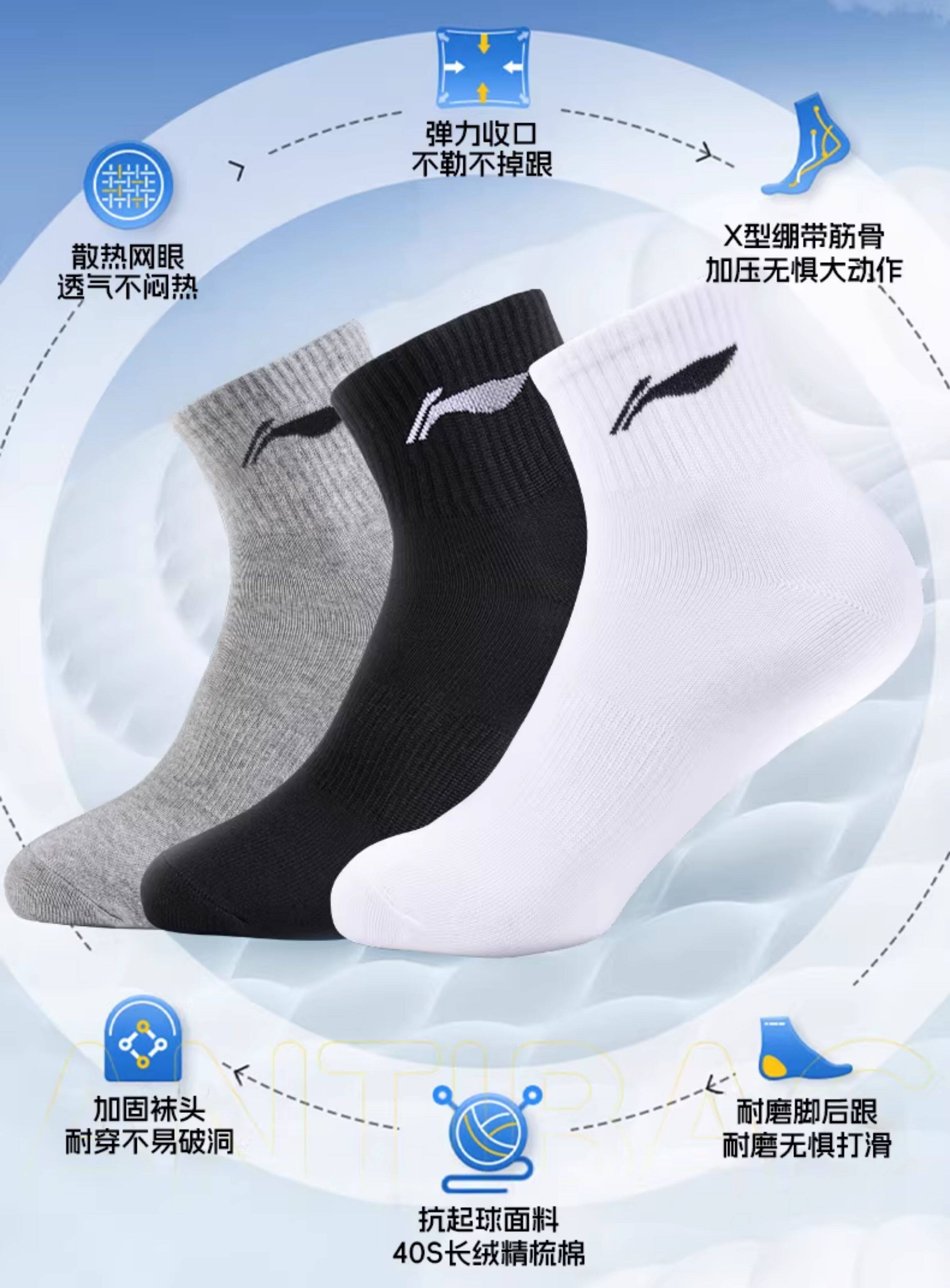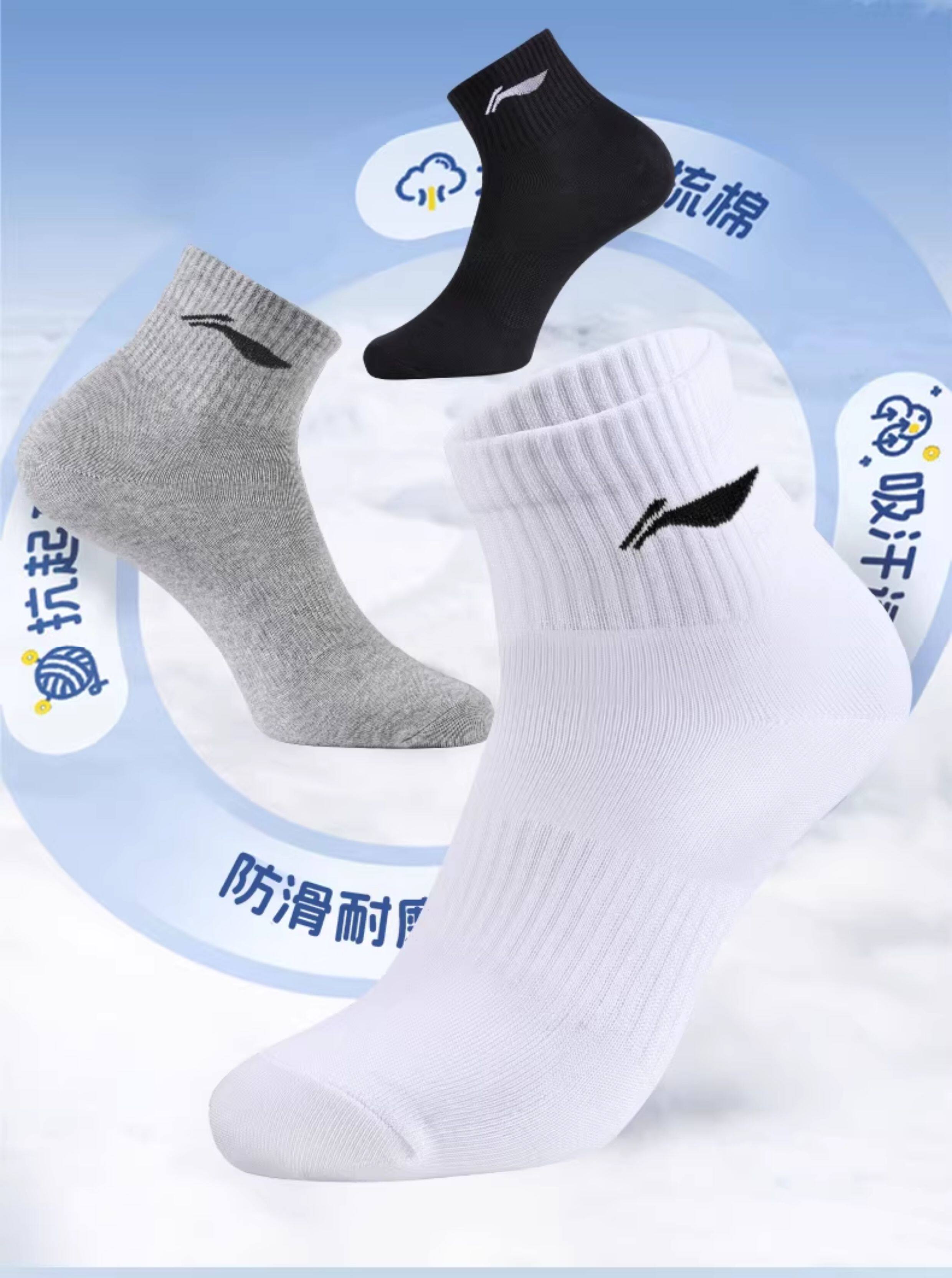 Li Ning Genuine Socks Men's Sports Socks Pure Cotton Youth Deodorant Cotton Socks Sweat-Absorbent Breathable Running Socks Wear-Resistant