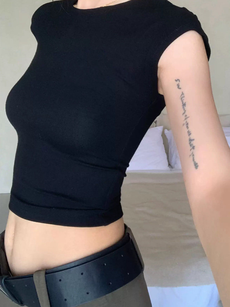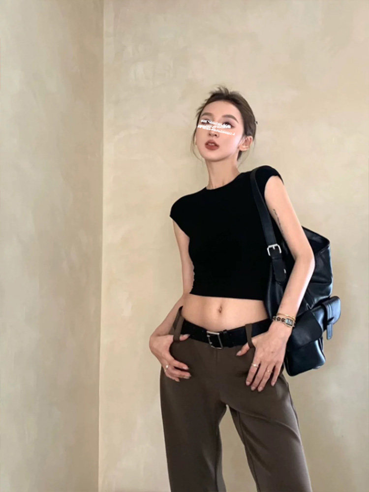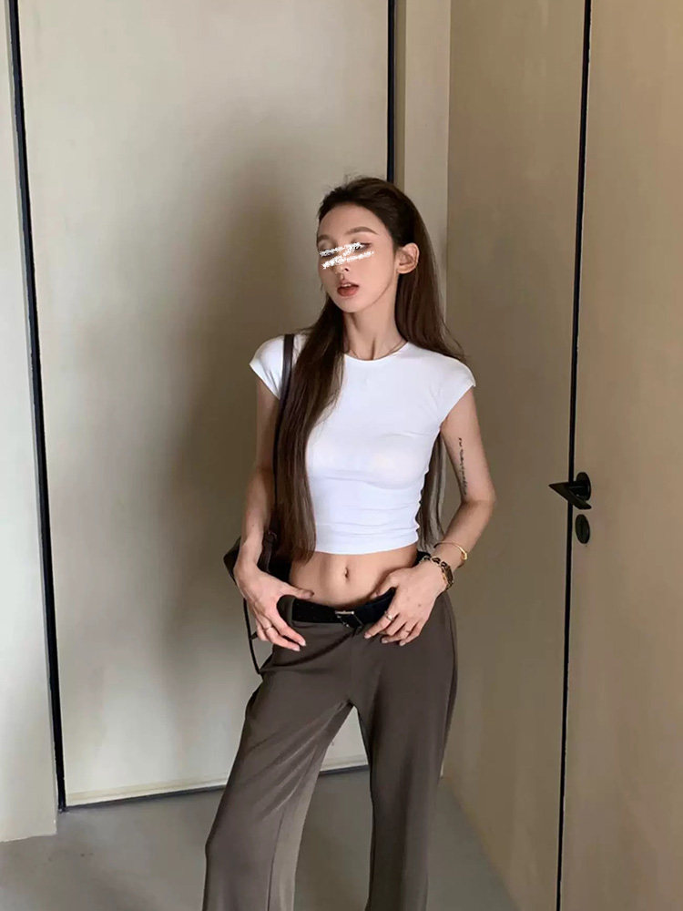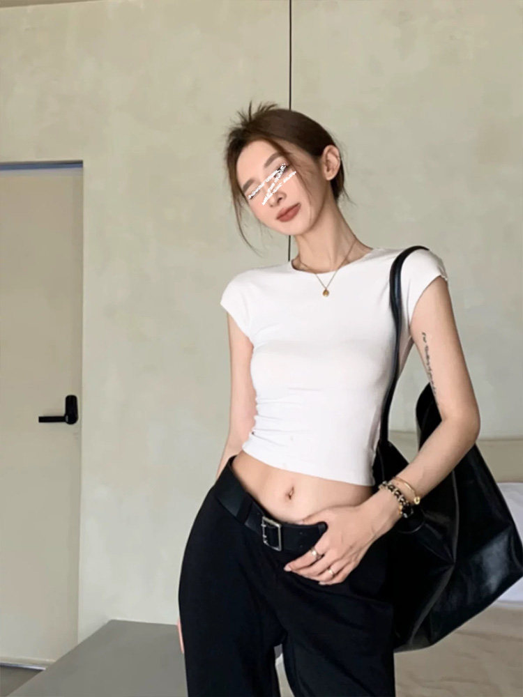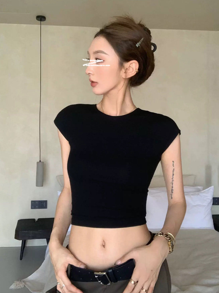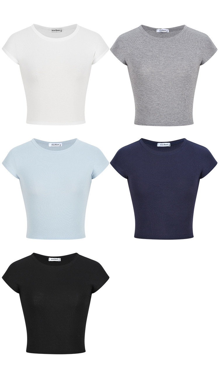 Mosesqueen Spicy Girl Short Crop Top with Flutter Sleeves, Slim Fit, Round Neck, Short Sleeve T-Shirt