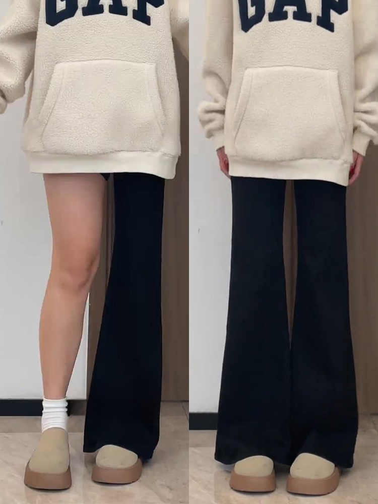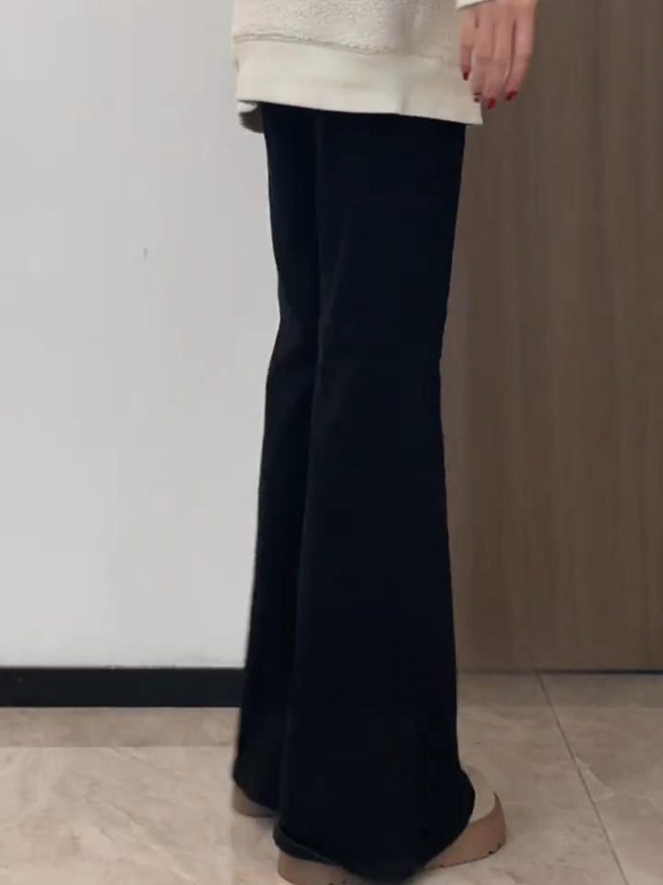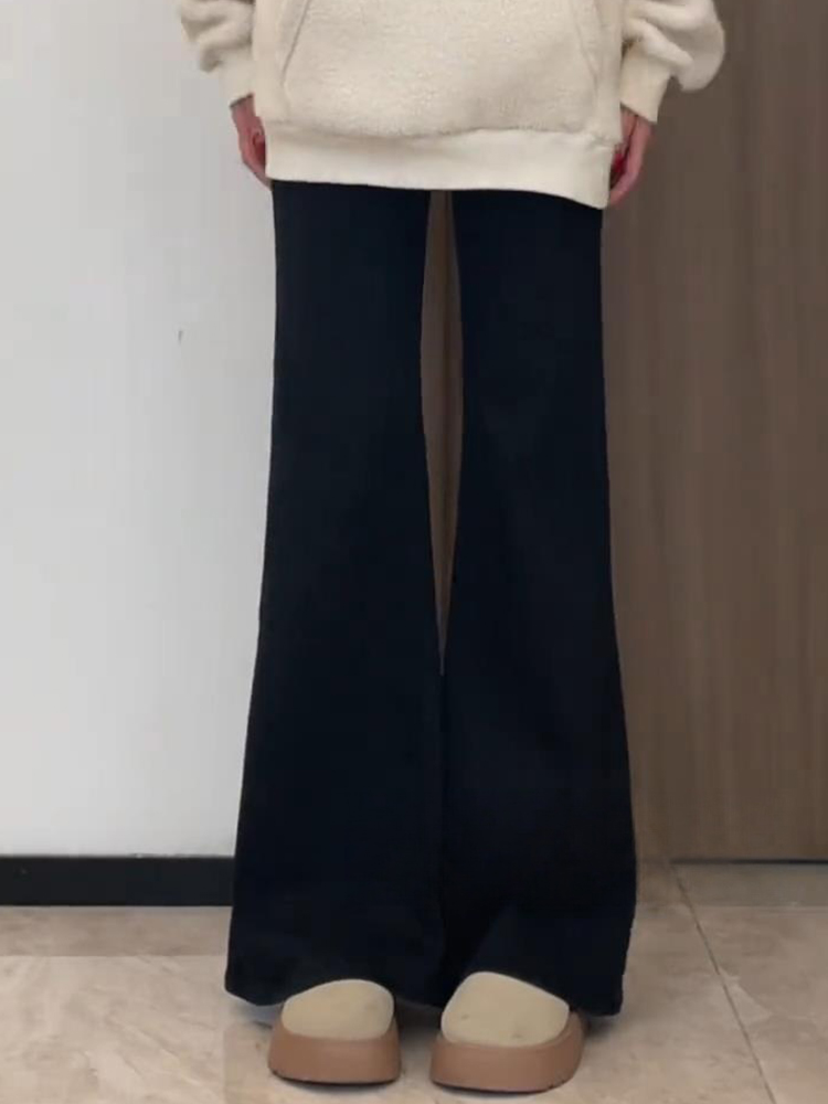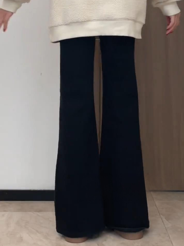 Pear-Shaped Body Black Non-Tight Flared Jeans for Women, Autumn and Winter Fleece-Lined Plus Size Fat mm High-Waisted Stretchy Bell-Bottom Pants