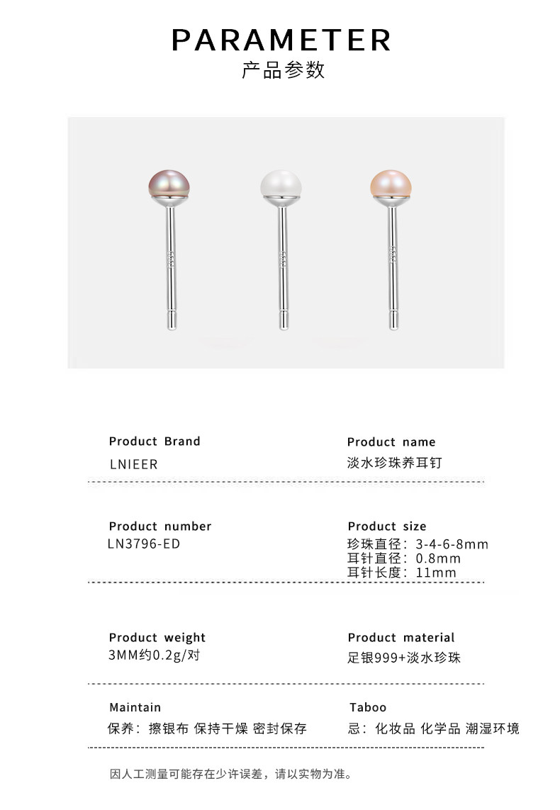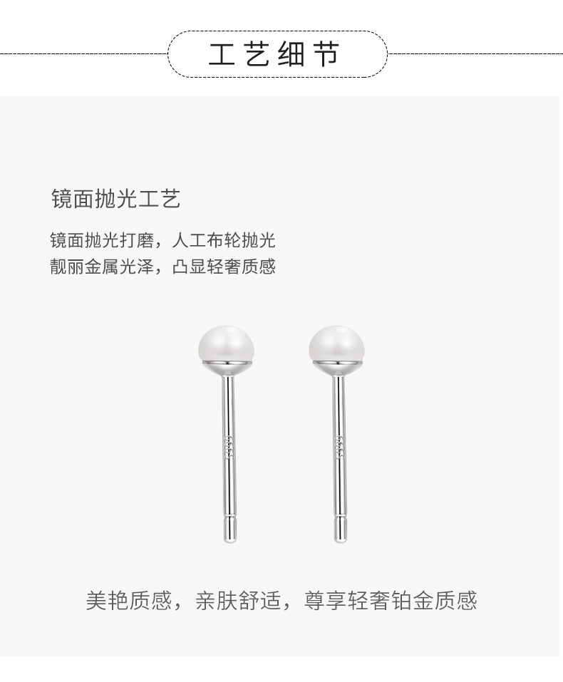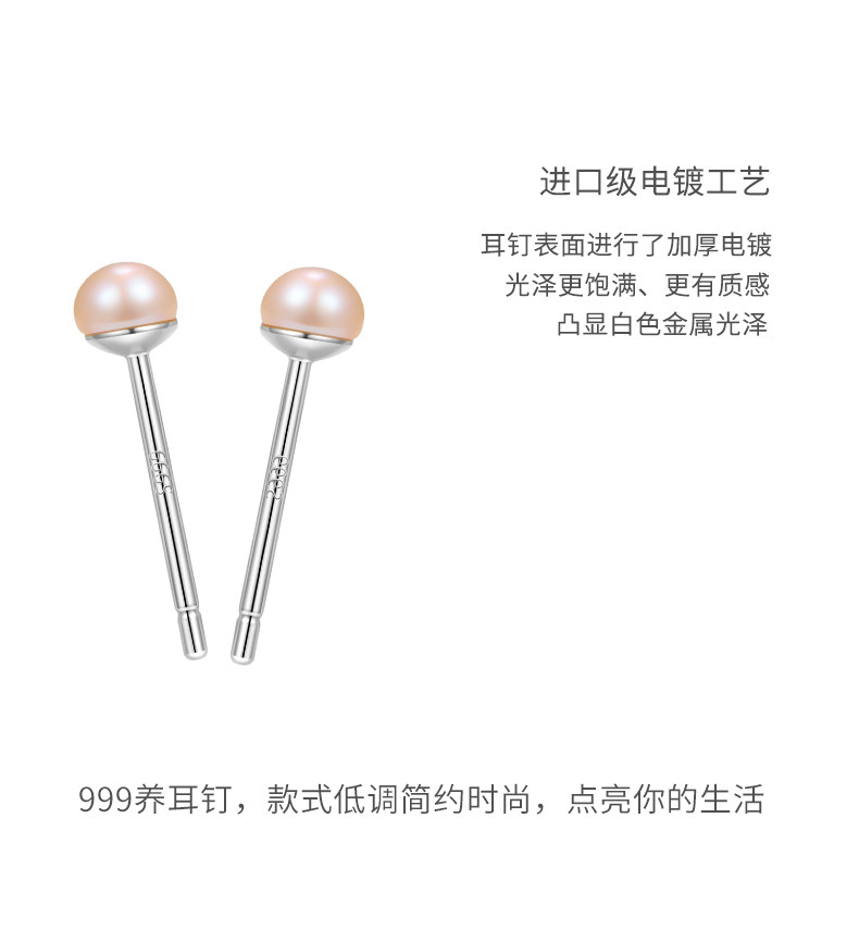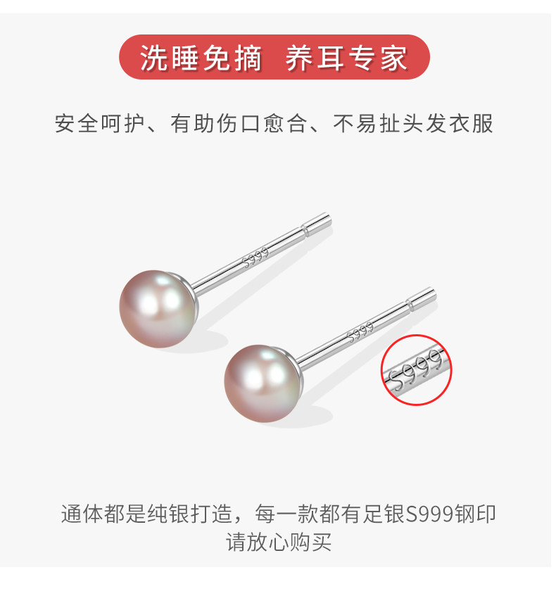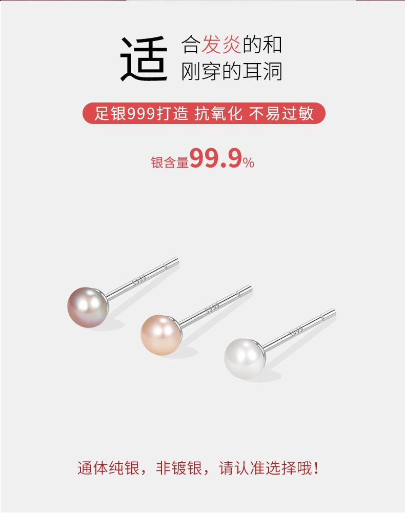 999 Pure Silver Natural Freshwater Pearl Earrings for Women, Ear Piercing Small Earrings, Ear Bone Studs, Elegant and High-End Ear Jewelry