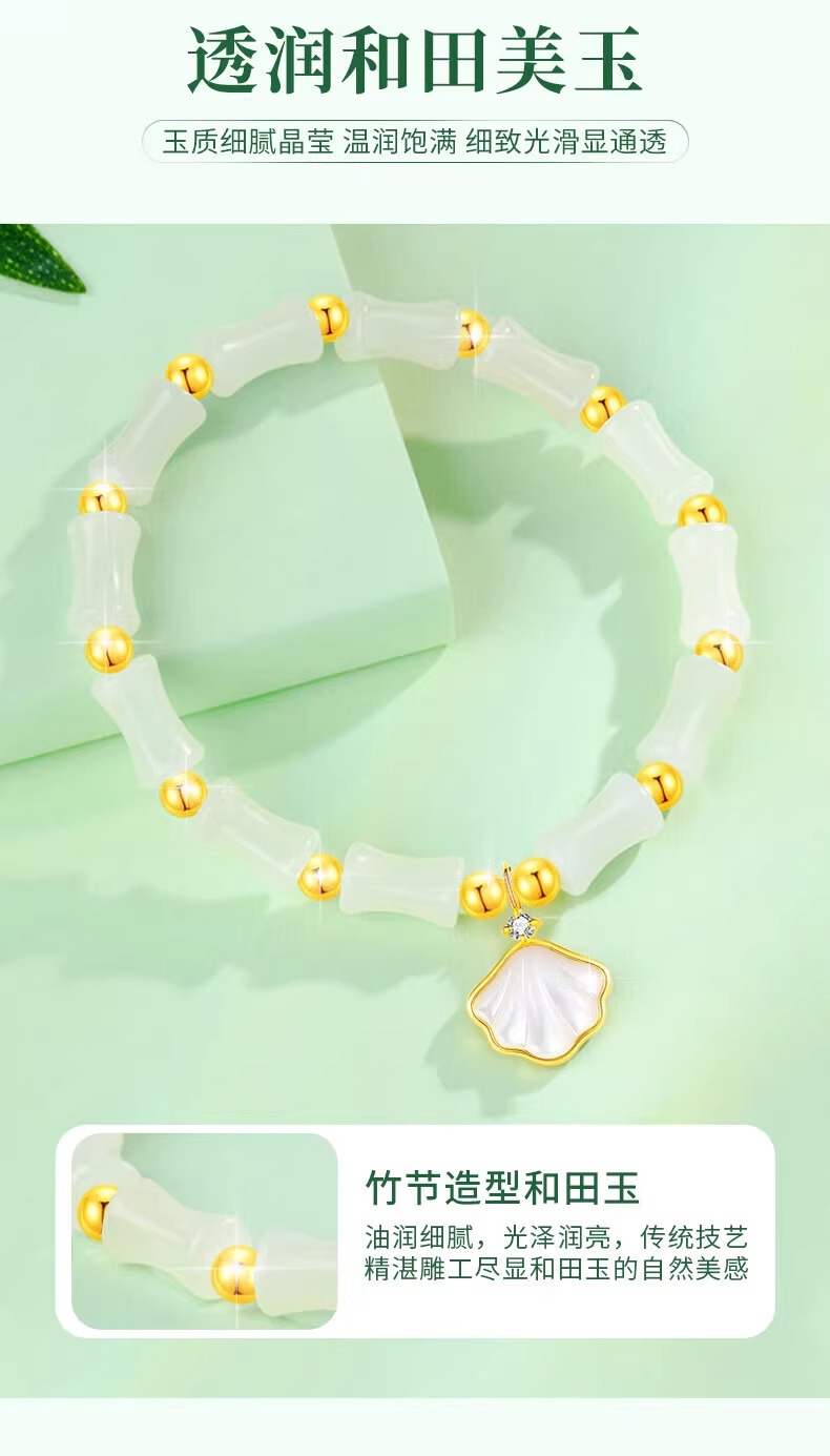Authentic 999 Pure Gold Hetian Jade Bracelet Gold Bracelet Qixi Valentine's Day Birthday Gift for Girlfriend
