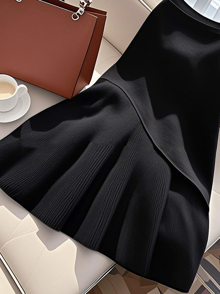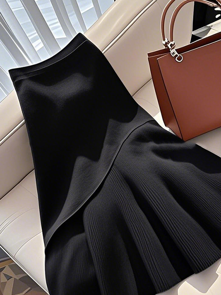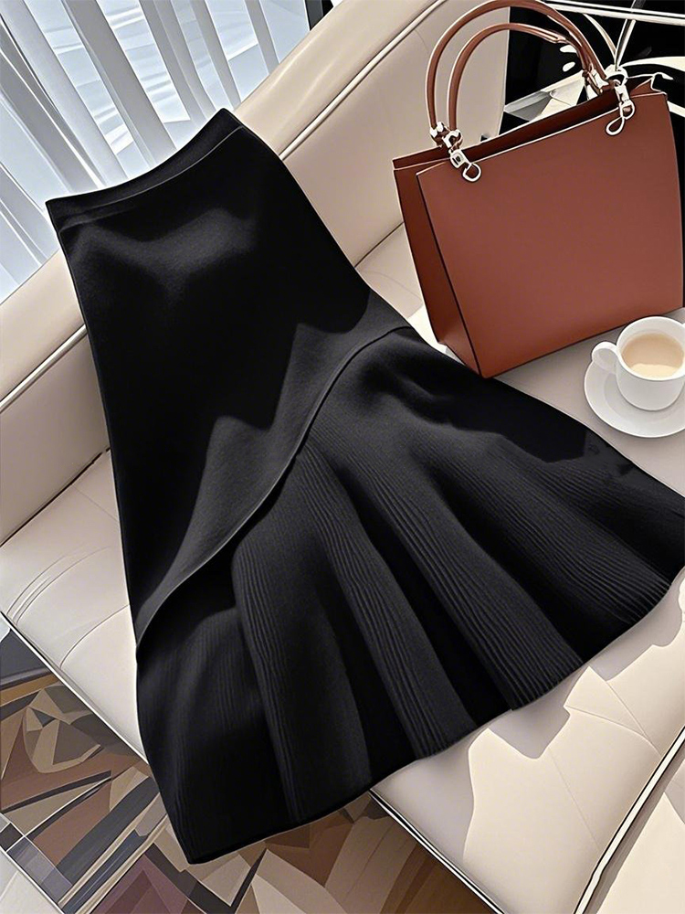 2025 Early Spring New Women's Clothing, This Year's Popular Hot Item, Unique and Beautiful Long Black A-Line Skirt