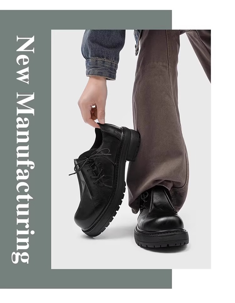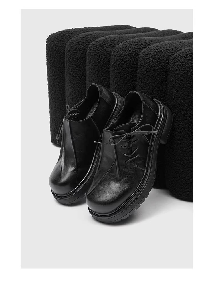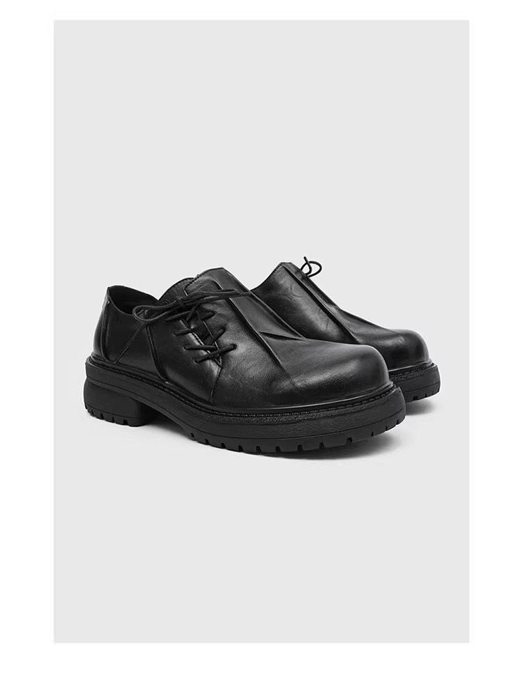 Pleated Upturned Derby Shoes Men's Black Genuine Leather Big-Toe Shoes Cleanfit High-End Couple Casual Work Clothing Leather Shoes