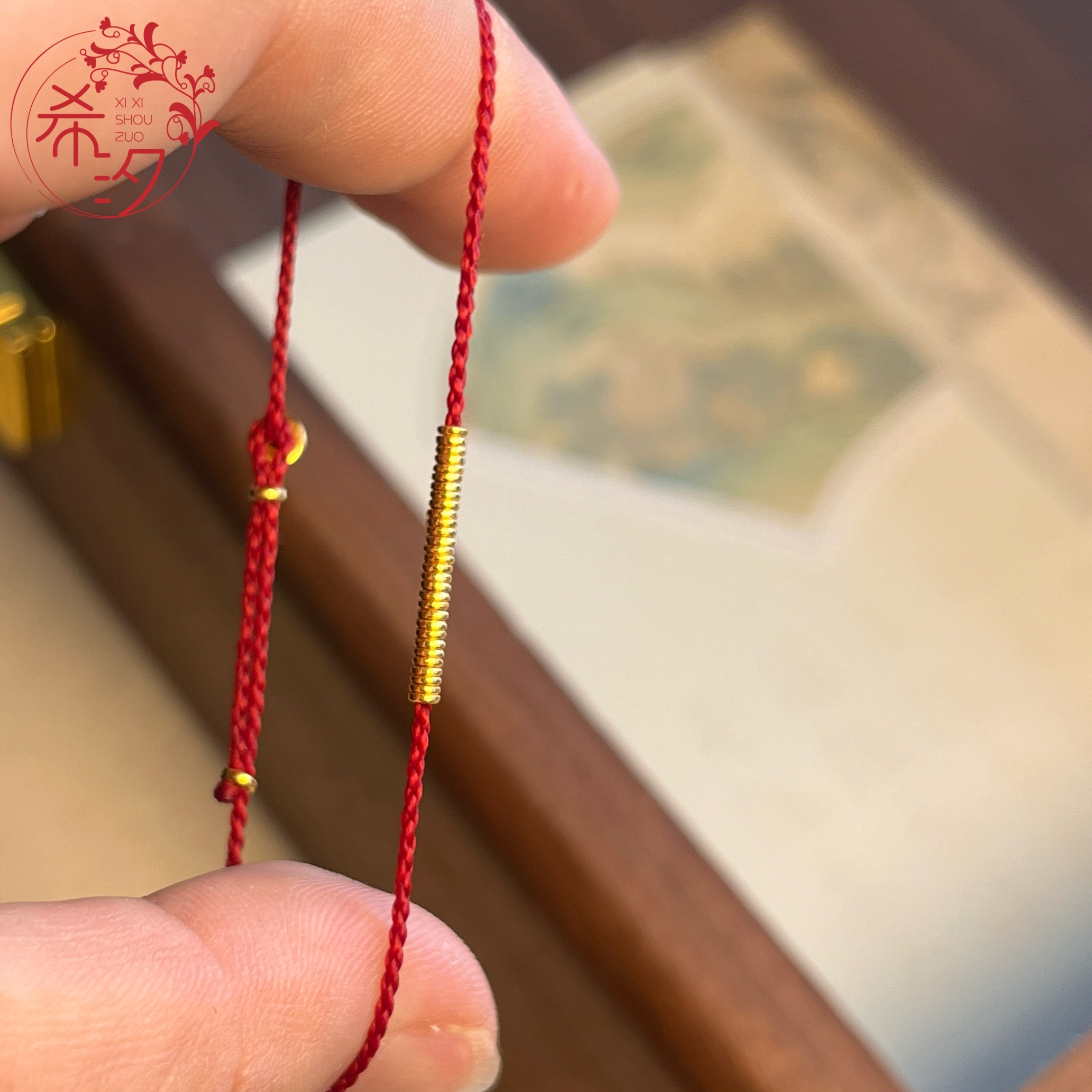 999 Pure Gold Circle Red String Simple Ultra-Thin Wax String Finely Woven Zodiac Year Red String Bracelet for Children and Adults