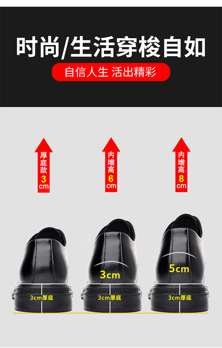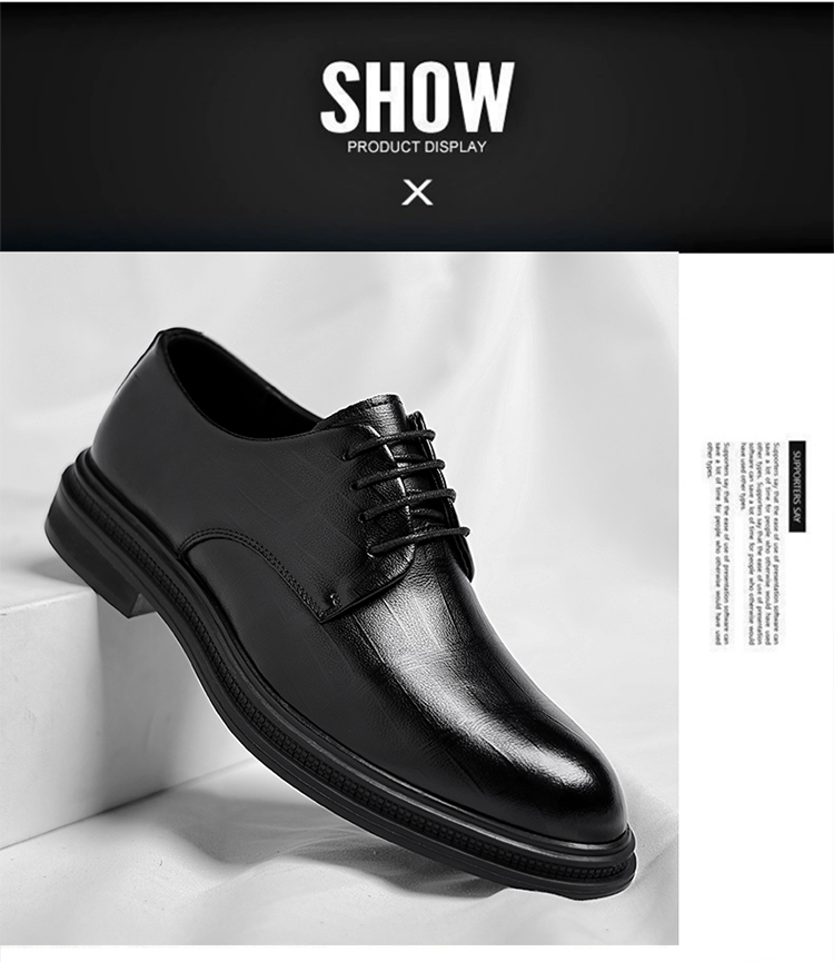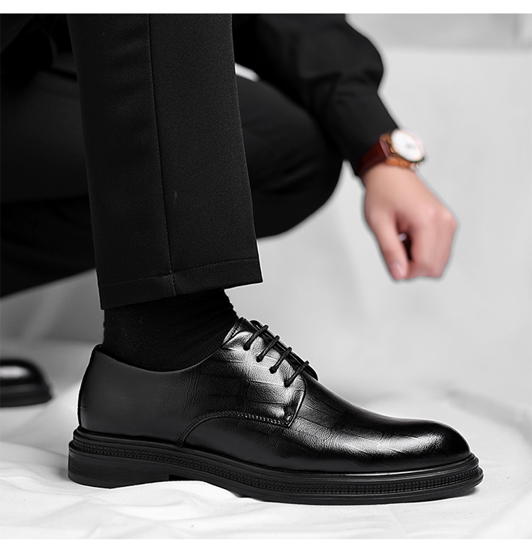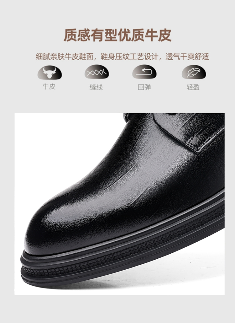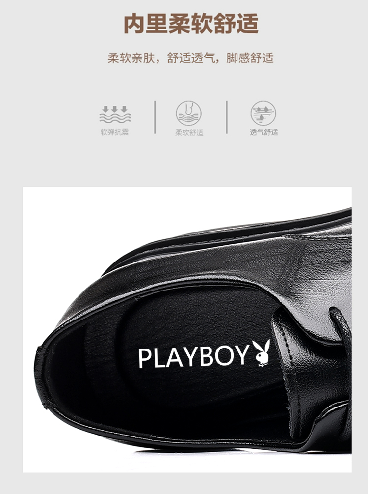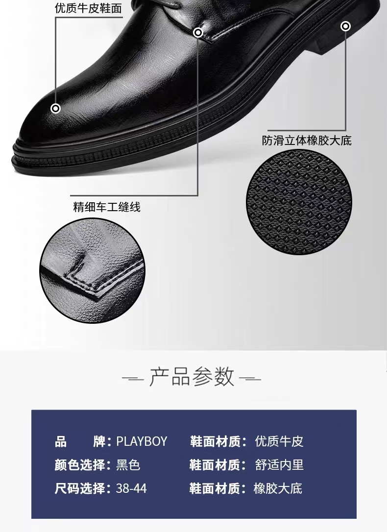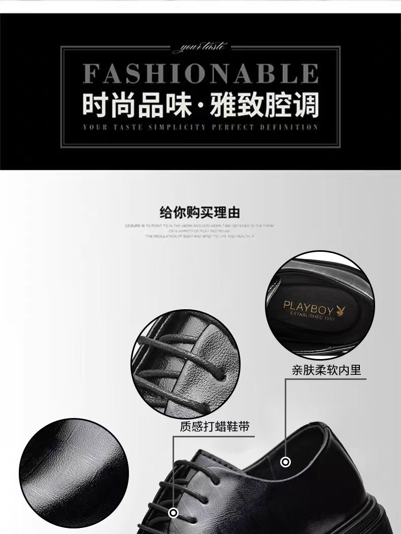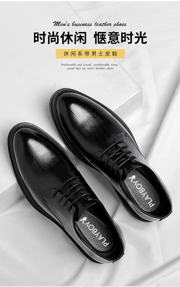Playboy Men's Shoes, Spring and Autumn British Style Business Formal Leather Shoes, New Men's Genuine Leather Height-Increasing Wedding Groom Shoes