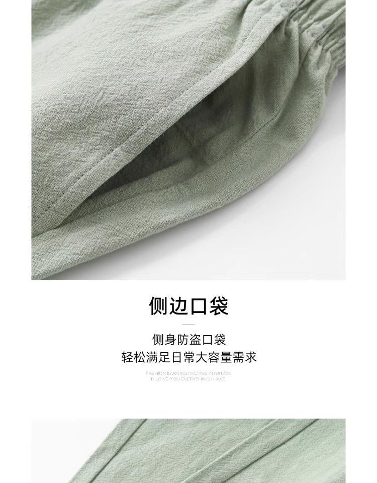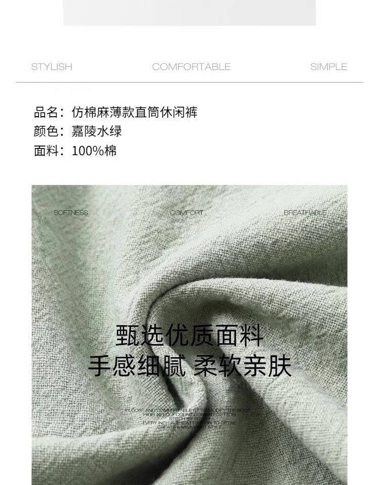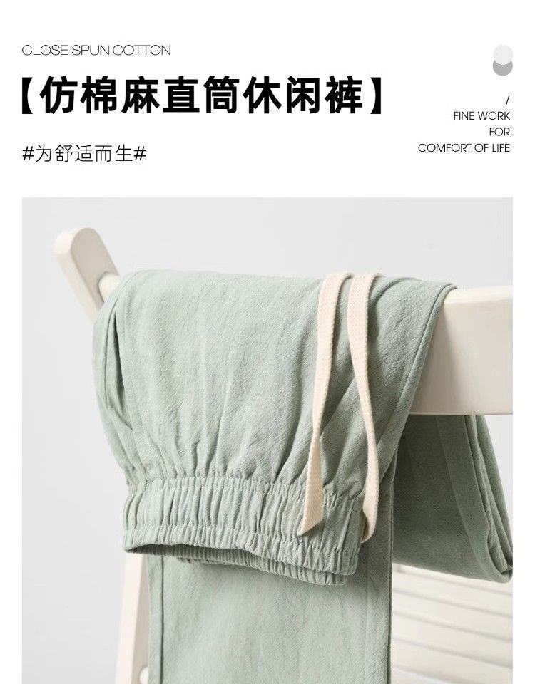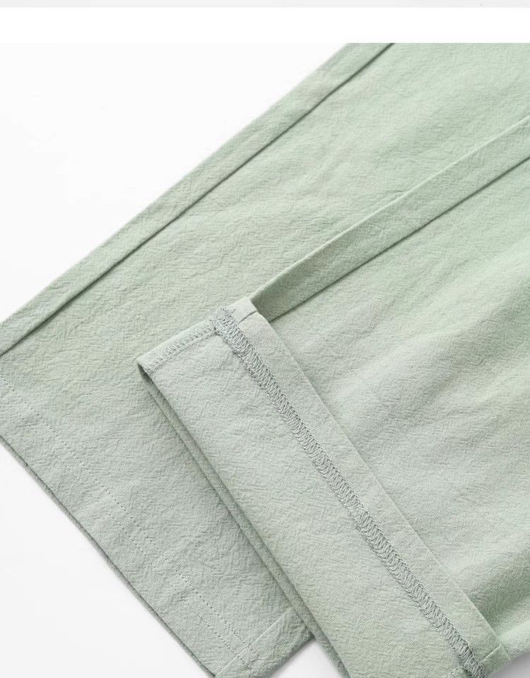Comfortable Beyond Your Imagination! Summer Mint Green Pure Cotton and Linen Sports Pants for Men and Women, Loose Casual Straight-Leg Sweatpants for Autumn
