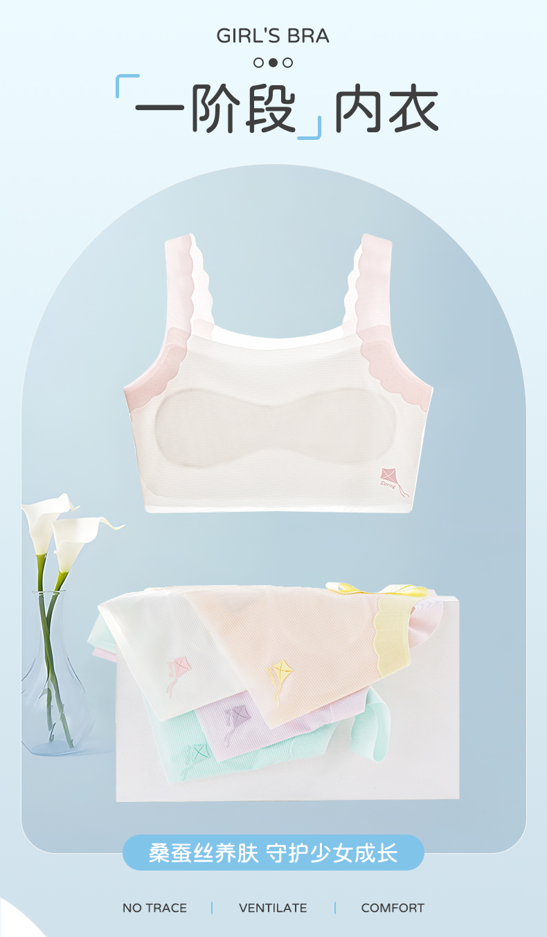 Girls' Underwear First Stage 10-Year-Old Elementary School Students' Silk Vest 9-14-Year-Old Girls' Development Period Bra