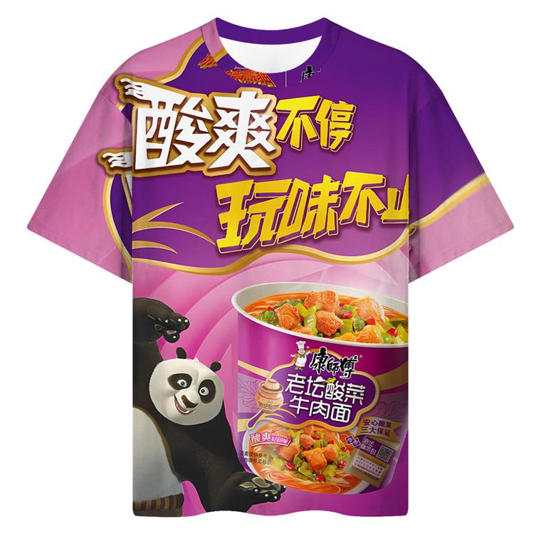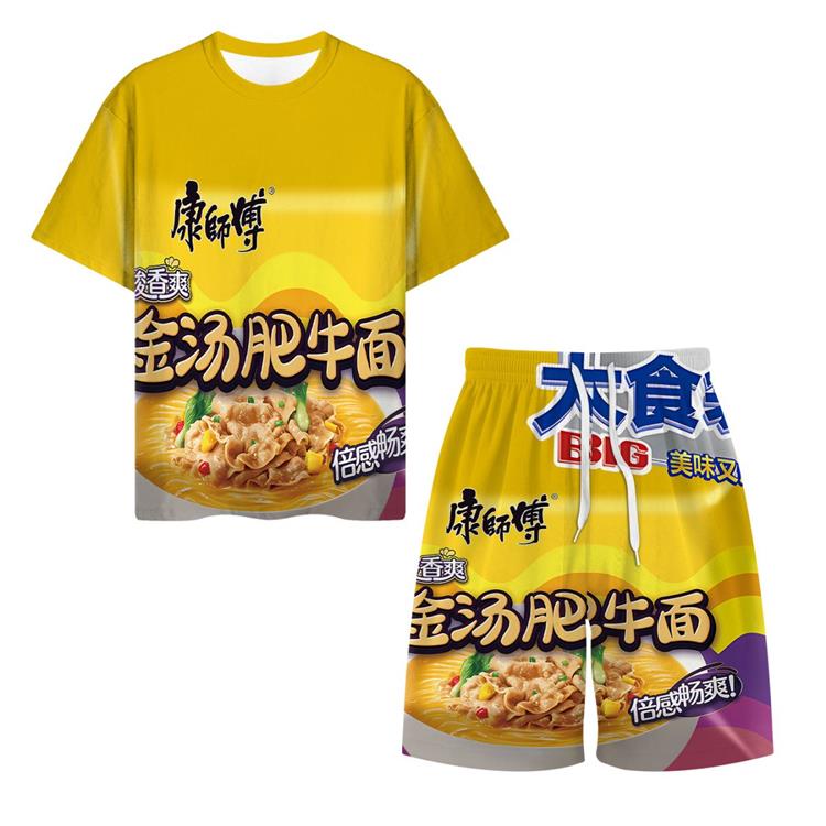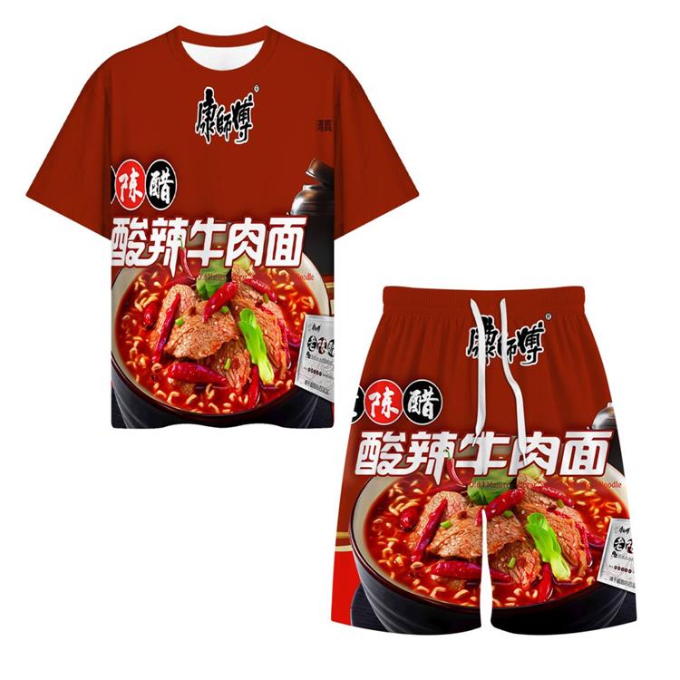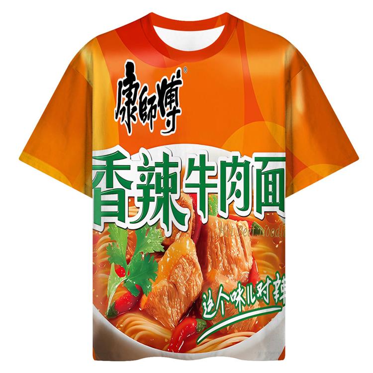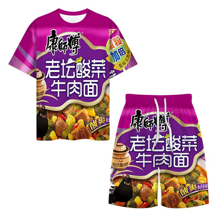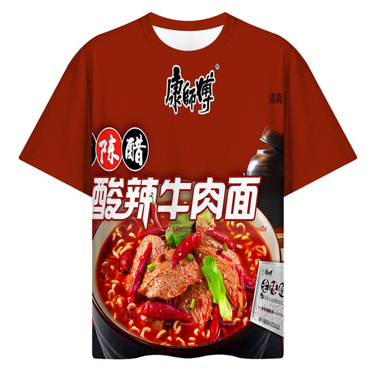 Summer Hot-Selling Product: Master Kong Instant Noodles, Loose Casual Pickled Cabbage T-Shirt, Popular Print, Niche Abstract Personality Set