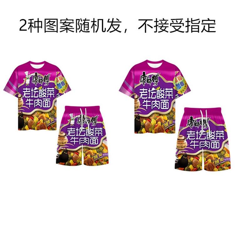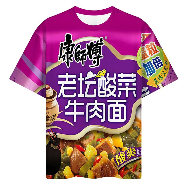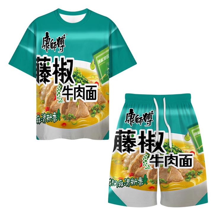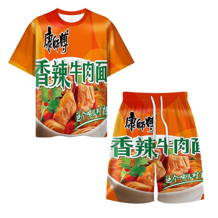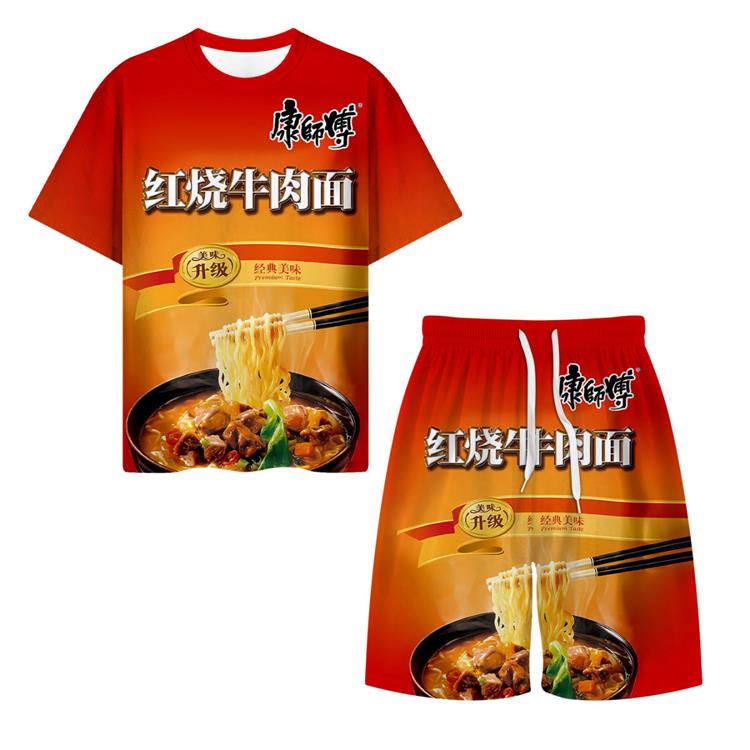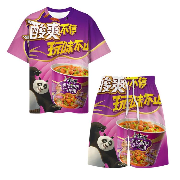 Summer Hot-Selling Product: Master Kong Instant Noodles, Loose Casual Pickled Cabbage T-Shirt, Popular Print, Niche Abstract Personality Set