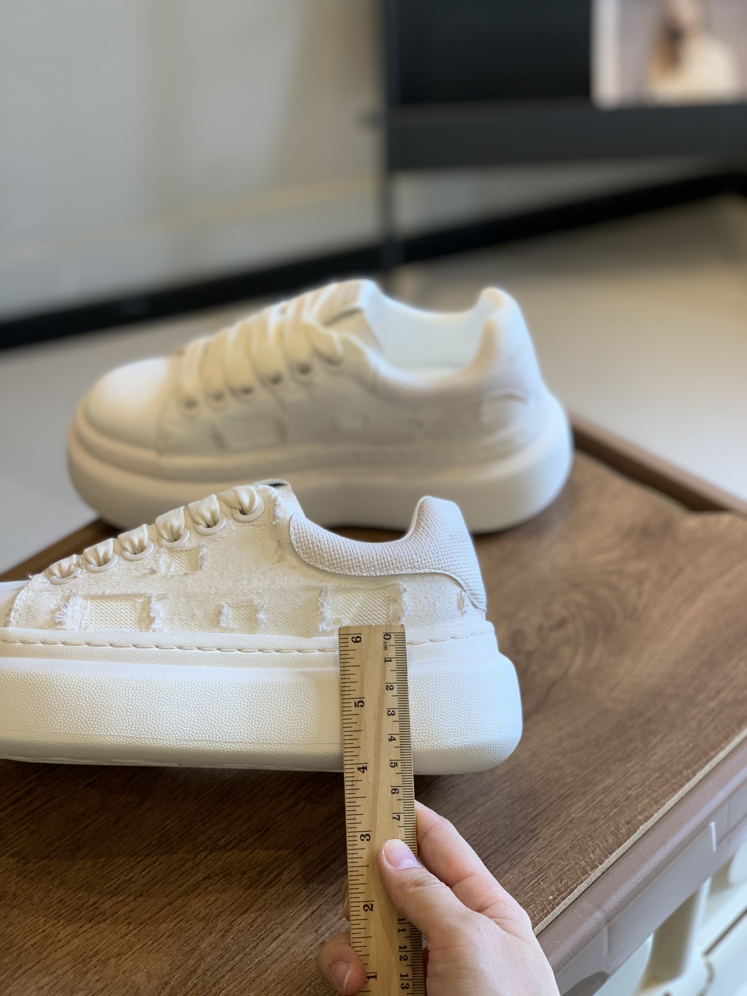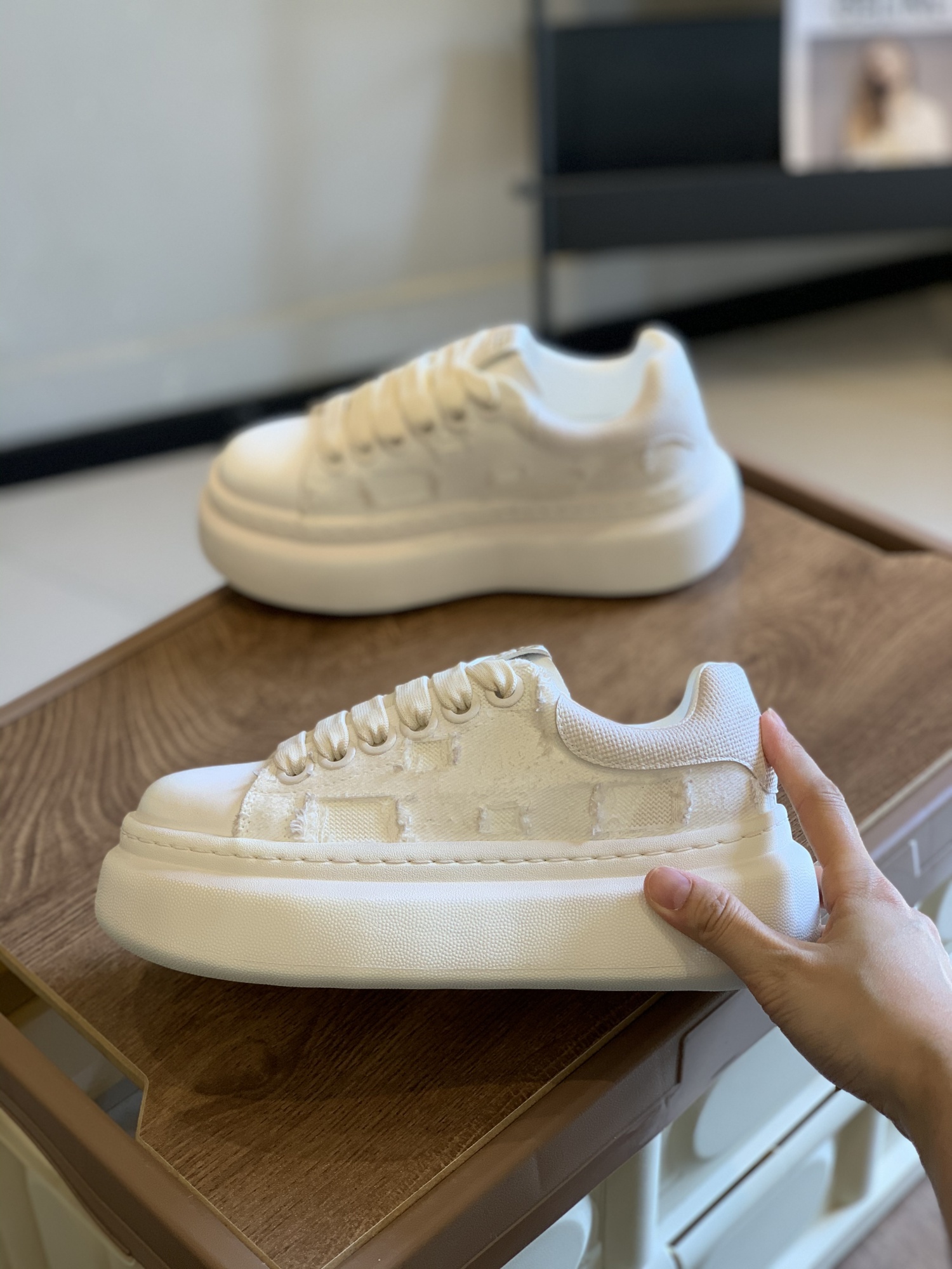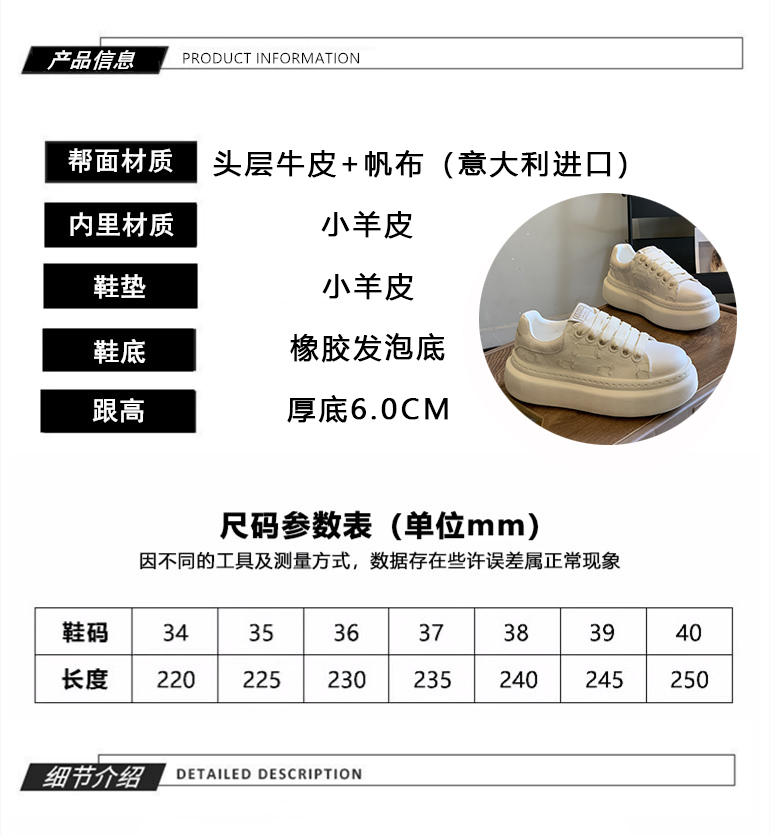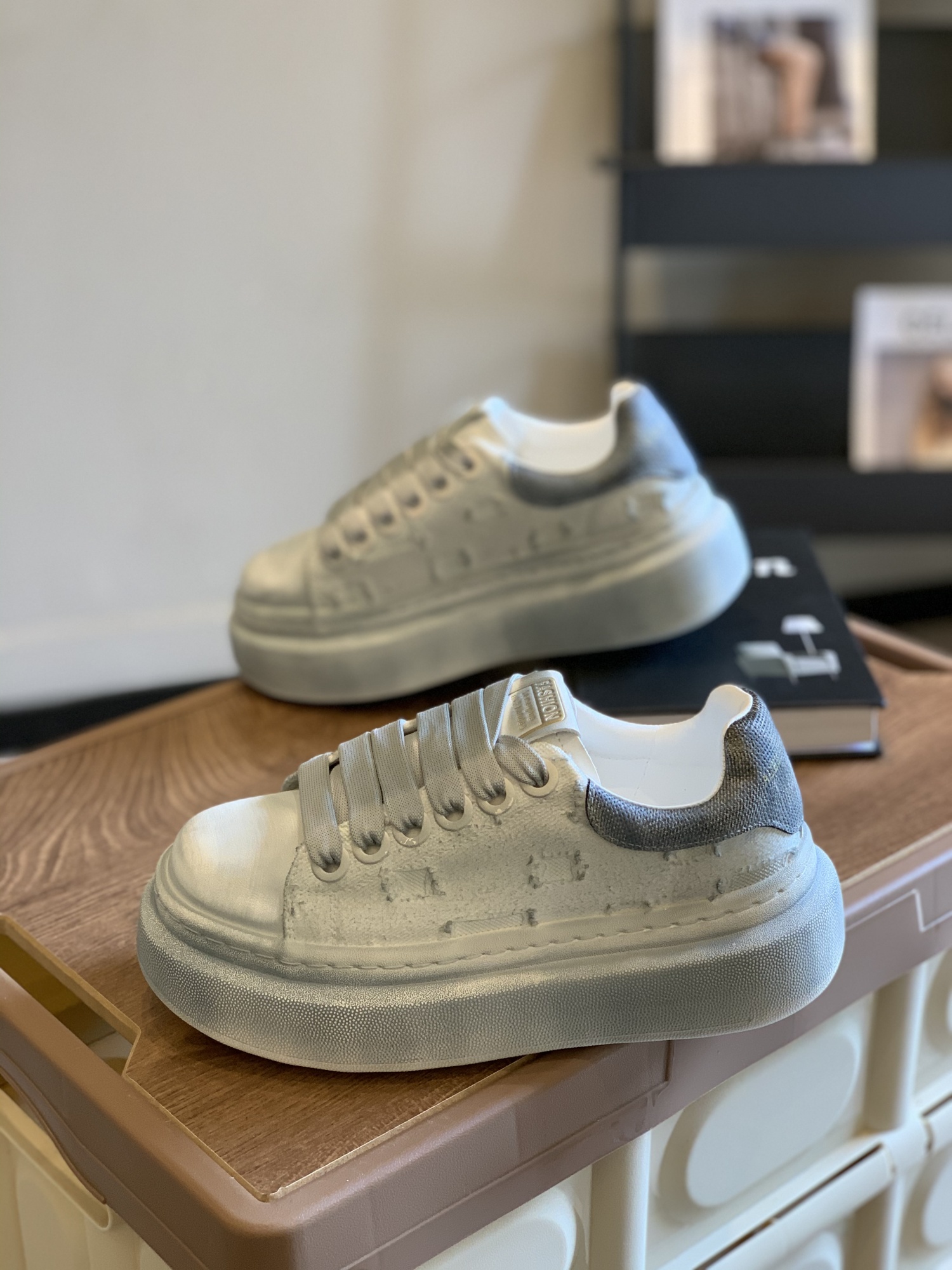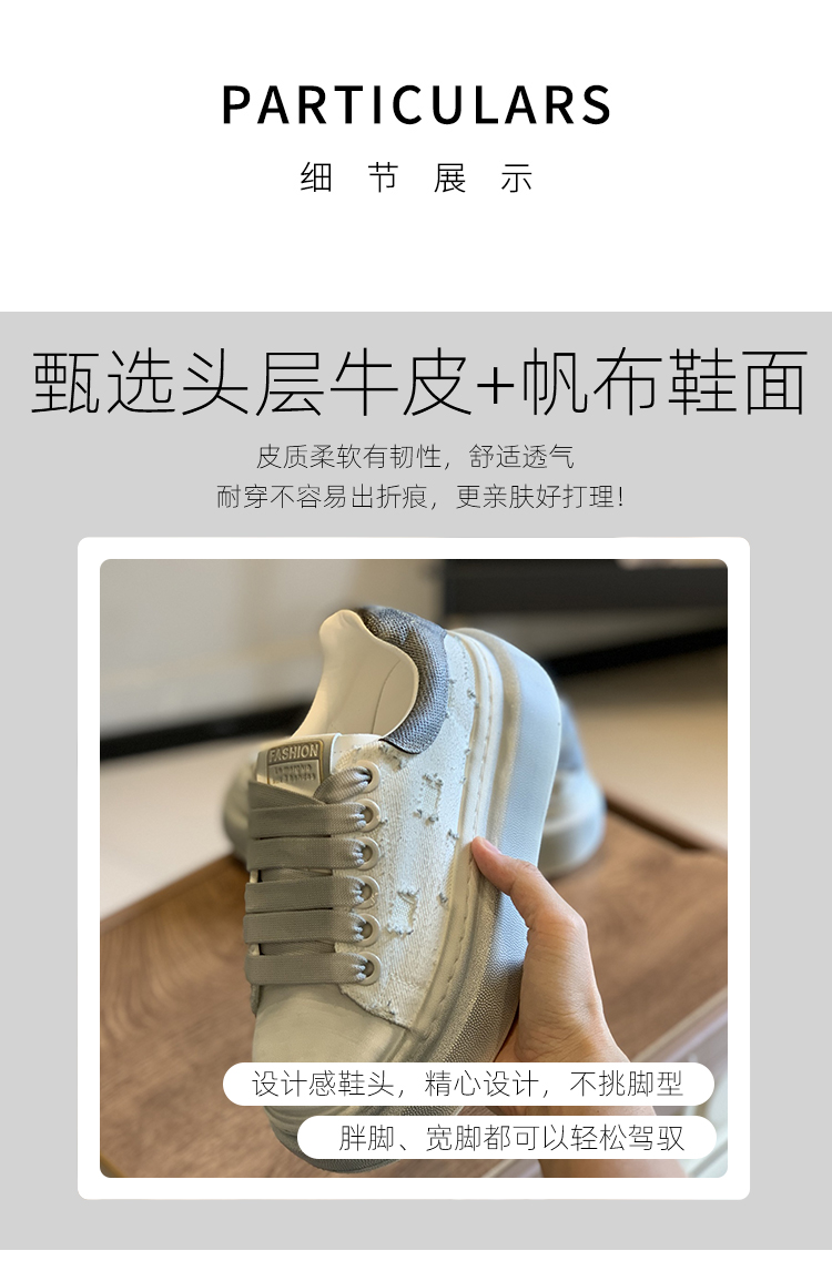 Hong Kong Genuine Leather Distressed White Sneakers for Women 2025 Spring and Autumn New Thick-Soled Height-Increasing Platform Casual Retro Sneakers