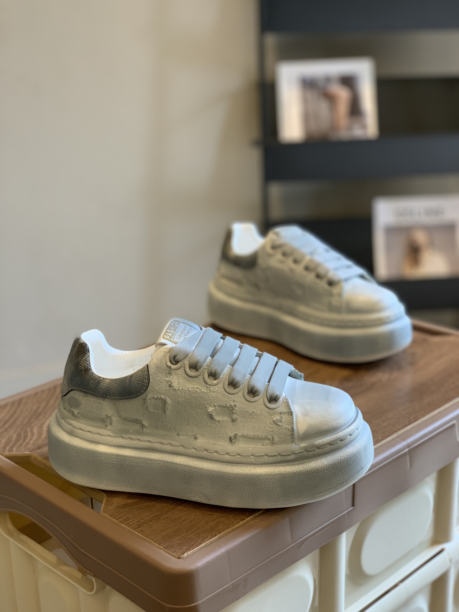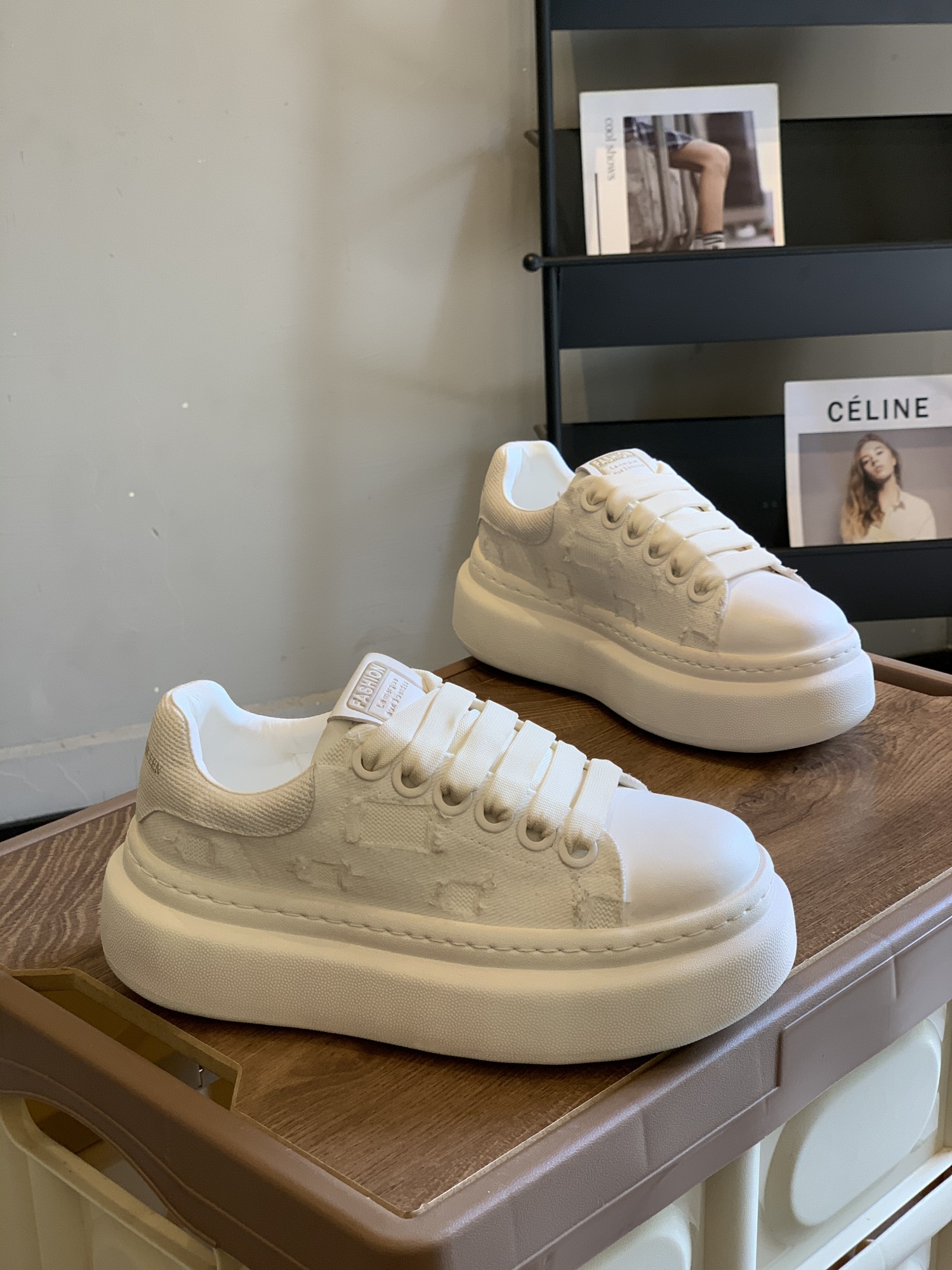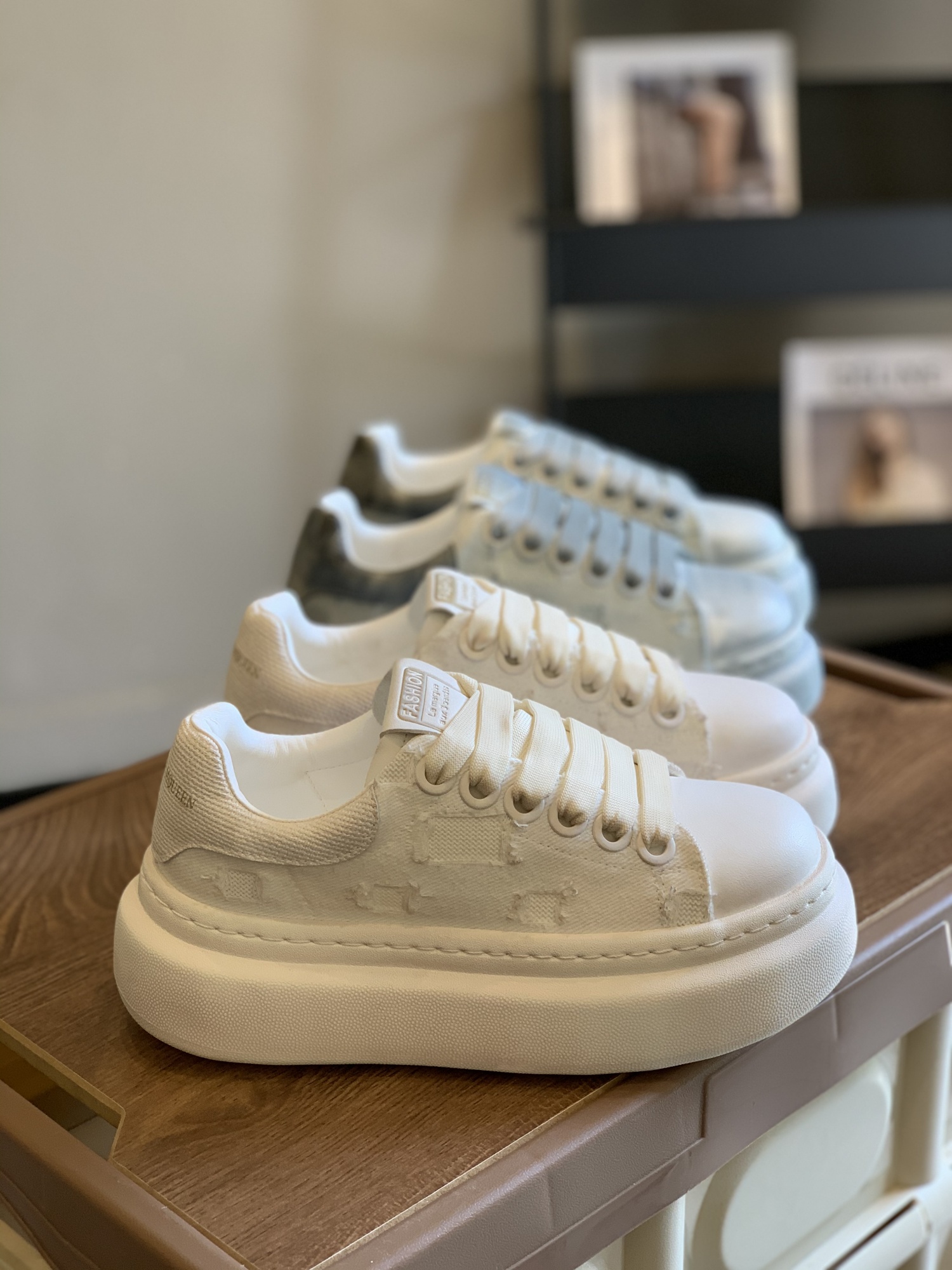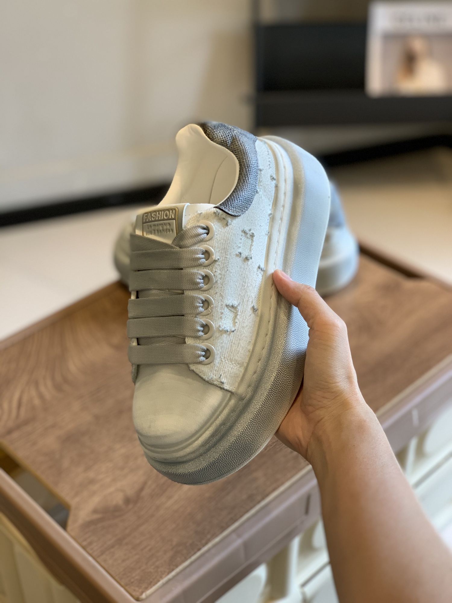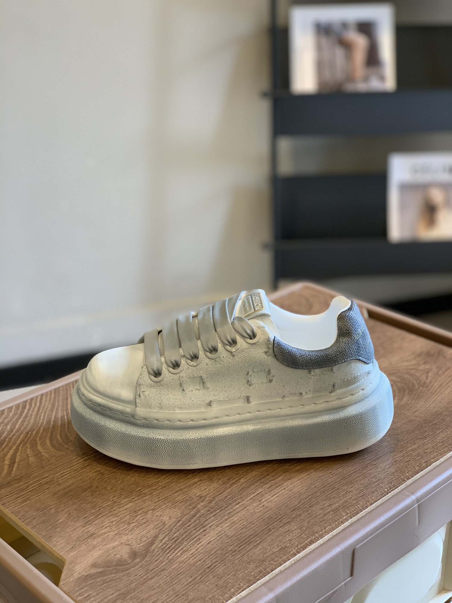 Hong Kong Genuine Leather Distressed White Sneakers for Women 2025 Spring and Autumn New Thick-Soled Height-Increasing Platform Casual Retro Sneakers