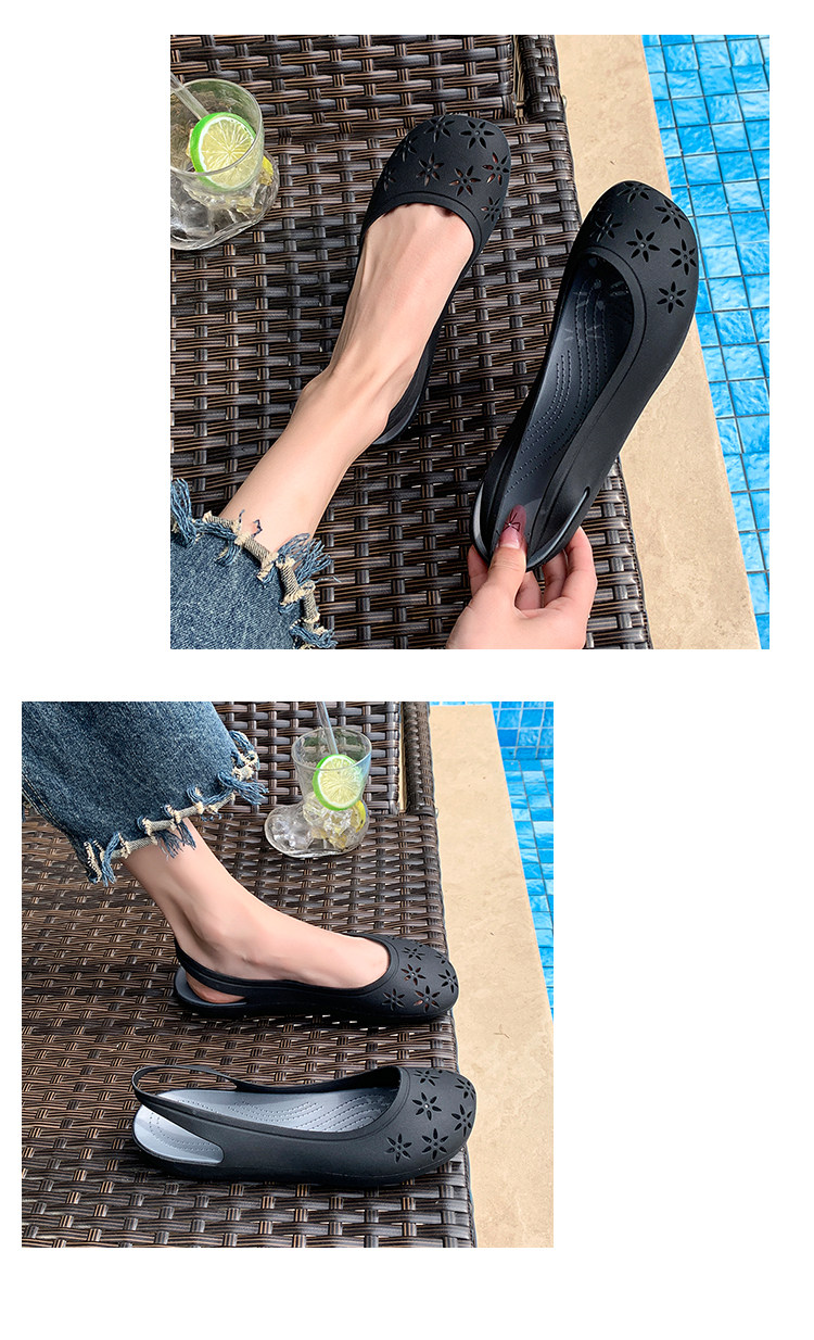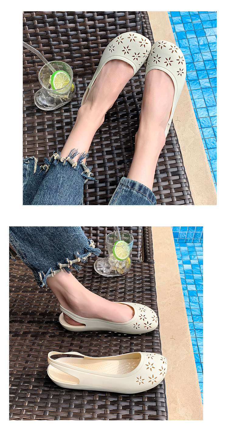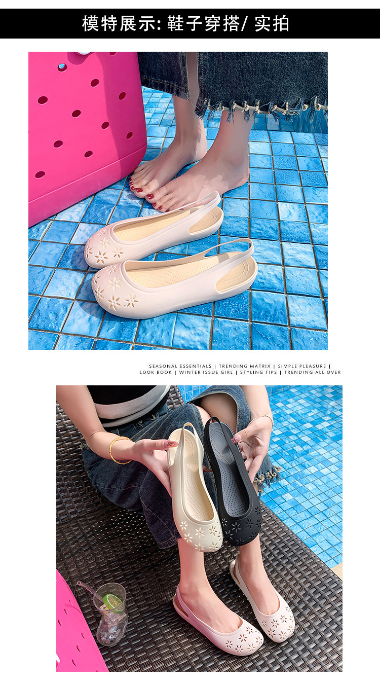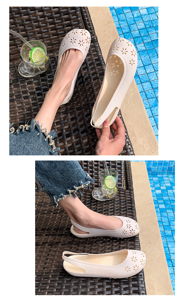 Summer Sandals for Women, Soft-Soled Waterproof Rain Shoes, Flat Closed-Toe Mom Shoes, Shallow Mouth Hole-In-The-Wall Crystal Jelly Beach Shoes