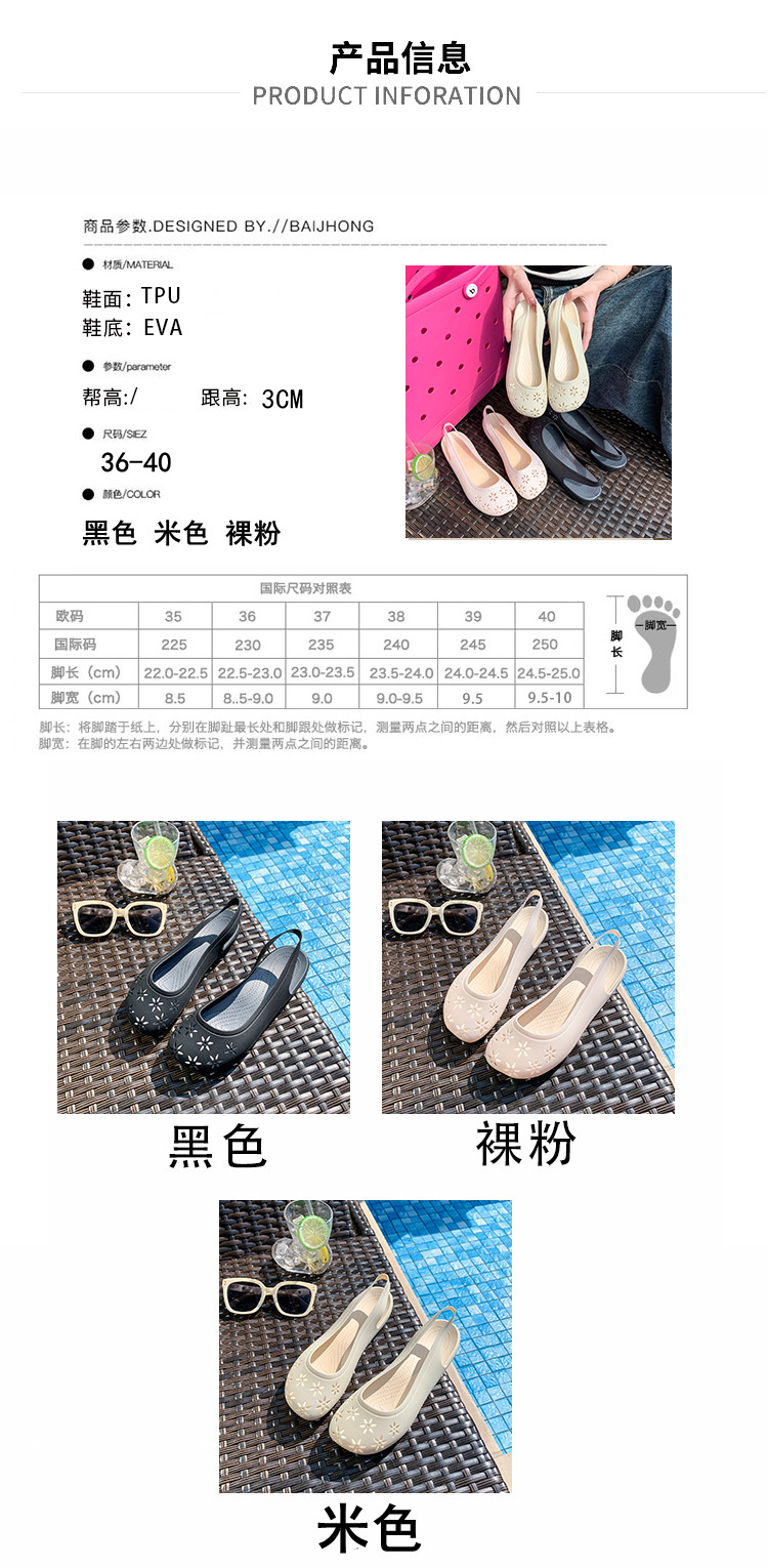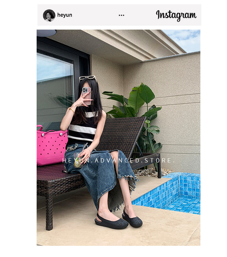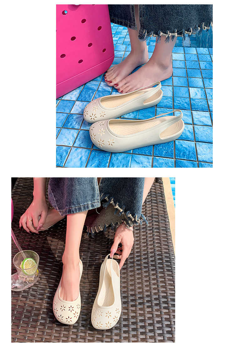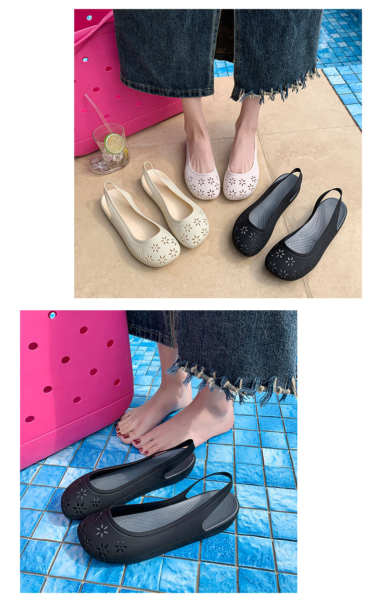 Summer Sandals for Women, Soft-Soled Waterproof Rain Shoes, Flat Closed-Toe Mom Shoes, Shallow Mouth Hole-In-The-Wall Crystal Jelly Beach Shoes