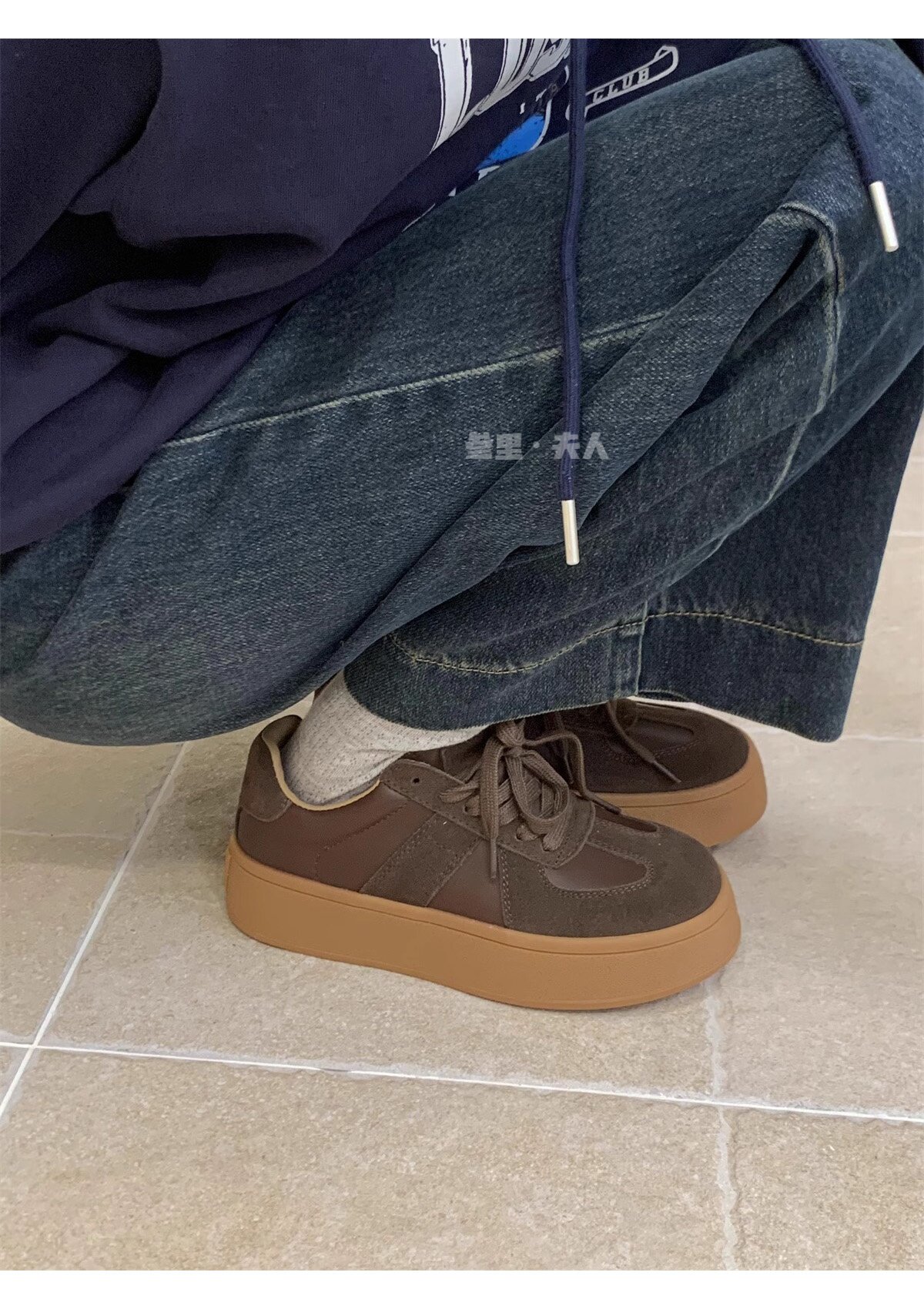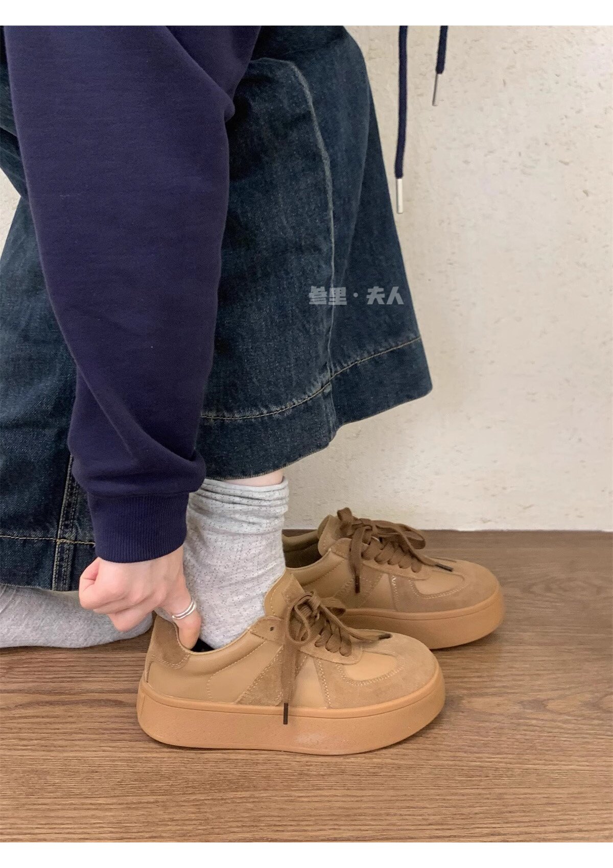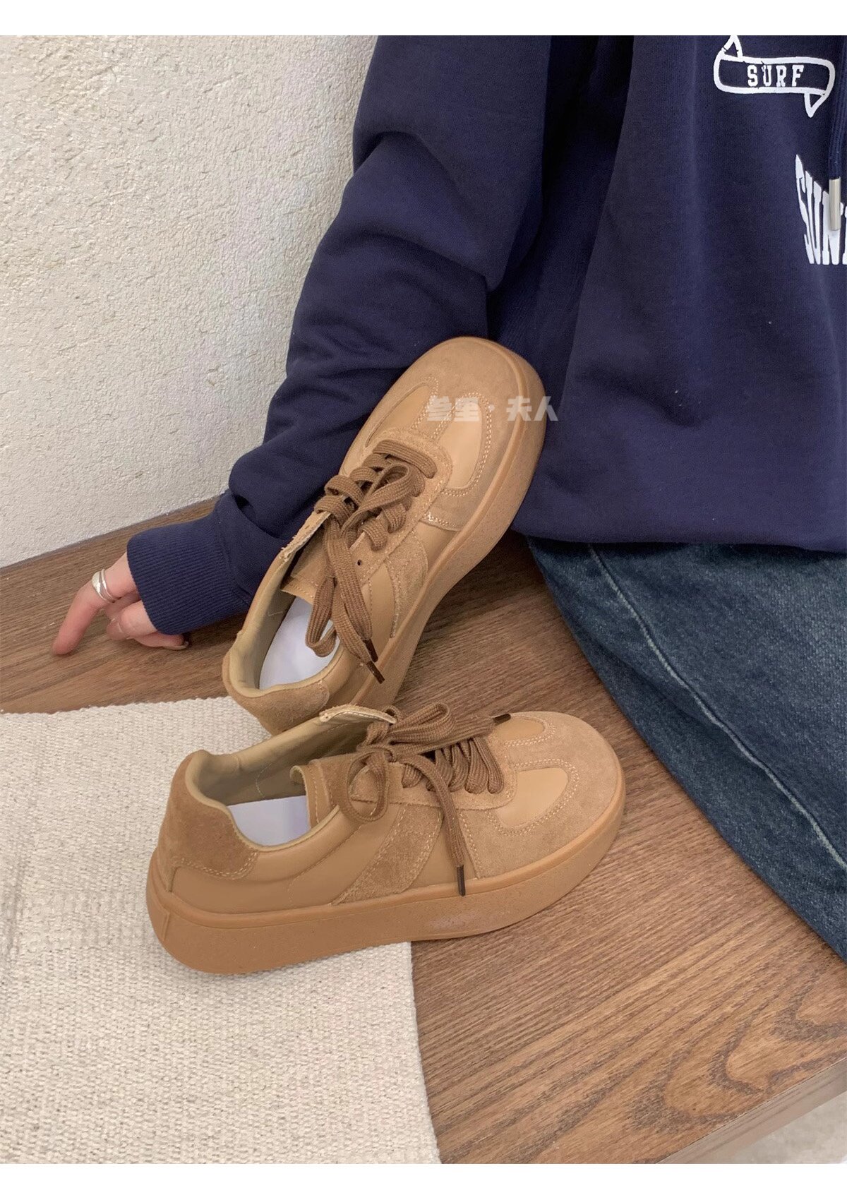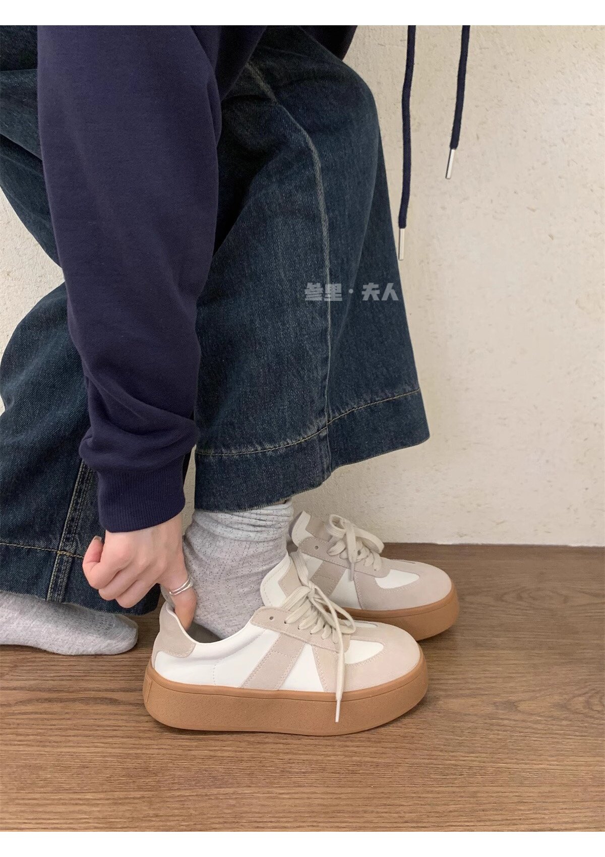 Sanli Korean Style Genuine Leather Retro Thick-Soled Sneakers for Women 2026 Spring and Autumn New Versatile Soft-Soled Sports Casual German Training Shoes