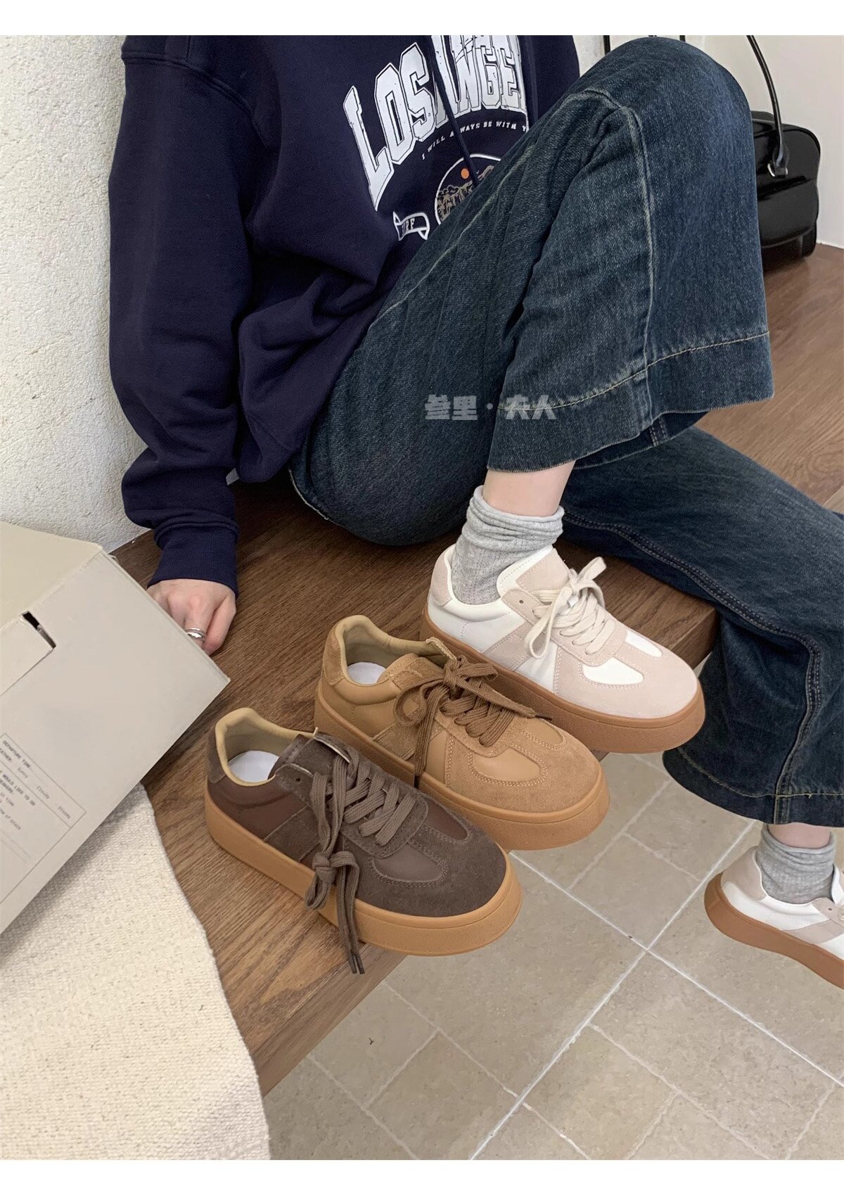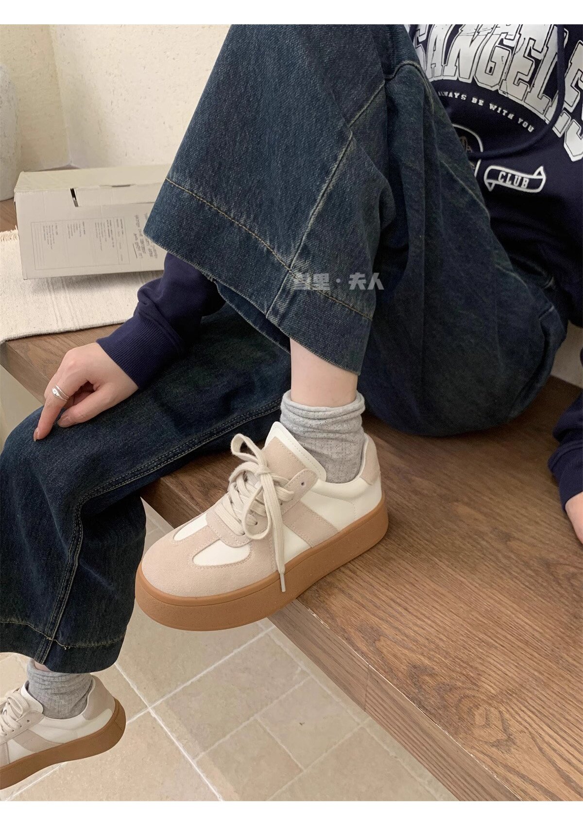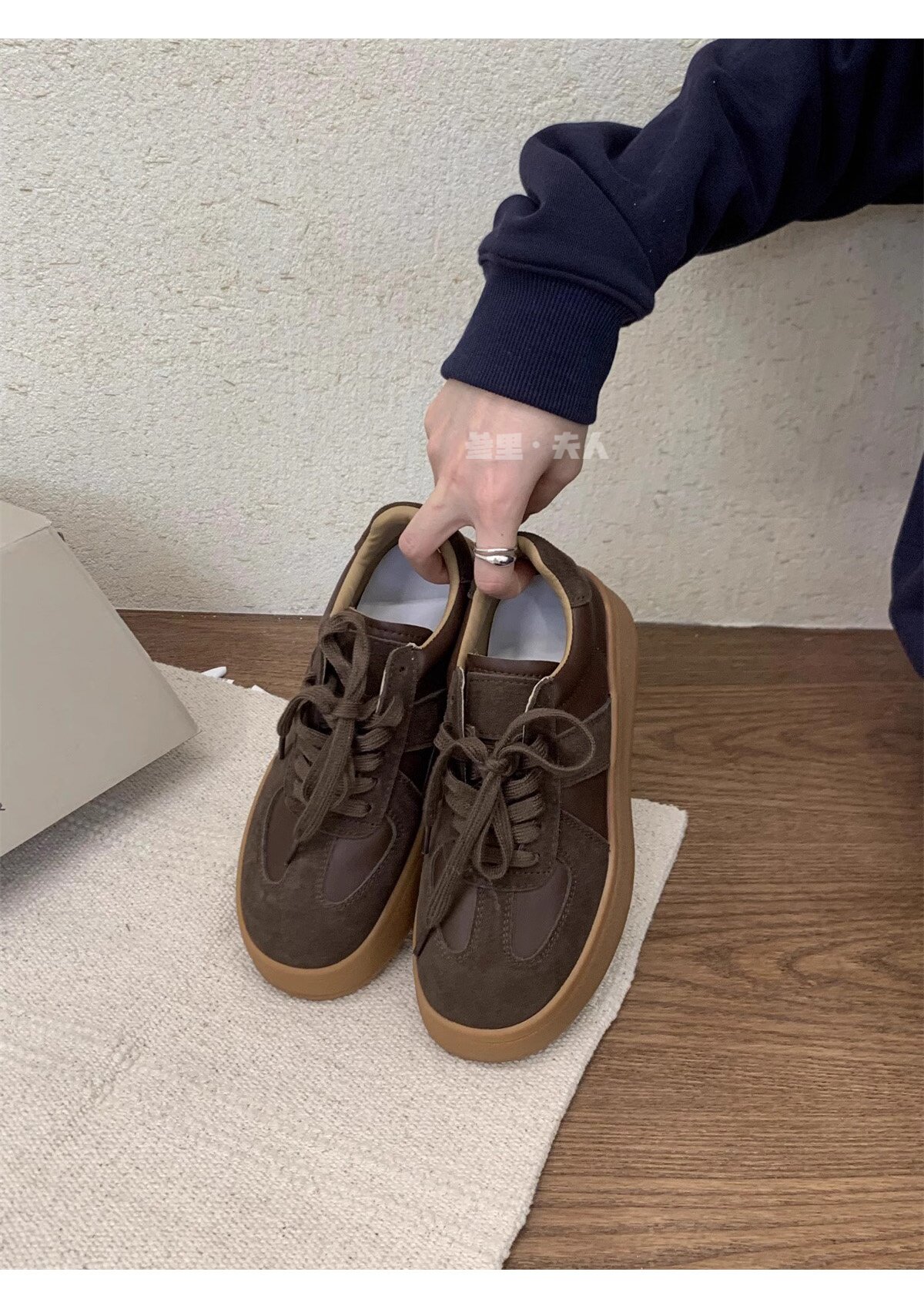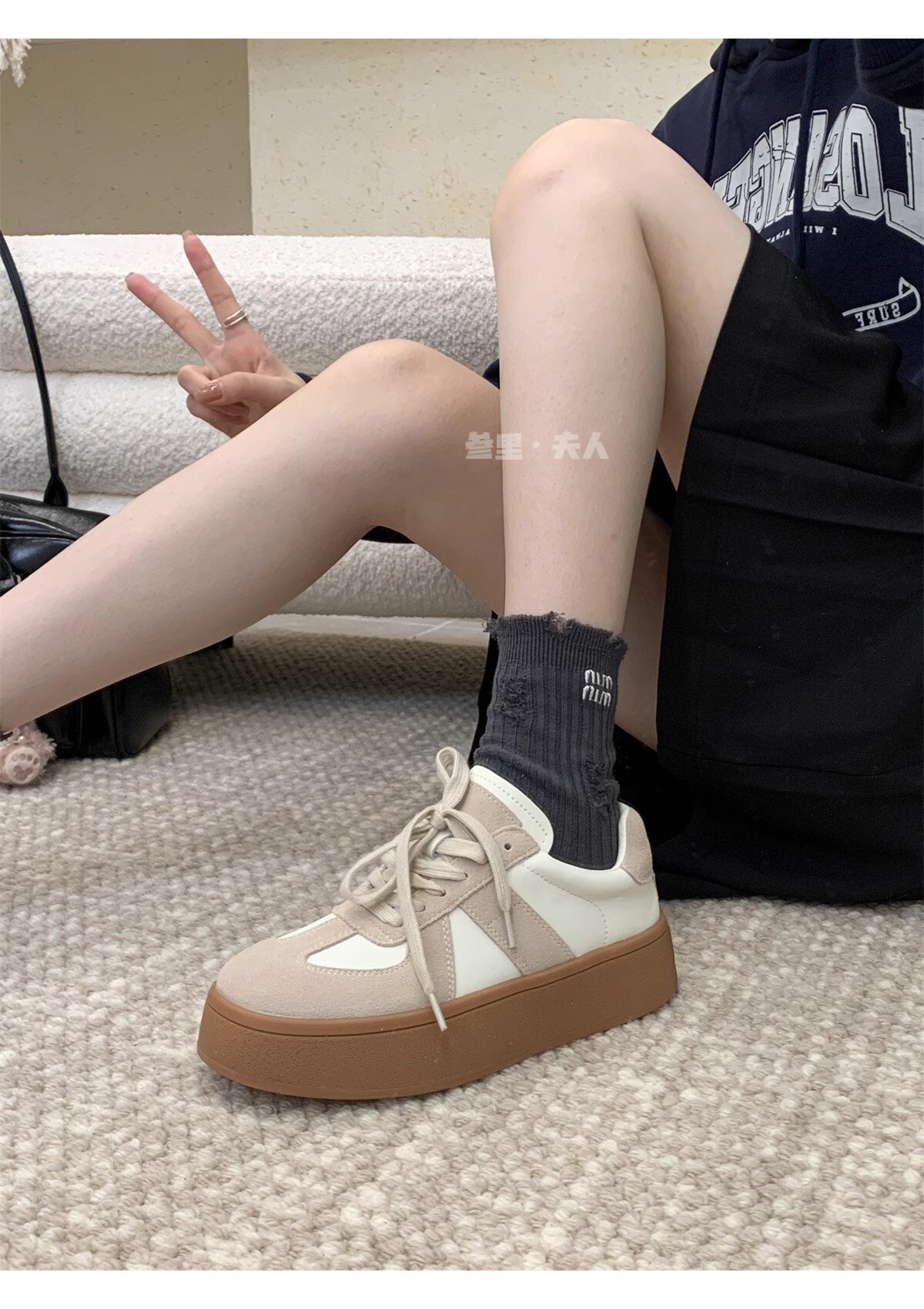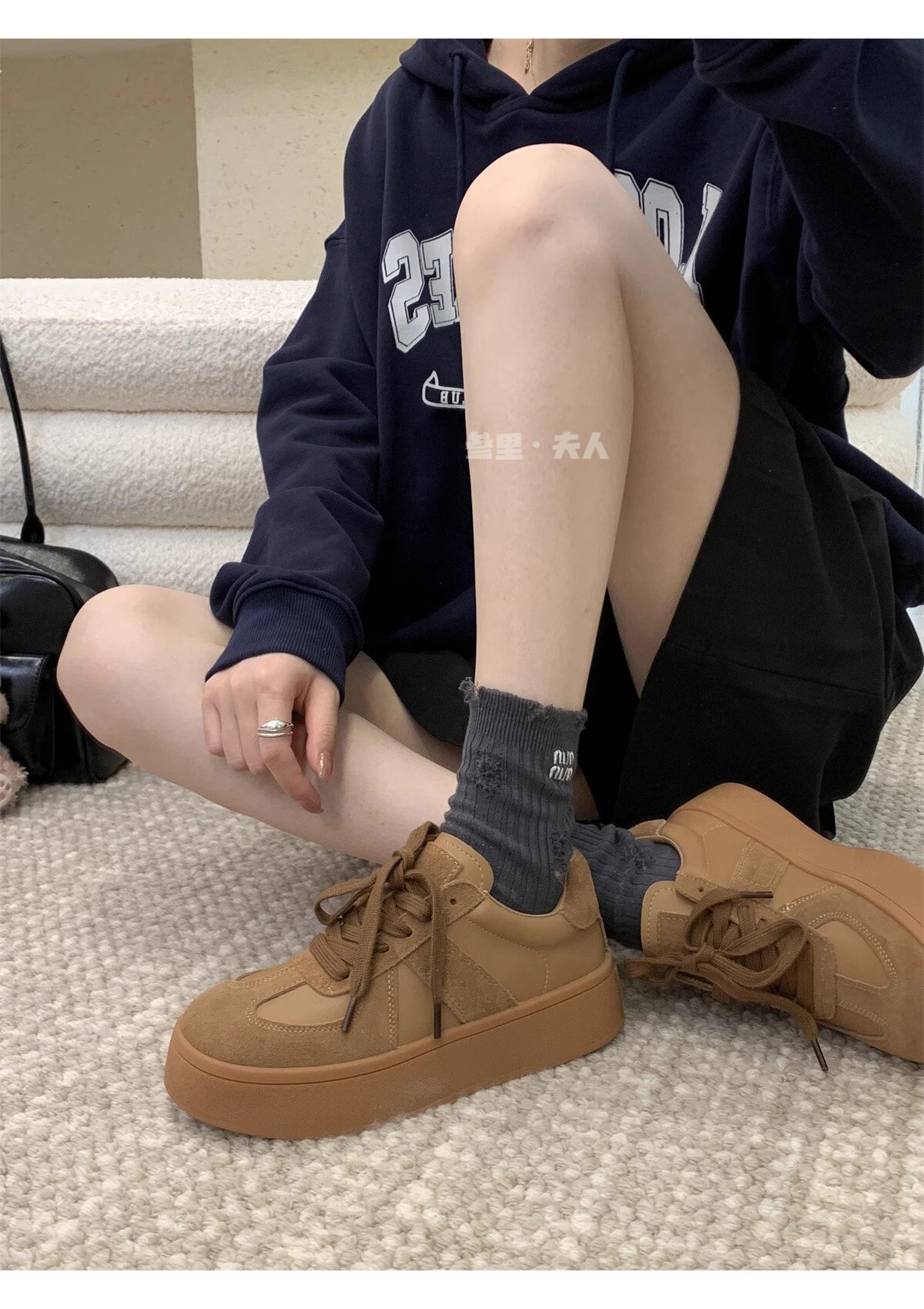 Sanli Korean Style Genuine Leather Retro Thick-Soled Sneakers for Women 2026 Spring and Autumn New Versatile Soft-Soled Sports Casual German Training Shoes