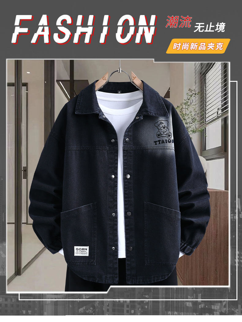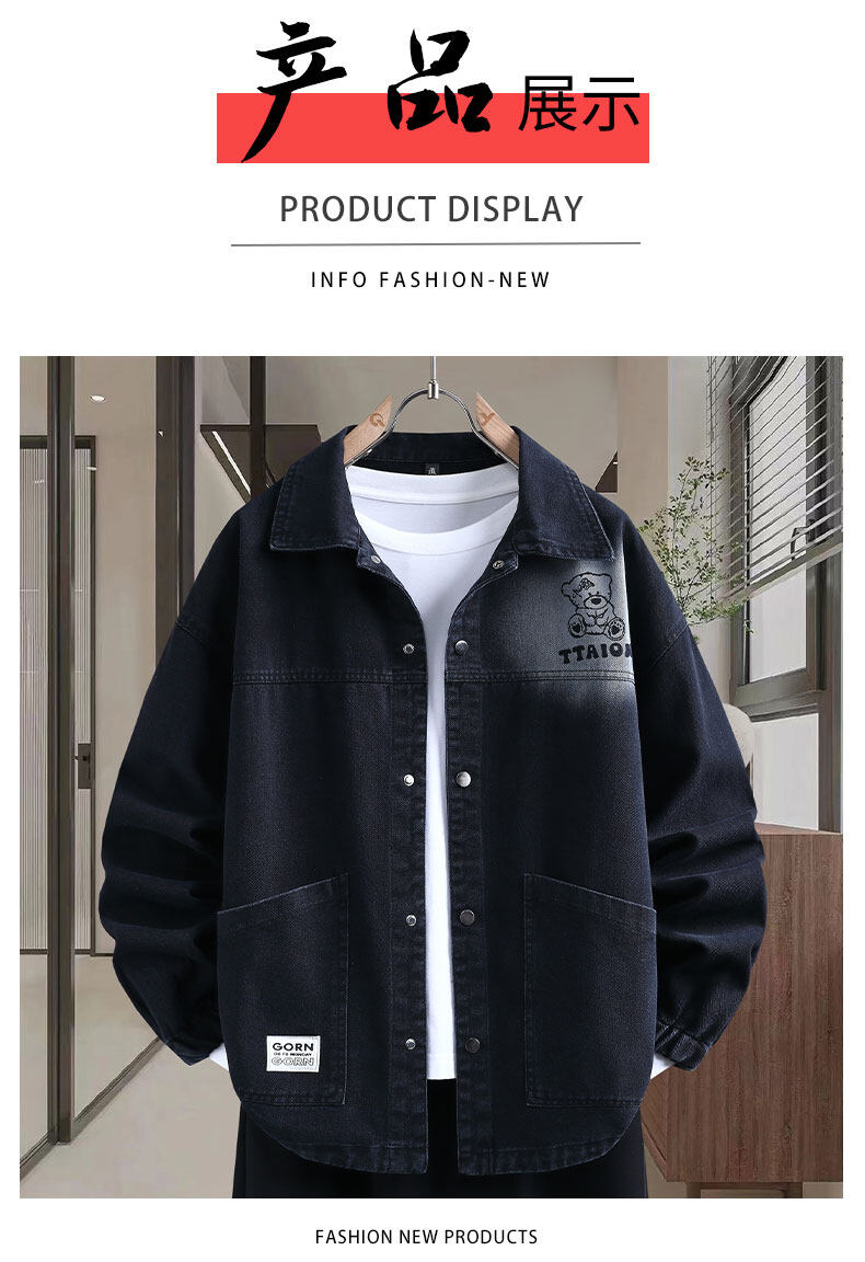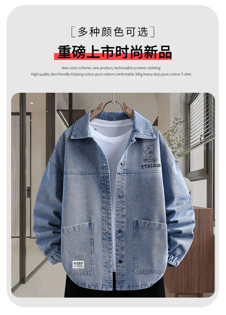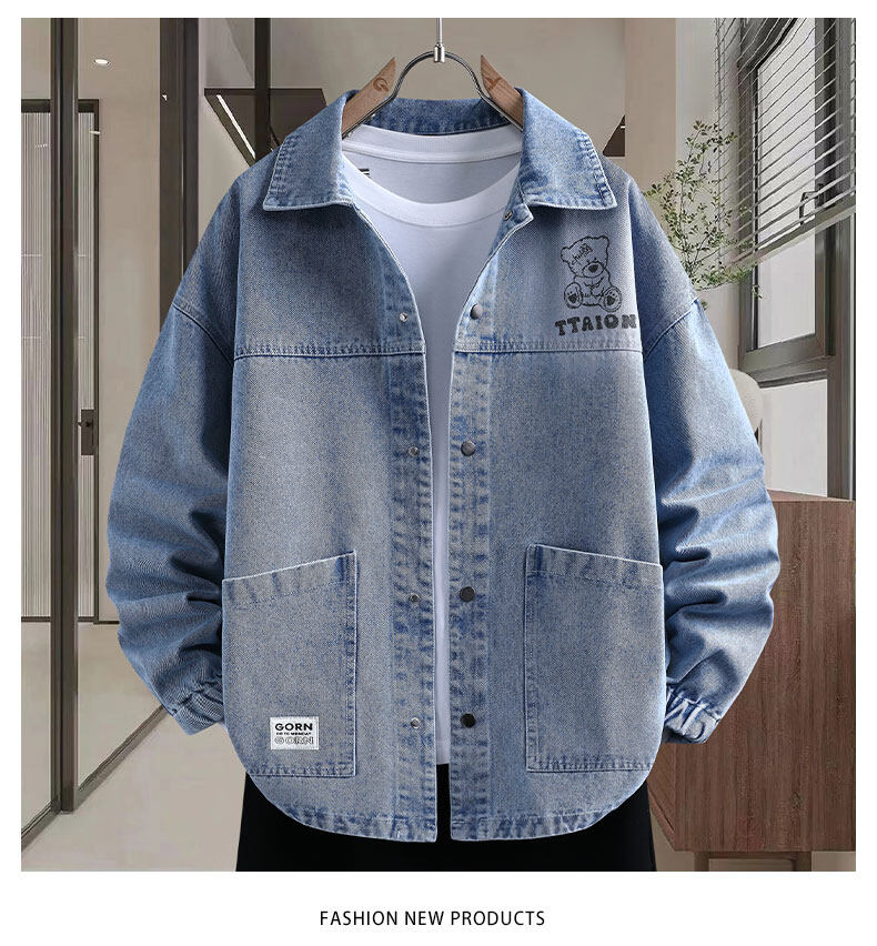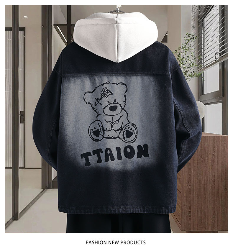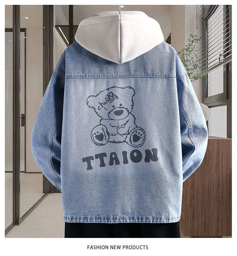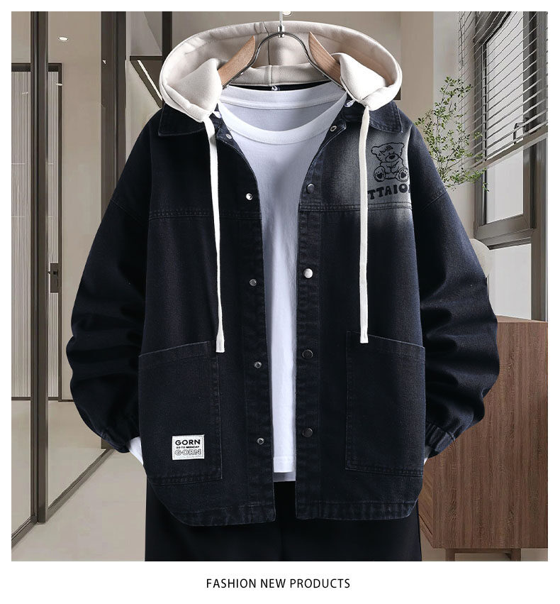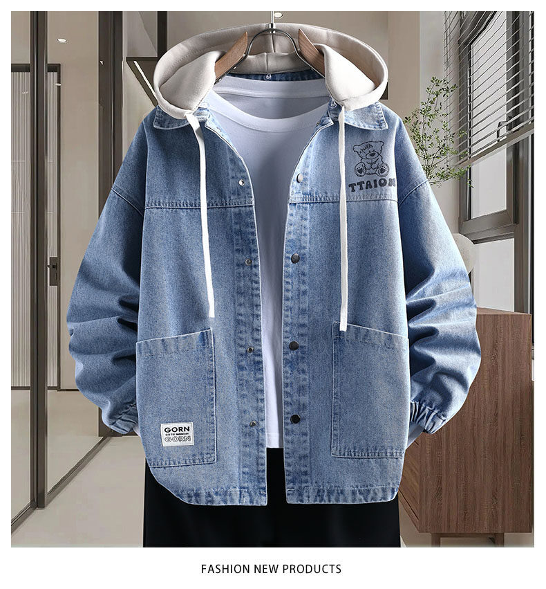 Spring and Autumn High-End Denim Clothing Men's Jacket 2025 New Style Loose Hooded Casual Jacket for Middle and High School Students