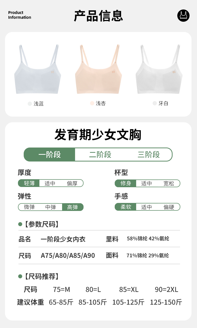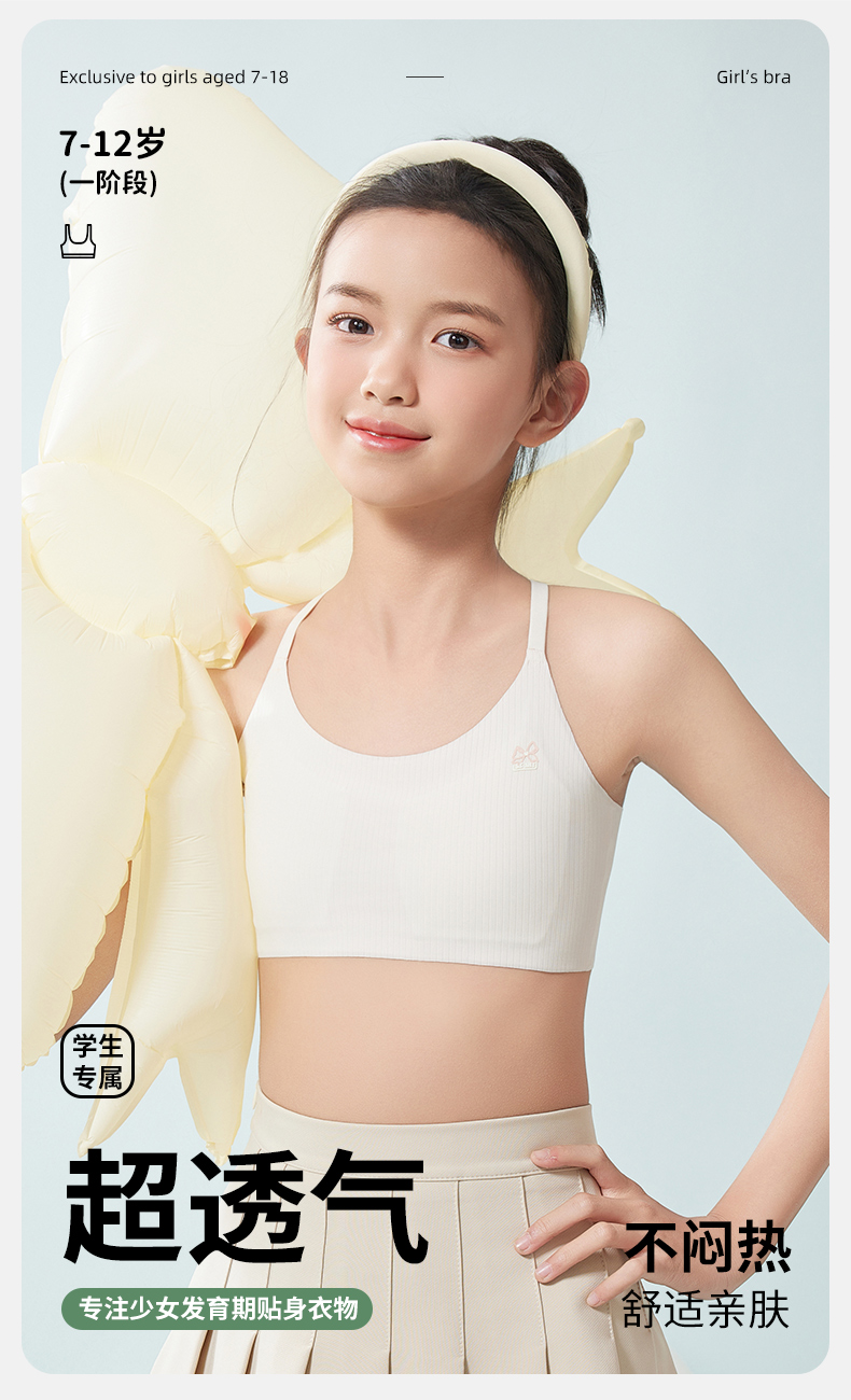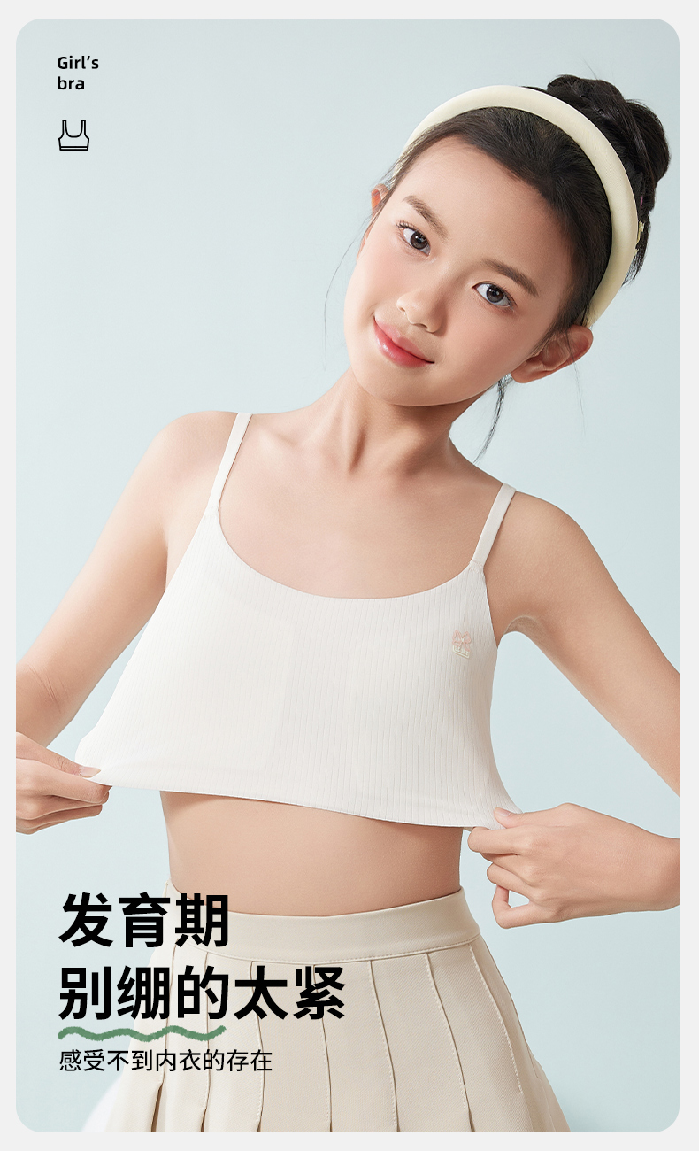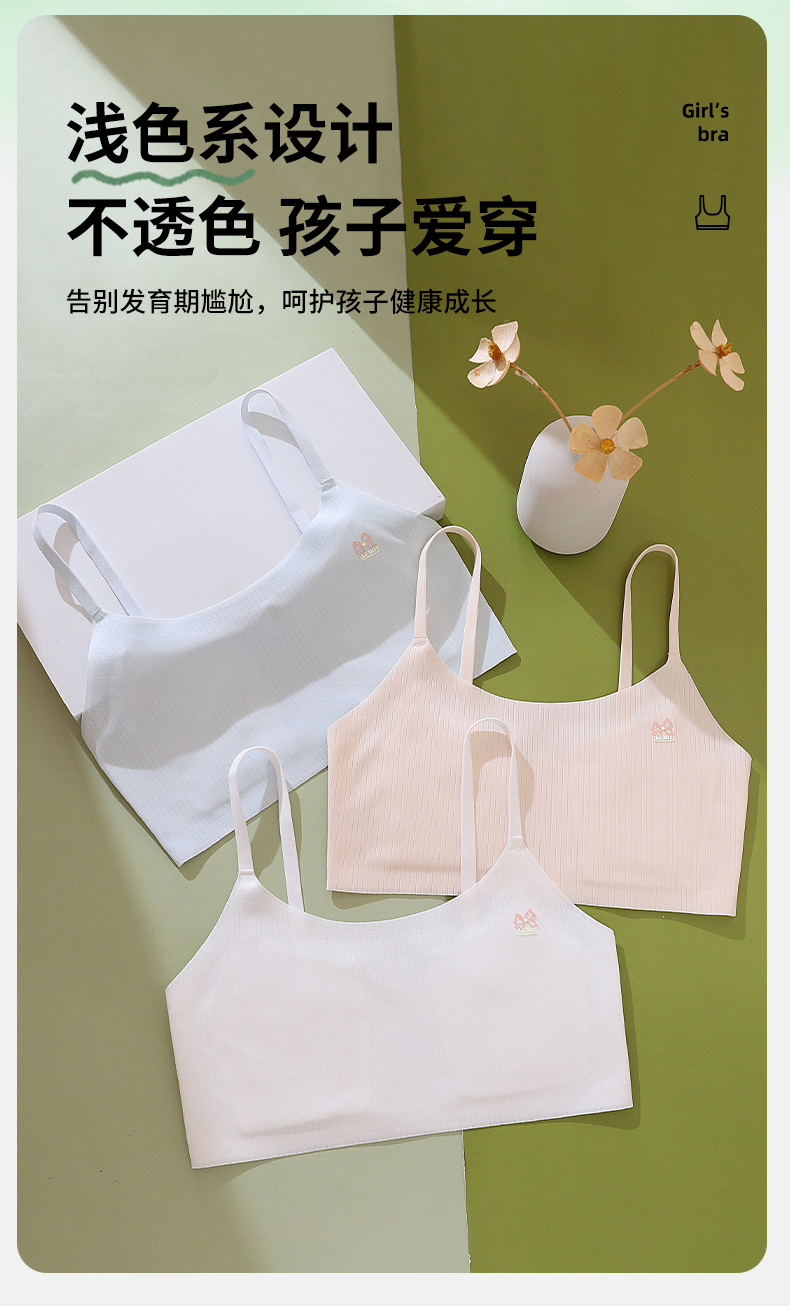 Cat Girl Underwear for Puberty Development Period, Junior High School Student Girls' Small Vest, Seamless Anti-Bump First Stage Bra