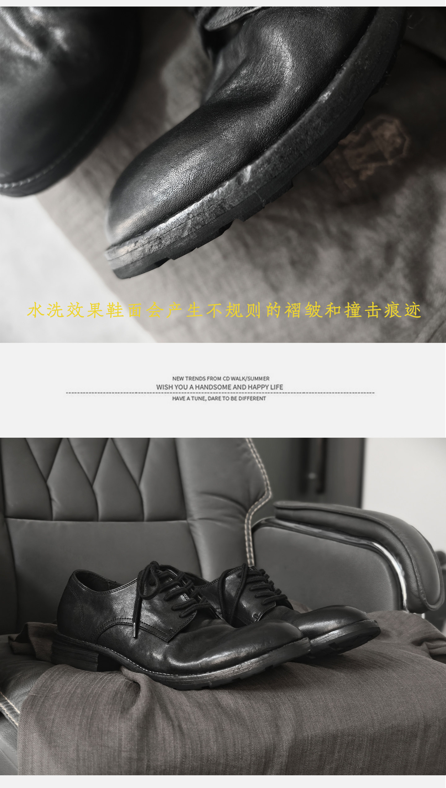 Japanese-Style Washed Leather Shoes for Men, Yamamoto Dark Style Niche Wrinkled Men's Shoes, Handmade Distressed Genuine Leather Low-Top Shoes