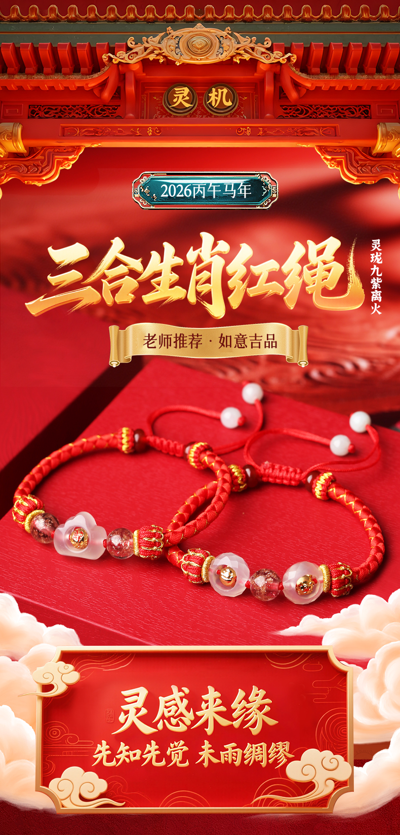 Lingji Mai Lingling 2026 Lucky Three Harmonies Zodiac Red String Bracelet for the Year of the Horse, Zodiac Year Bracelet for Ox, Rabbit, Rat, Tai Sui Bracelet