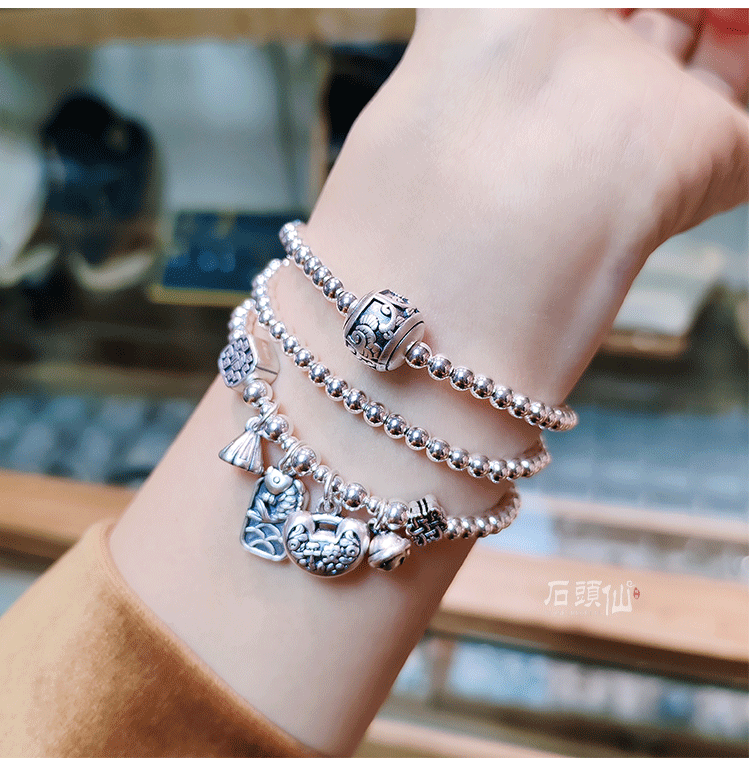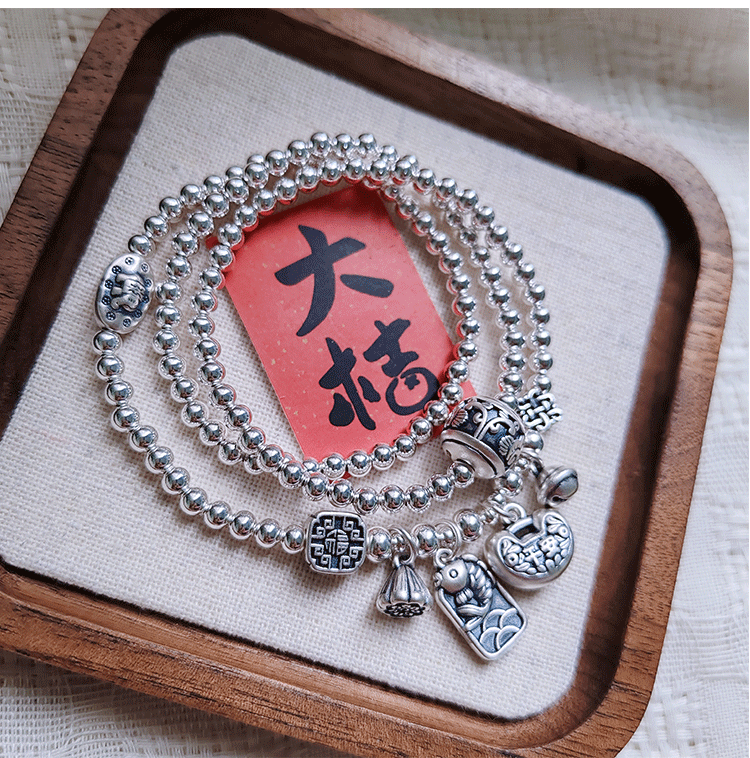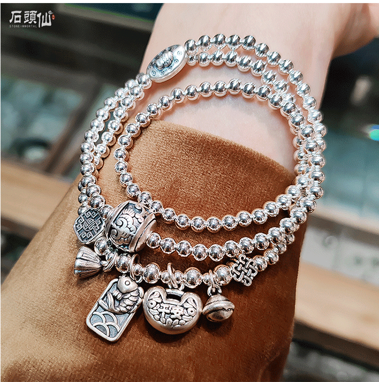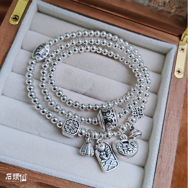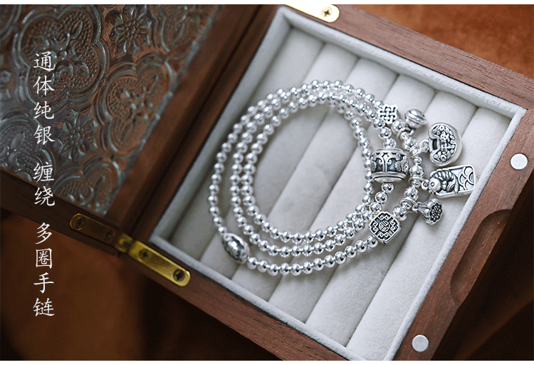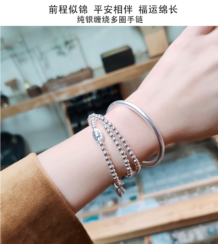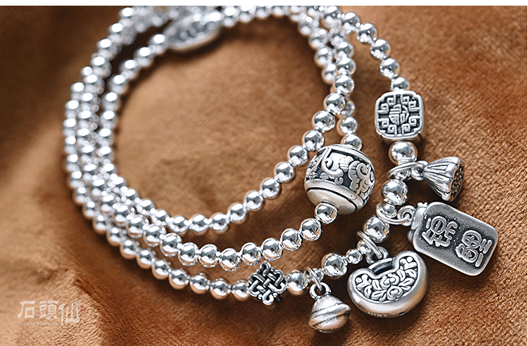 Stone Fairy Genuine 999 Pure Silver Multi-Layer Silver Bracelet for Women, Ruyi Niche Design, Ancient Style Bell Winding Silver Bracelet