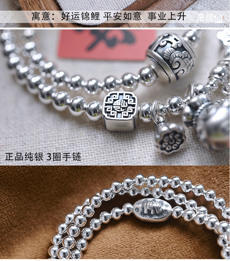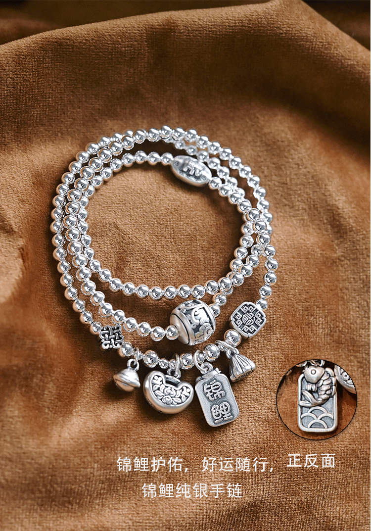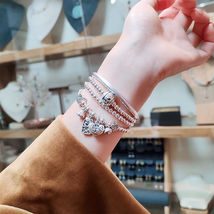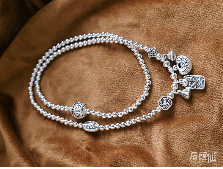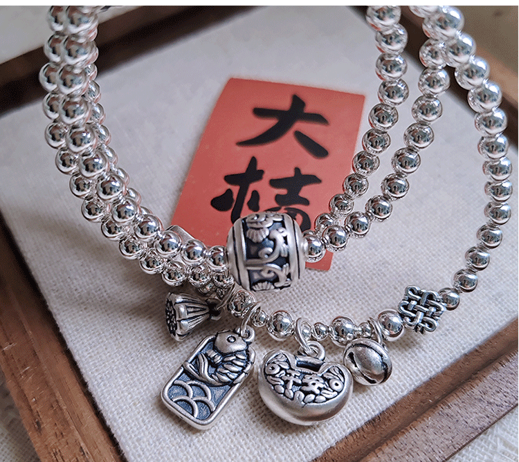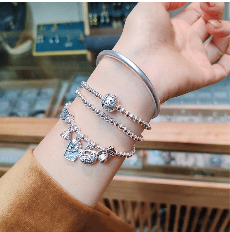 Stone Fairy Genuine 999 Pure Silver Multi-Layer Silver Bracelet for Women, Ruyi Niche Design, Ancient Style Bell Winding Silver Bracelet