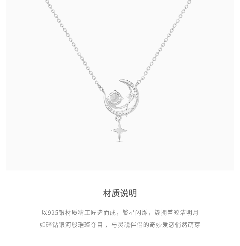 Lao Fengxiang Romantic Star and Moon Tassel 925 Silver Necklace, a Niche Gift for Girlfriend or Best Friend