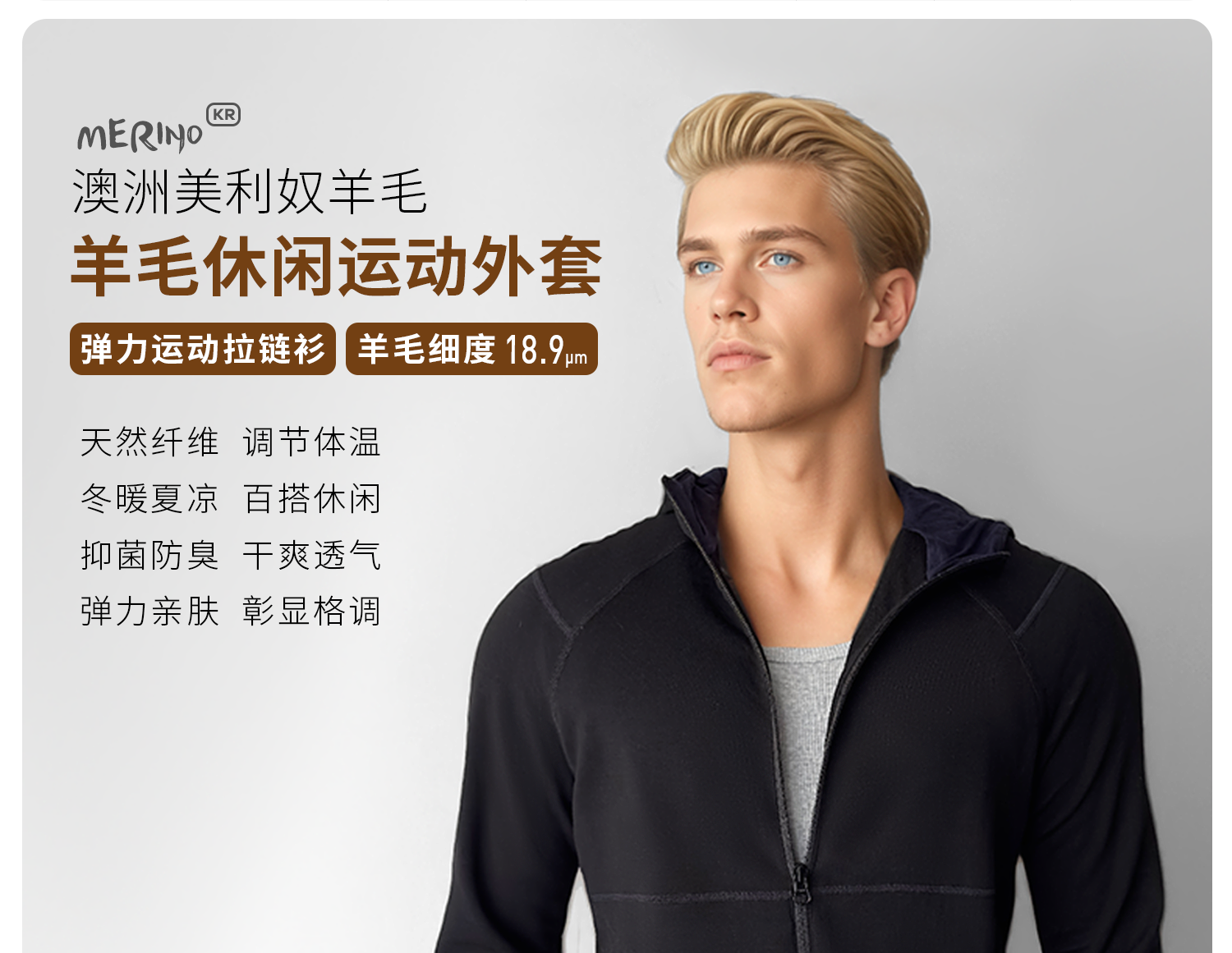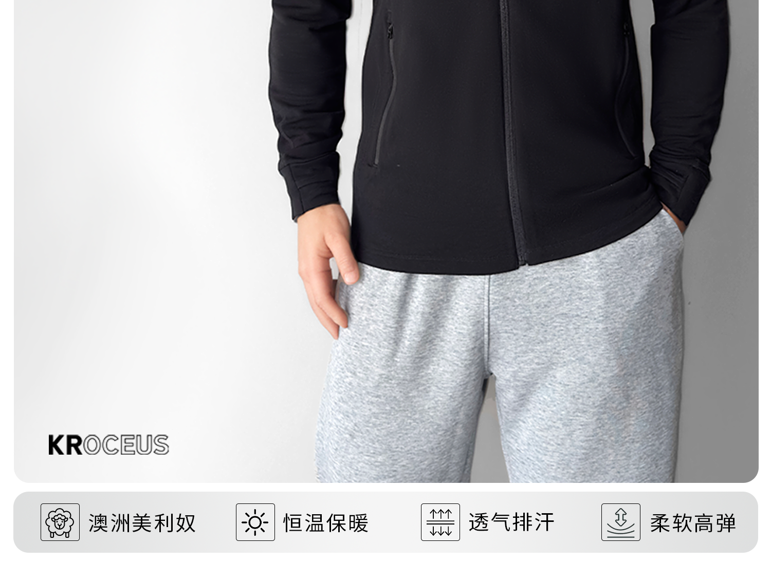 KROCEUS geoscientists Men merino wool hooded sports Outwear sweat-absorbent Deodorizing Filter running Cardigan