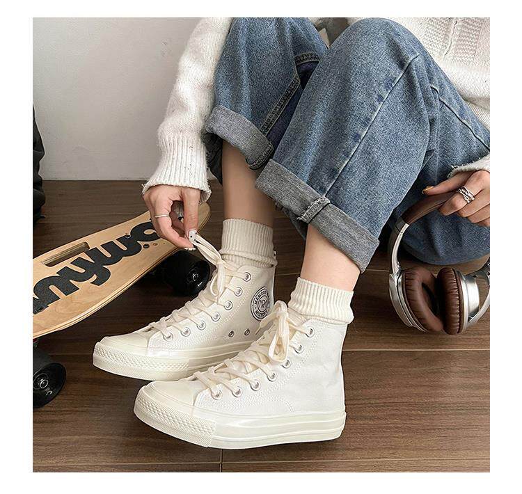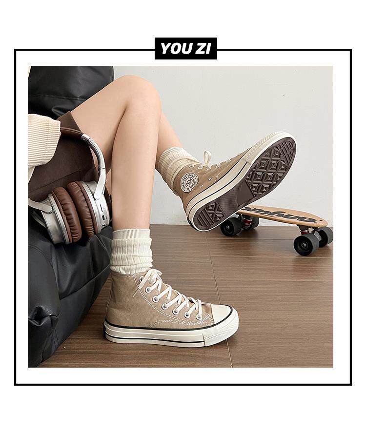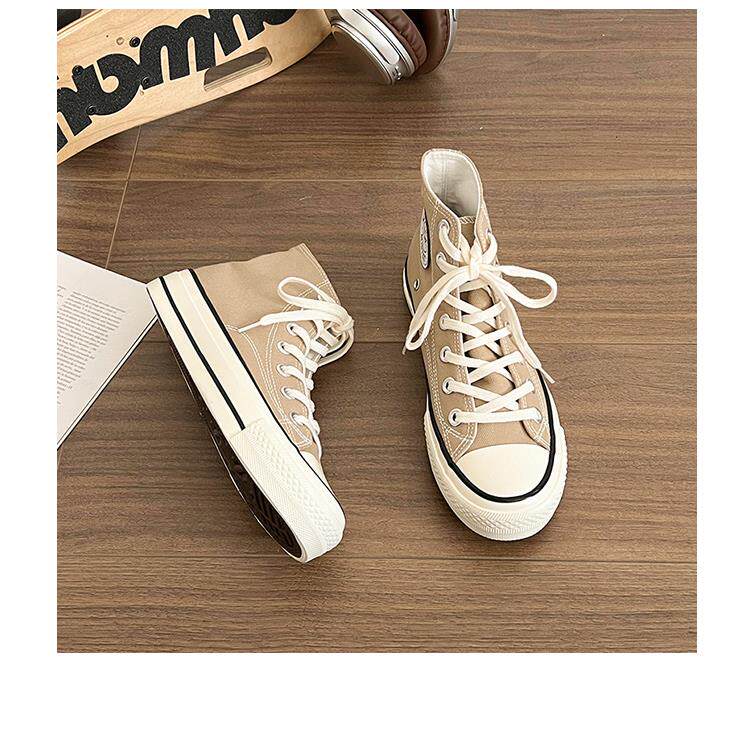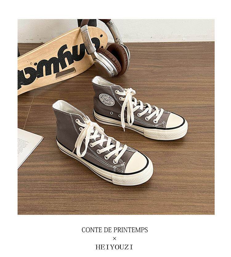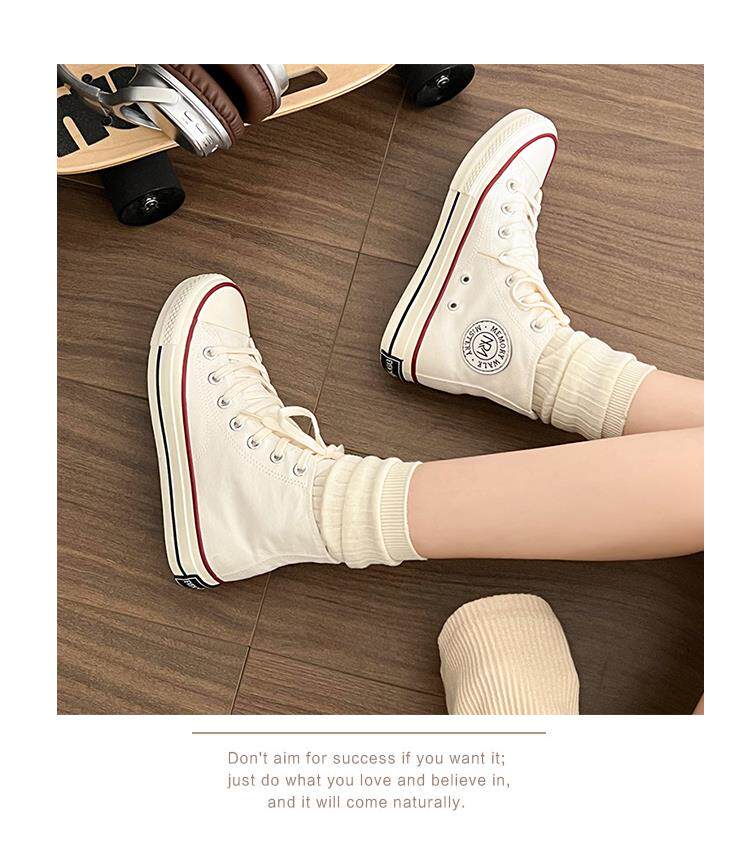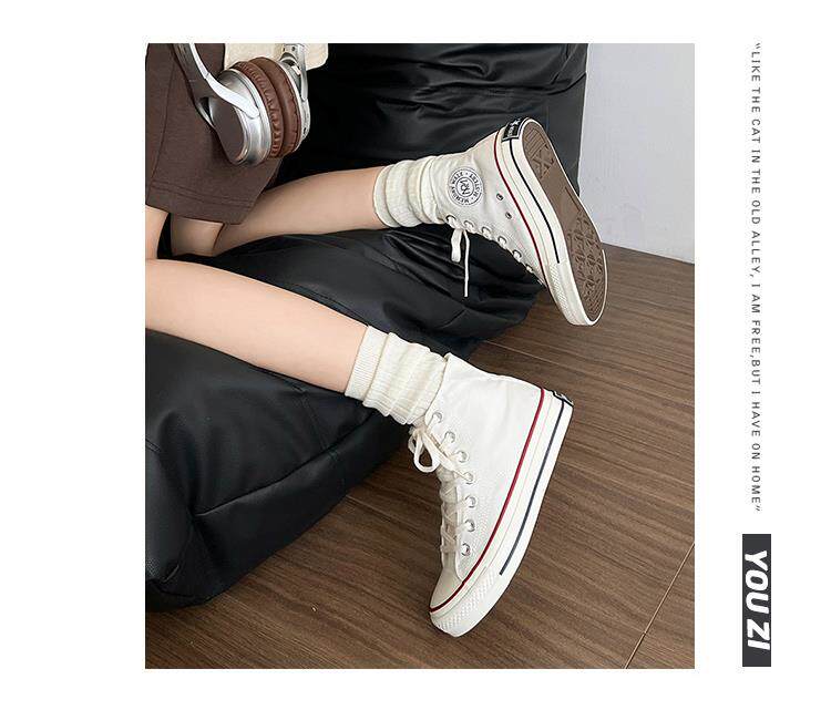 Retro High-Top Canvas Shoes for Women 2026 New Spring & Fall Super Popular Versatile Thick-Soled Sneakers with Inner Heightening Casual White Shoes