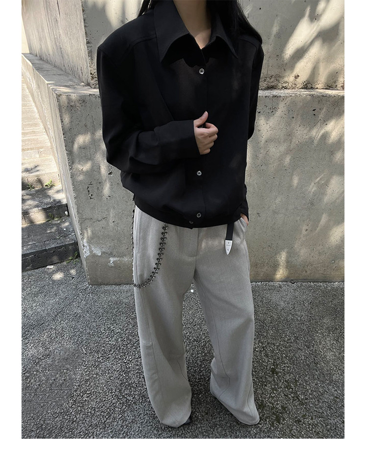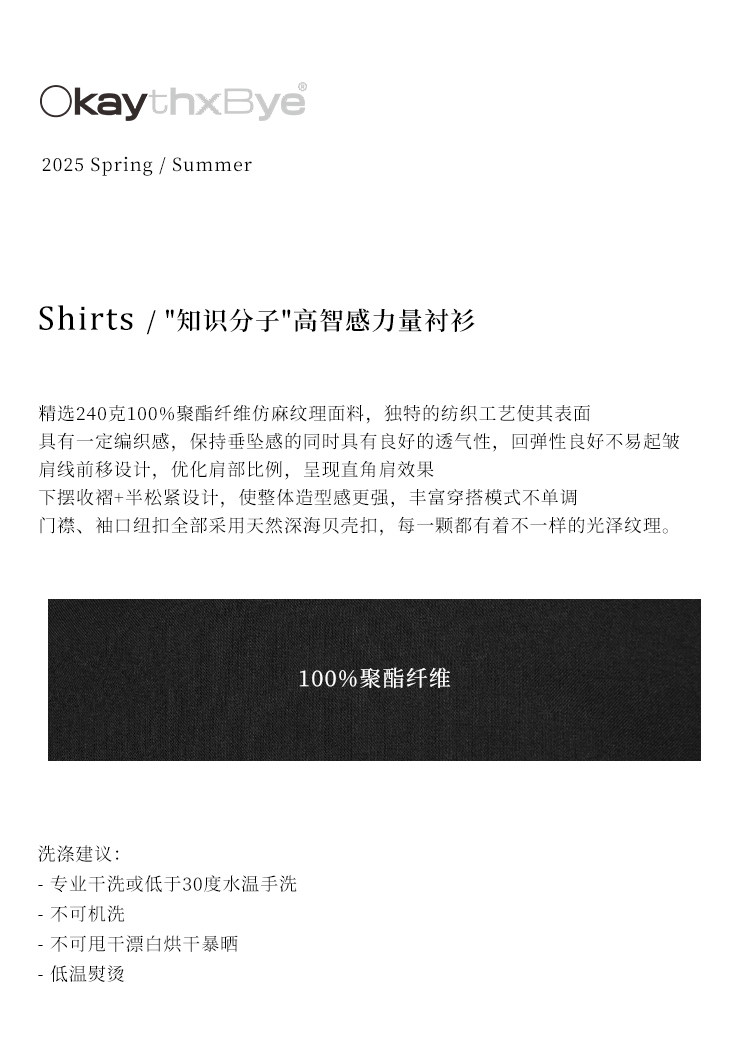 Okaythxbye "Intellectuals" High-Sensitivity Natural Shell Button Spring and Summer Commuting Casual Long-Sleeved Solid Color Shirt