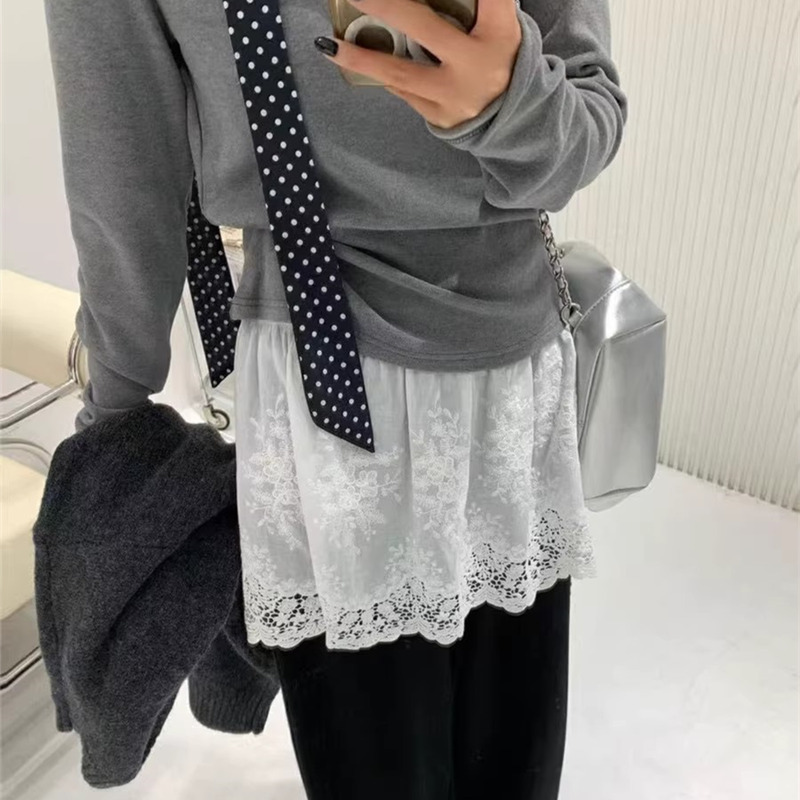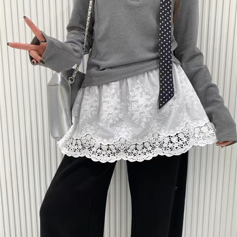 Plus-Size Anti-Exposure Lace Skirt with a Stylish Design for Women, Suitable for Layering in Autumn and Winter 2025, Elastic Waist, Short Style, Base Skirt for Curvy Women
