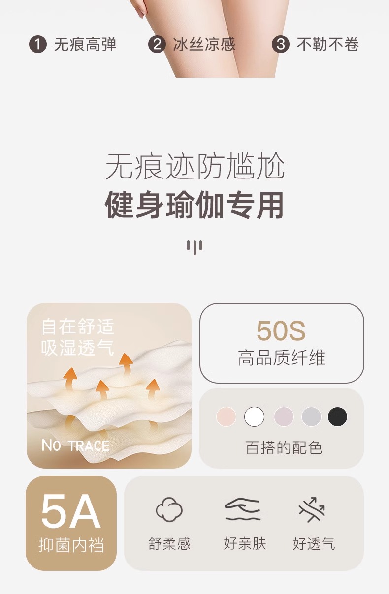 Seamless Underwear for Women, Anti-Embarrassment, Peach Butt Yoga, Antibacterial, Non-Pinching, Women's Sports and Fitness Invisible Briefs