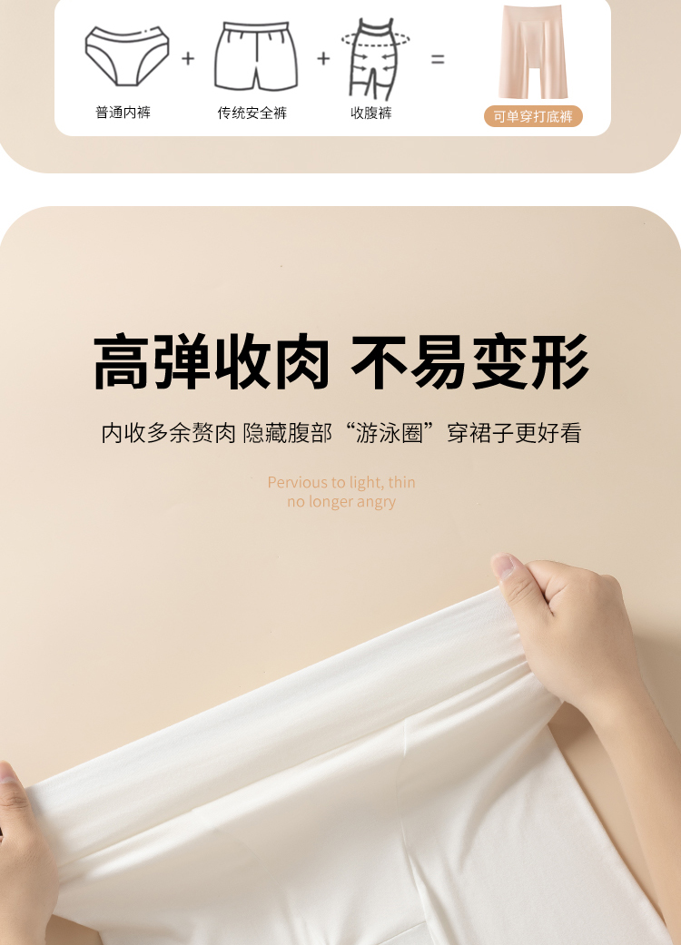 High-Waisted Plus-Size Antibacterial Pure Cotton Crotch Safety Shorts for Women, Anti-Exposure Leggings and Underwear Two-In-One, Non-Curling, Thin for Summer