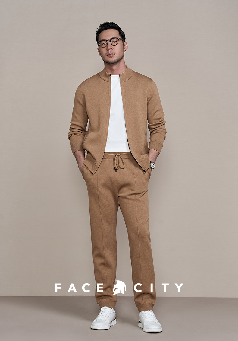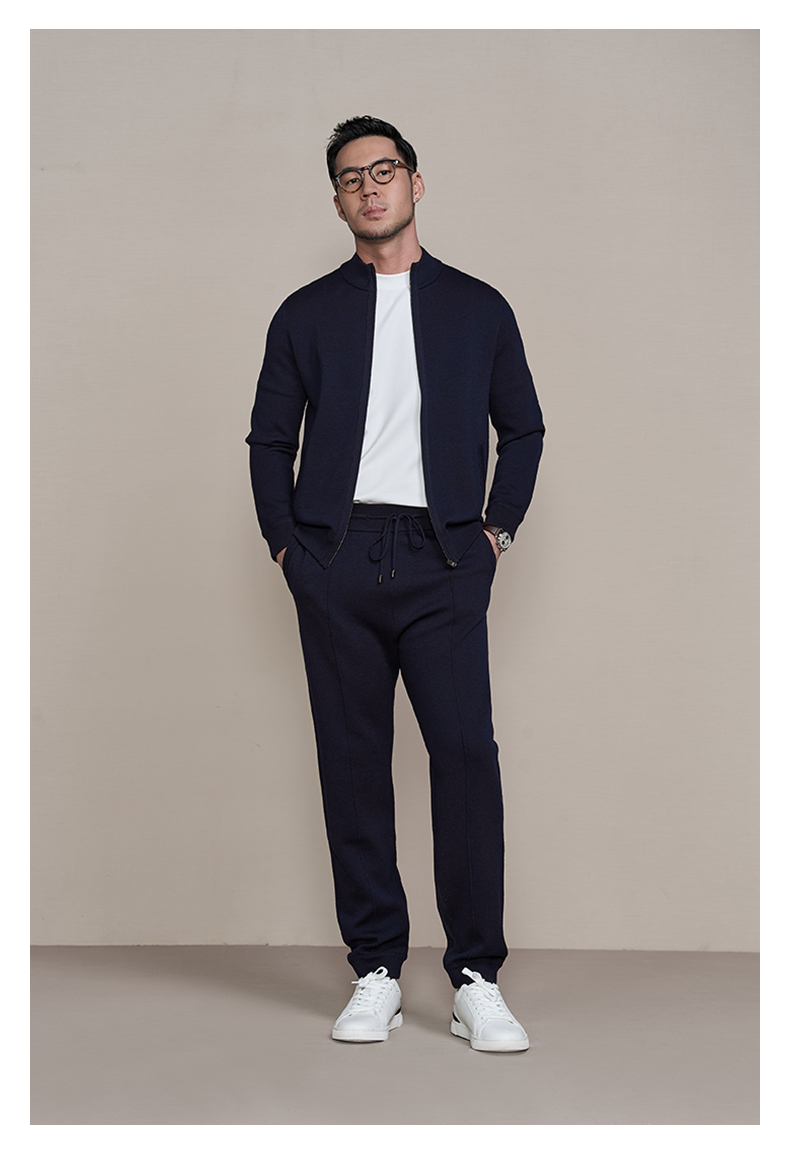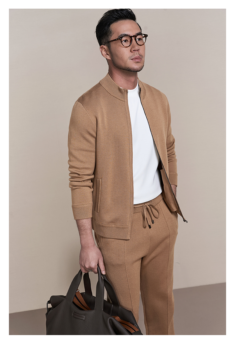 Non-City Style [16-Gauge Wool Flat Knitting Machine] Old Money Style Casual Wool Suit for Men, Versatile Two-Piece Set for Spring and Autumn