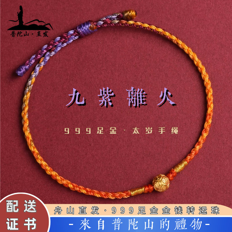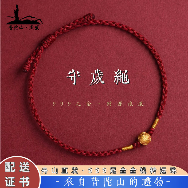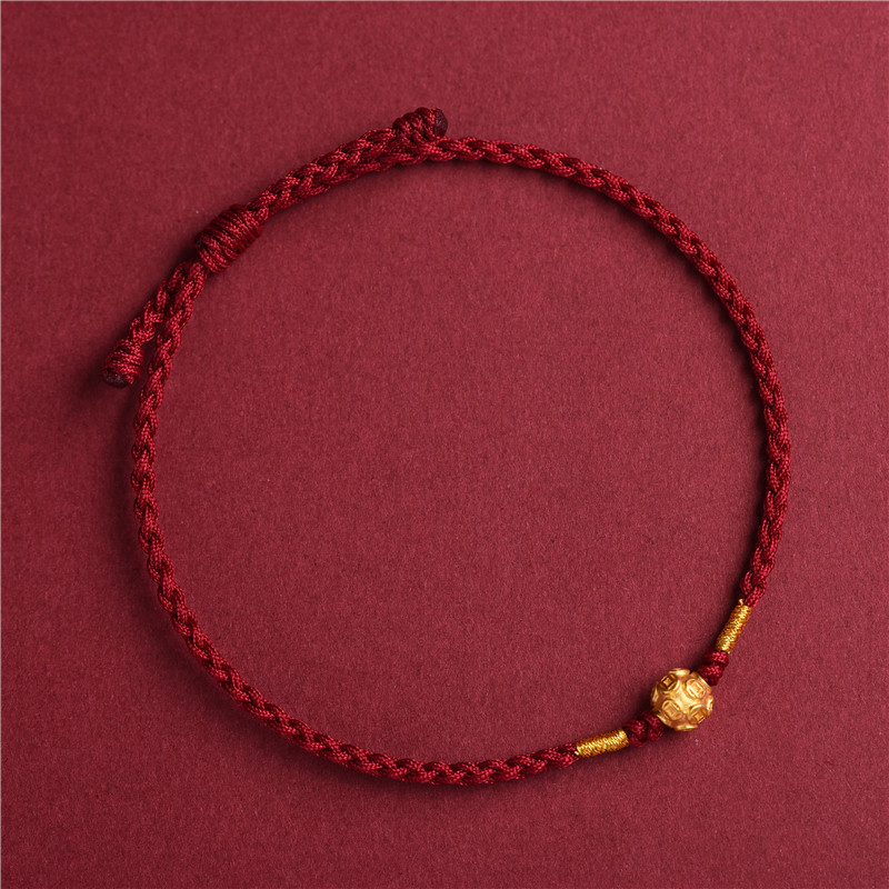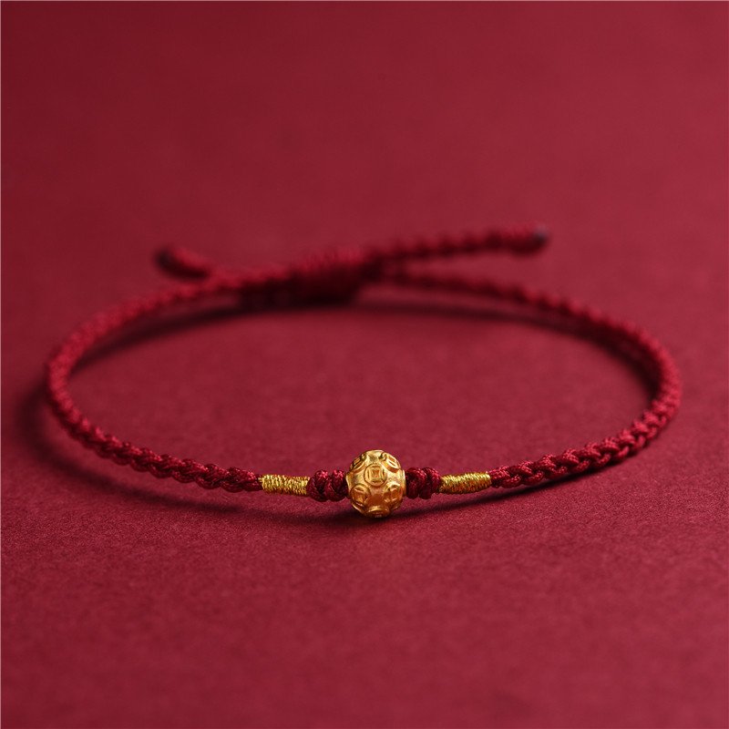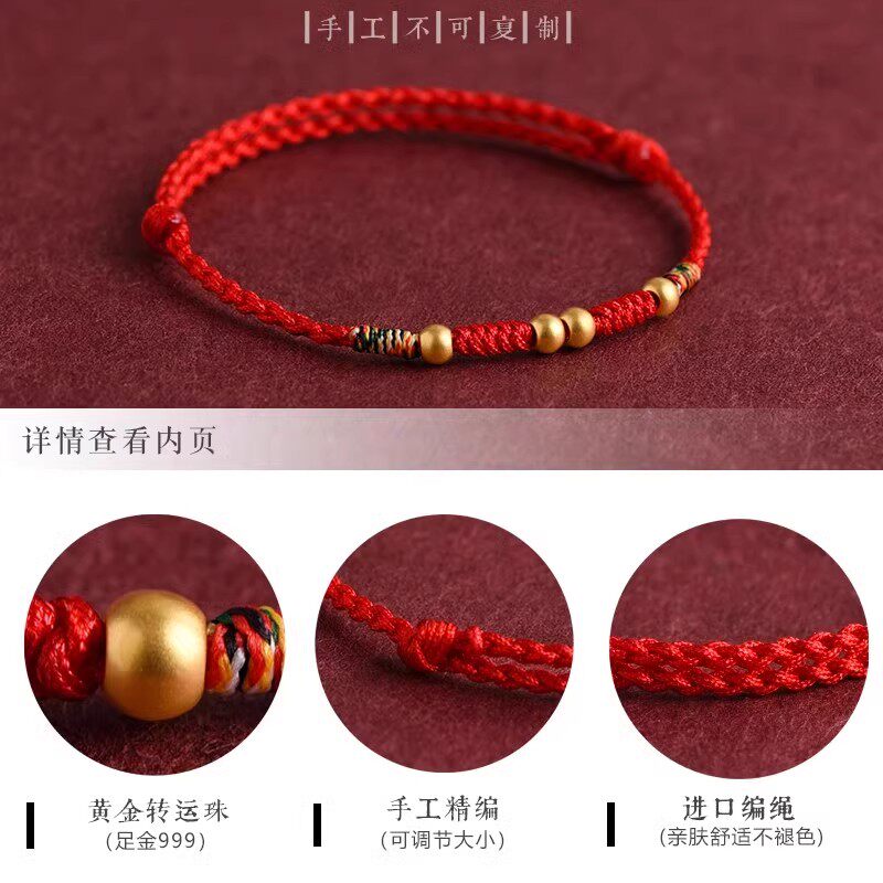 Putuo Mountain 999 Pure Gold Money Transfer Beads Red String Bracelet for Men and Women, Snake and Horse Zodiac Year Woven Bracelet